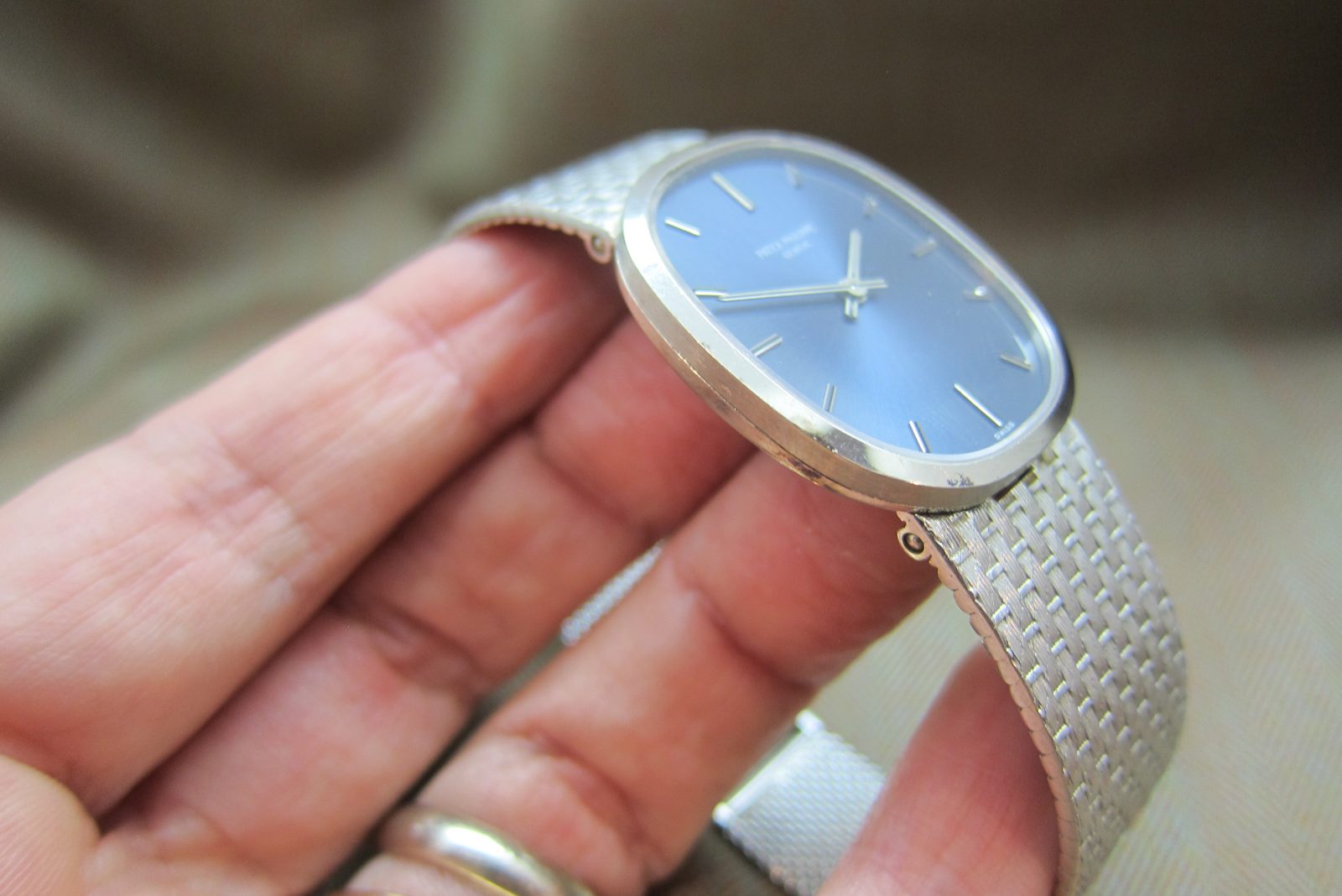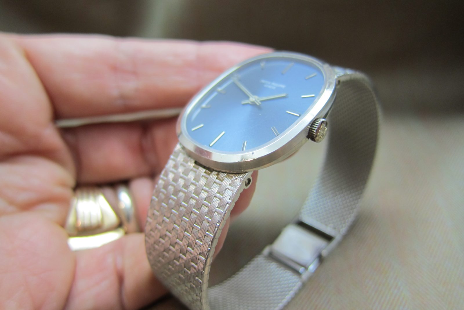 The sunburst blue dial is in excellent condition.