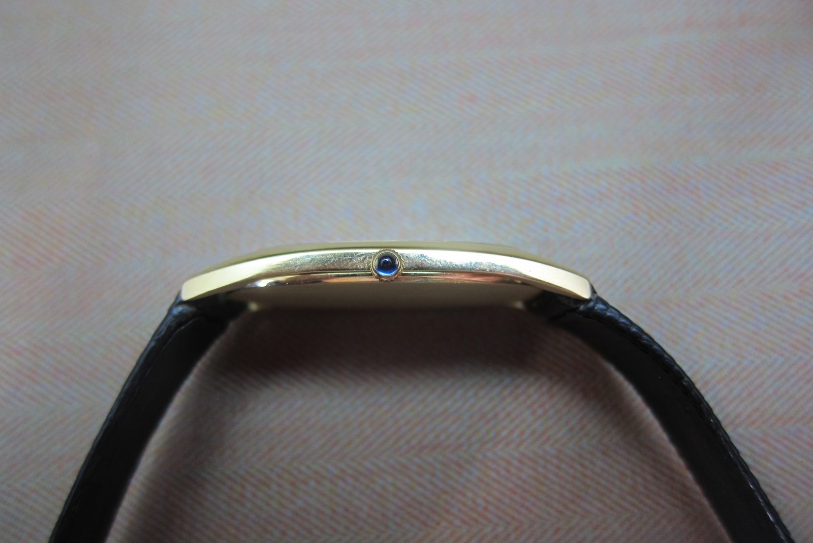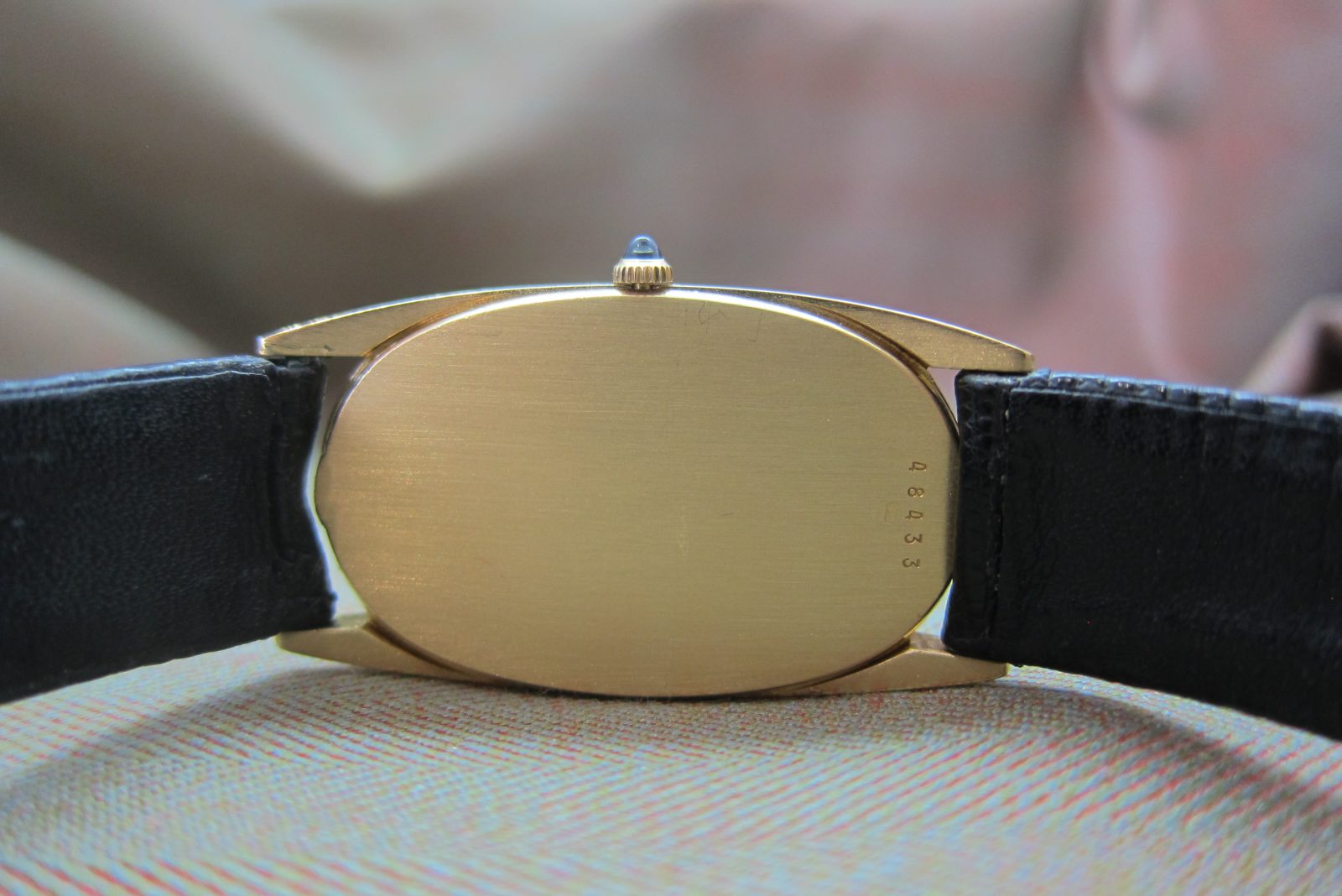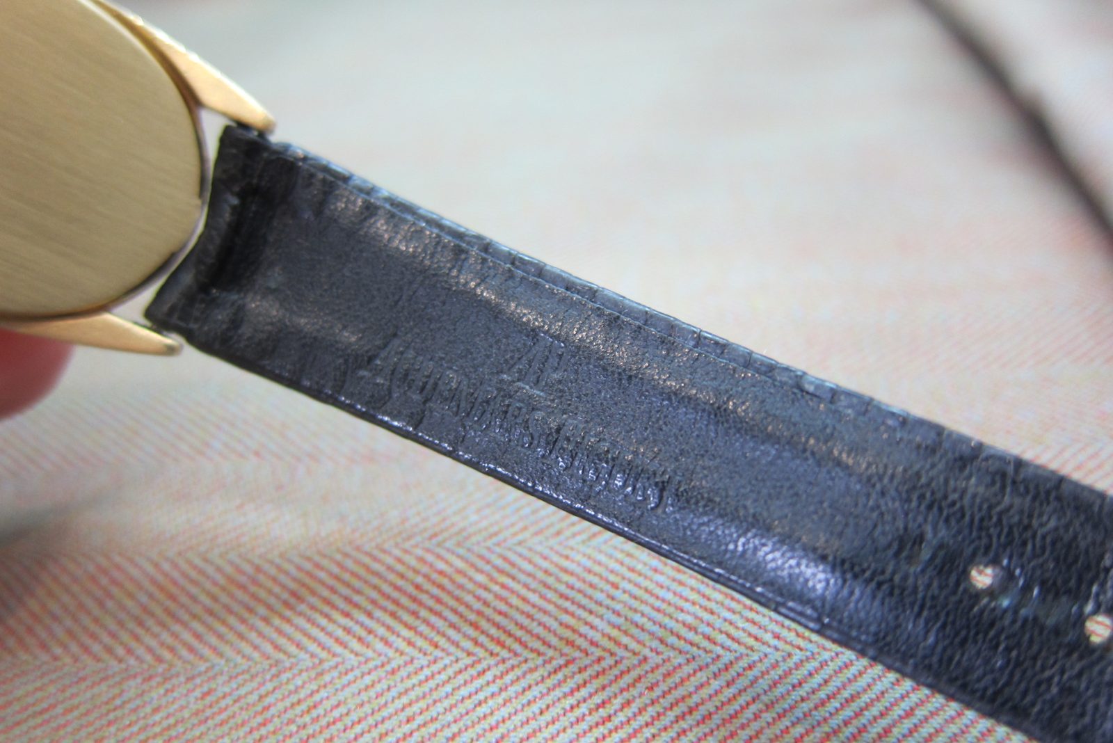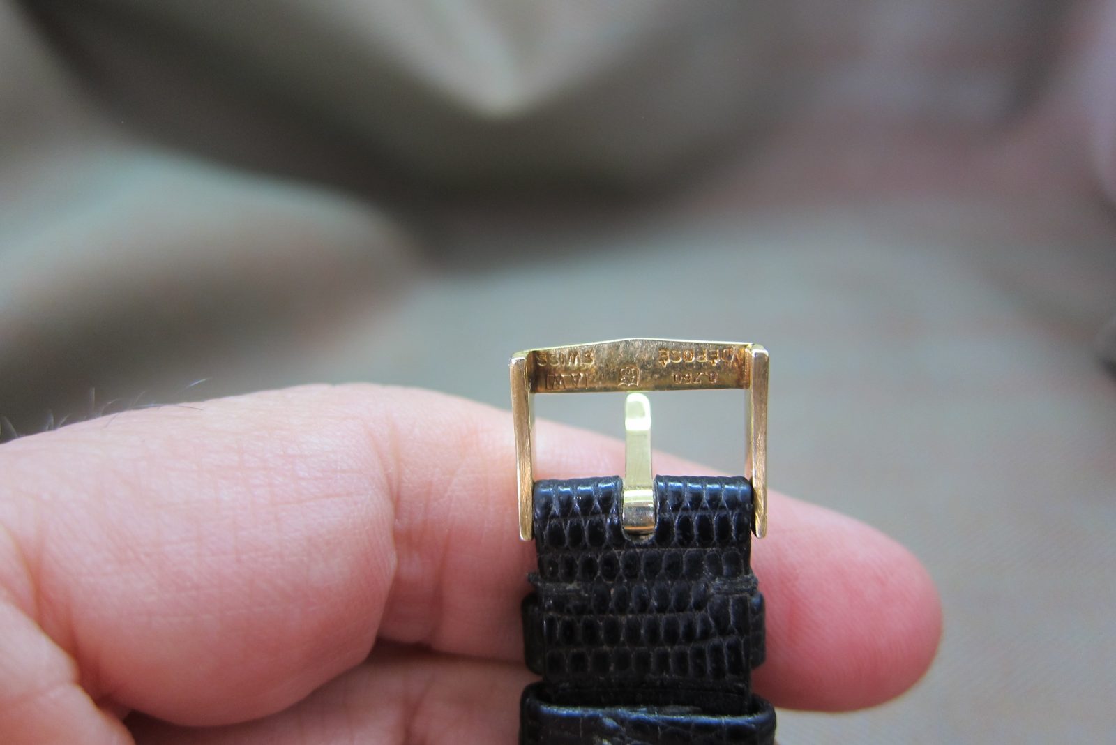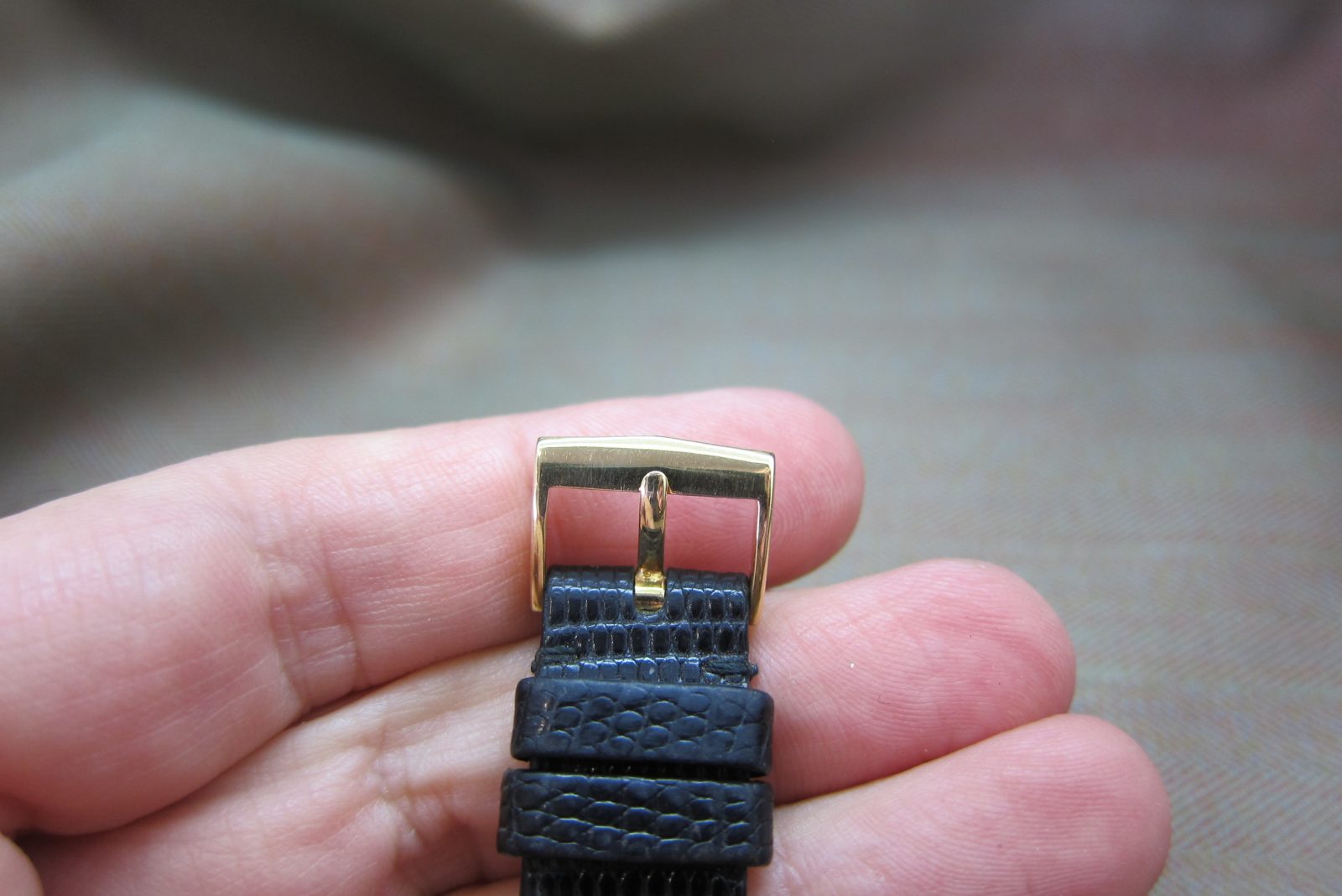 On its original lizard skin strap secured by the original 18k buckle.