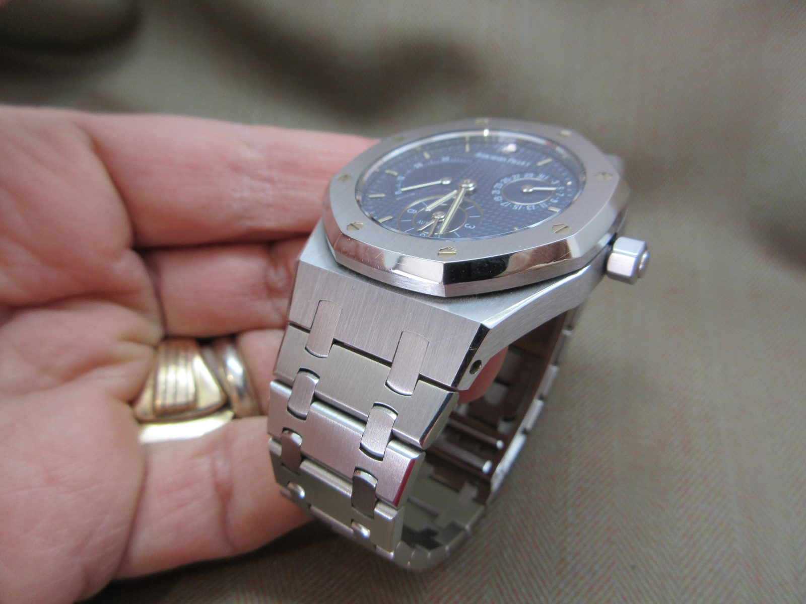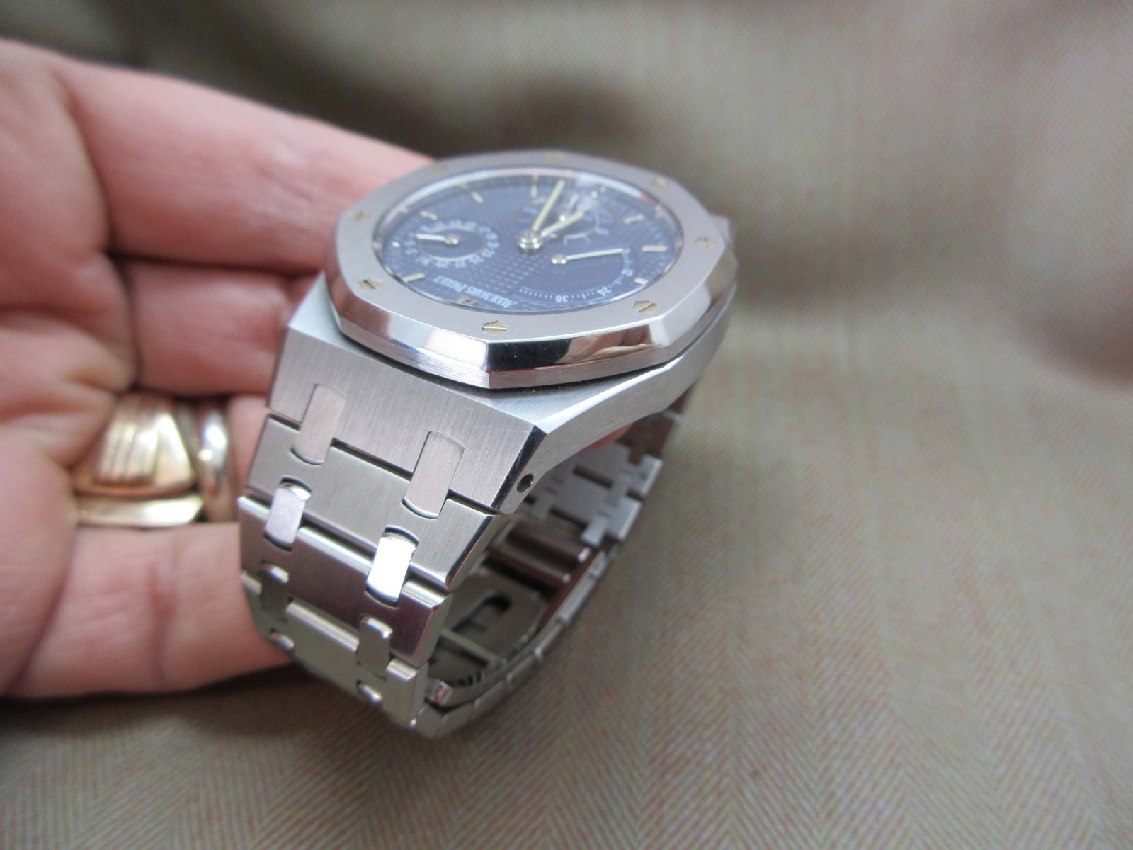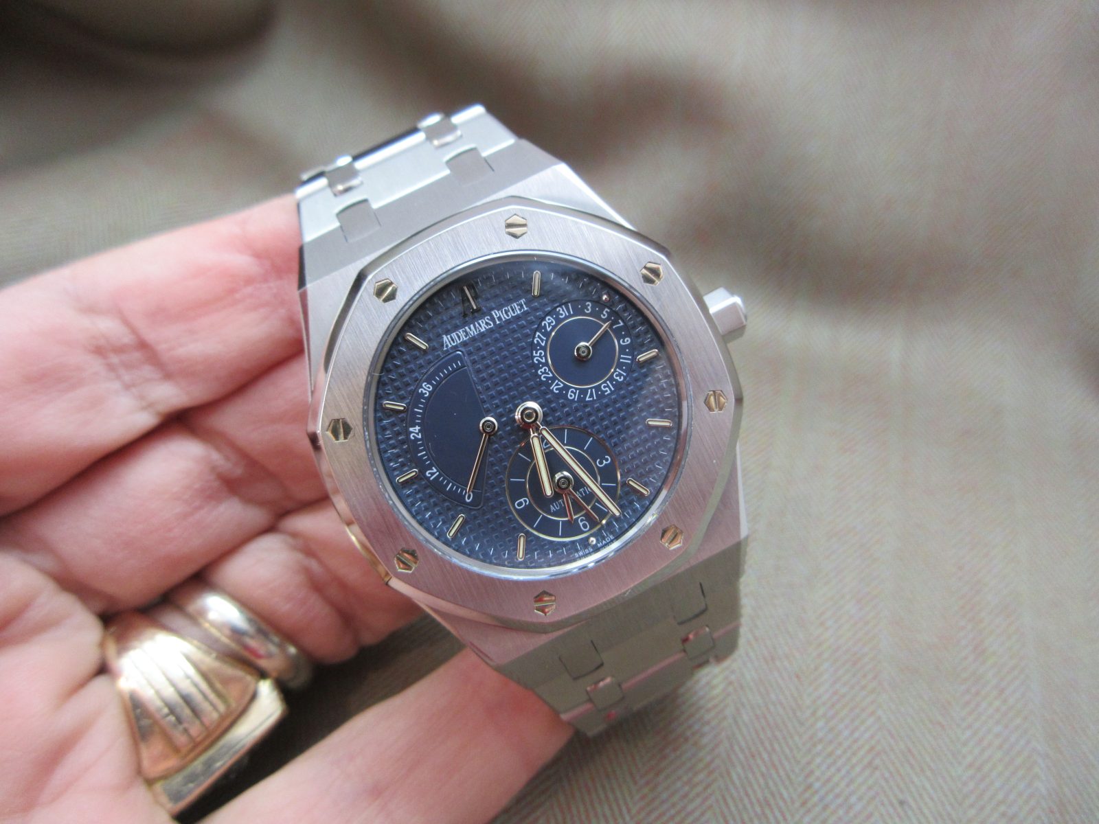 Audemars Piguet Vintage Royal Oak Dual Time Power Reserve Ref. 25730 in ultra-mint condition. Featuring the dual time and power reserve complication, this example is exceptionally well preserved. Comes with service and archive papers, inner and outer octagonal box. A rare find for collectors seeking a pristine, complicated vintage Royal Oak.