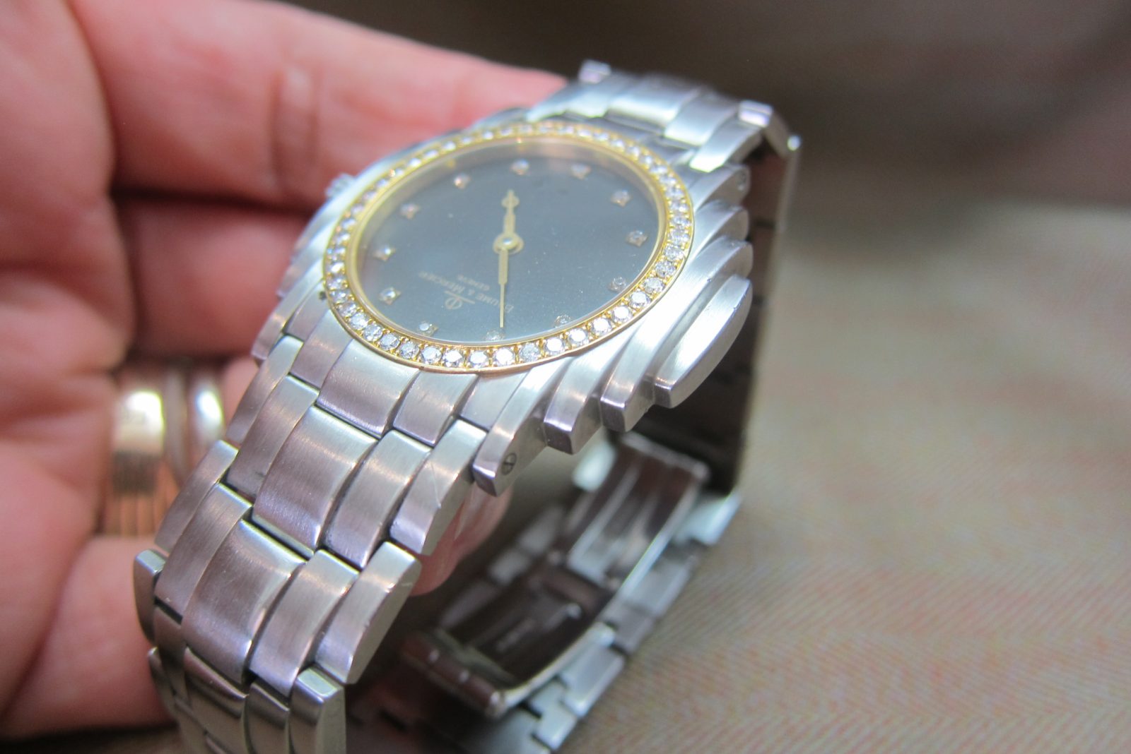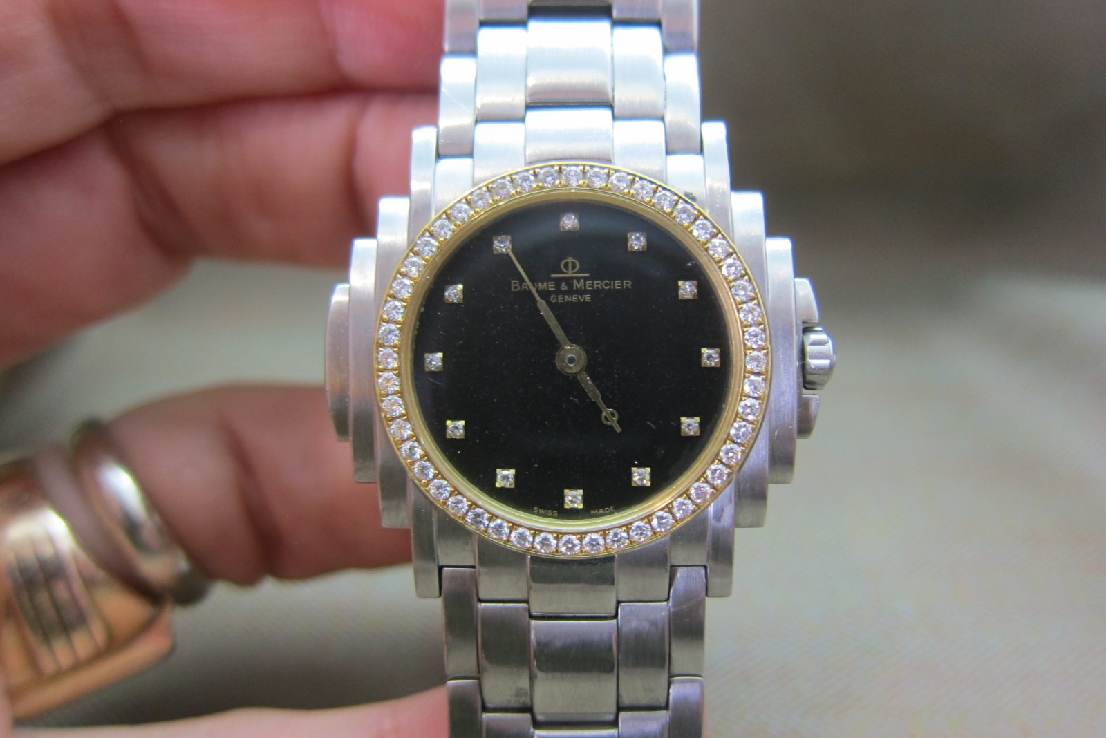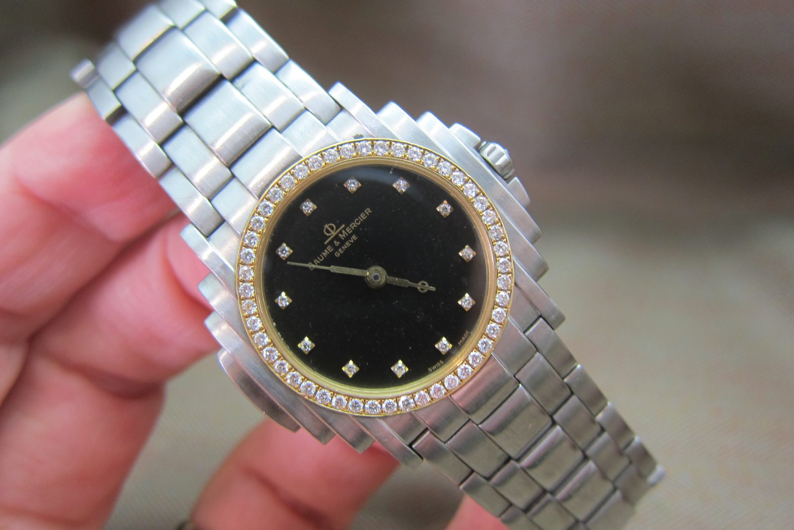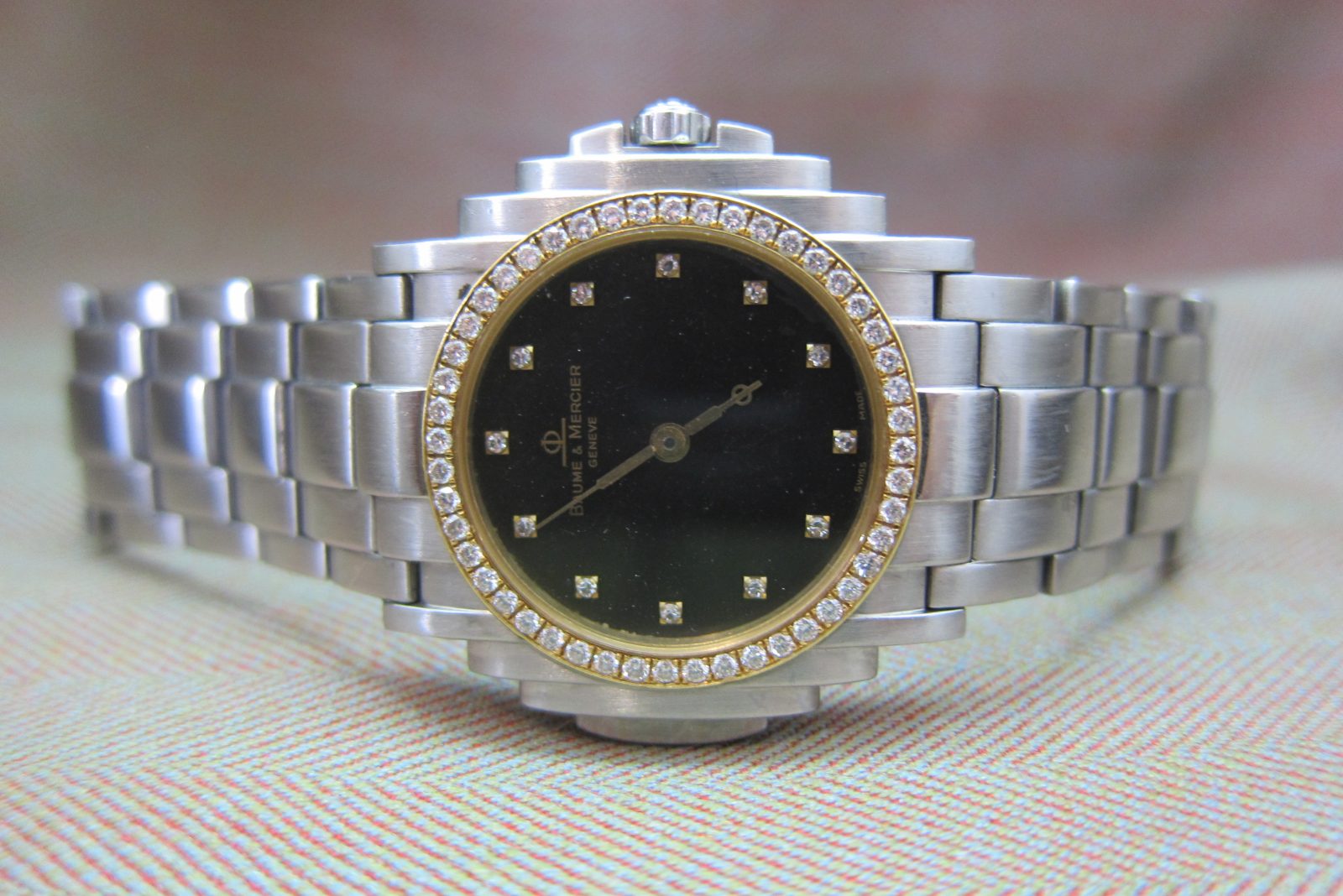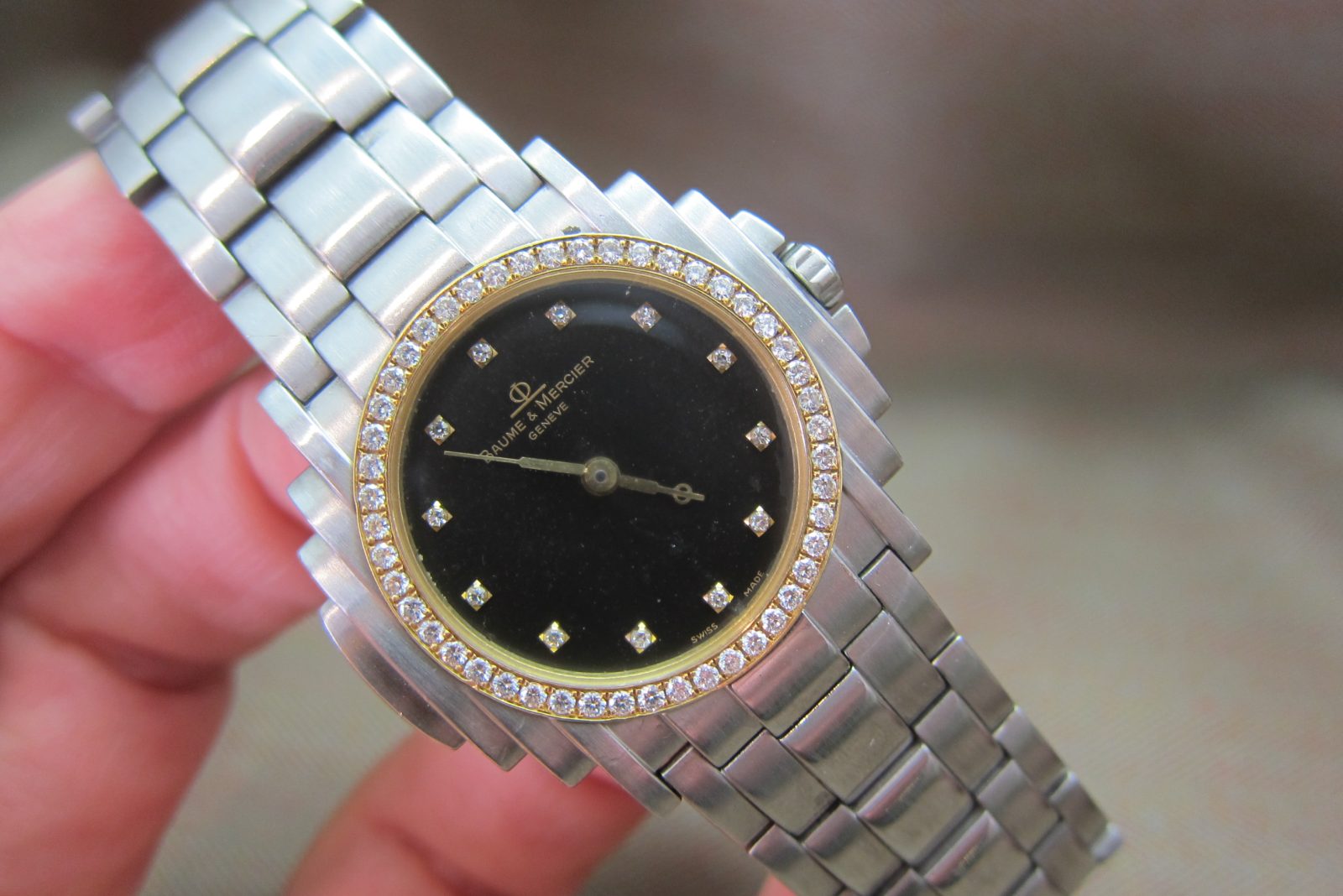 Baume & Mercier Vintage Steel Shogun Rare Black Diamond Dial & Diamond Bezel