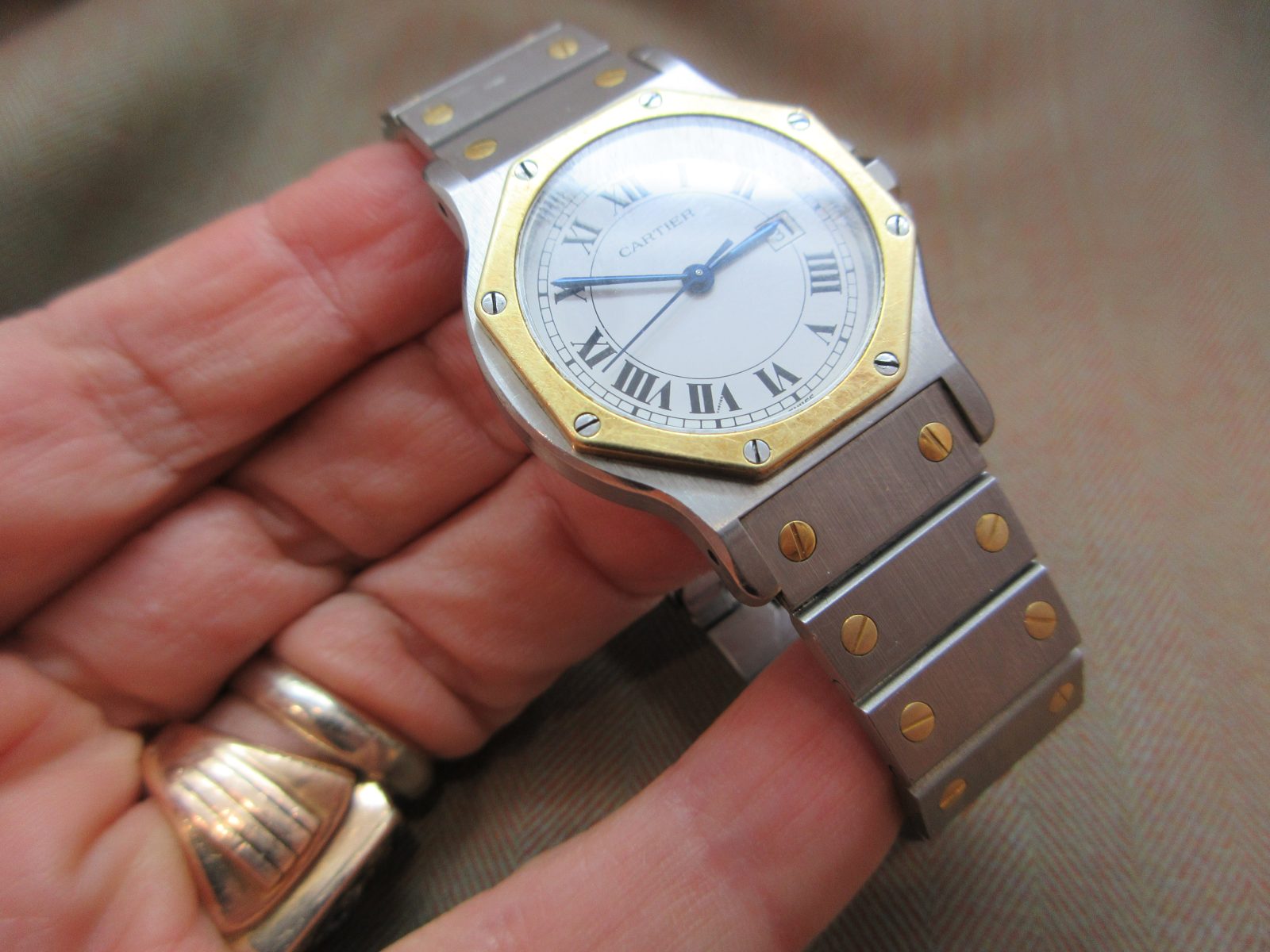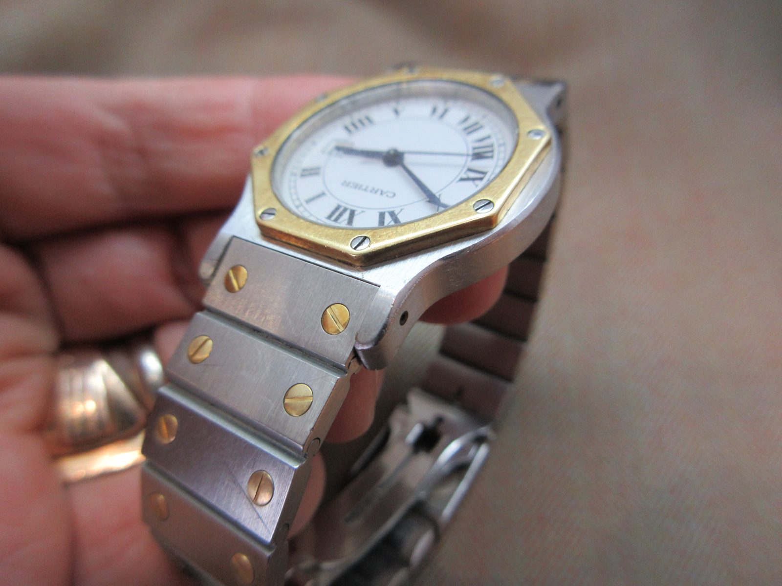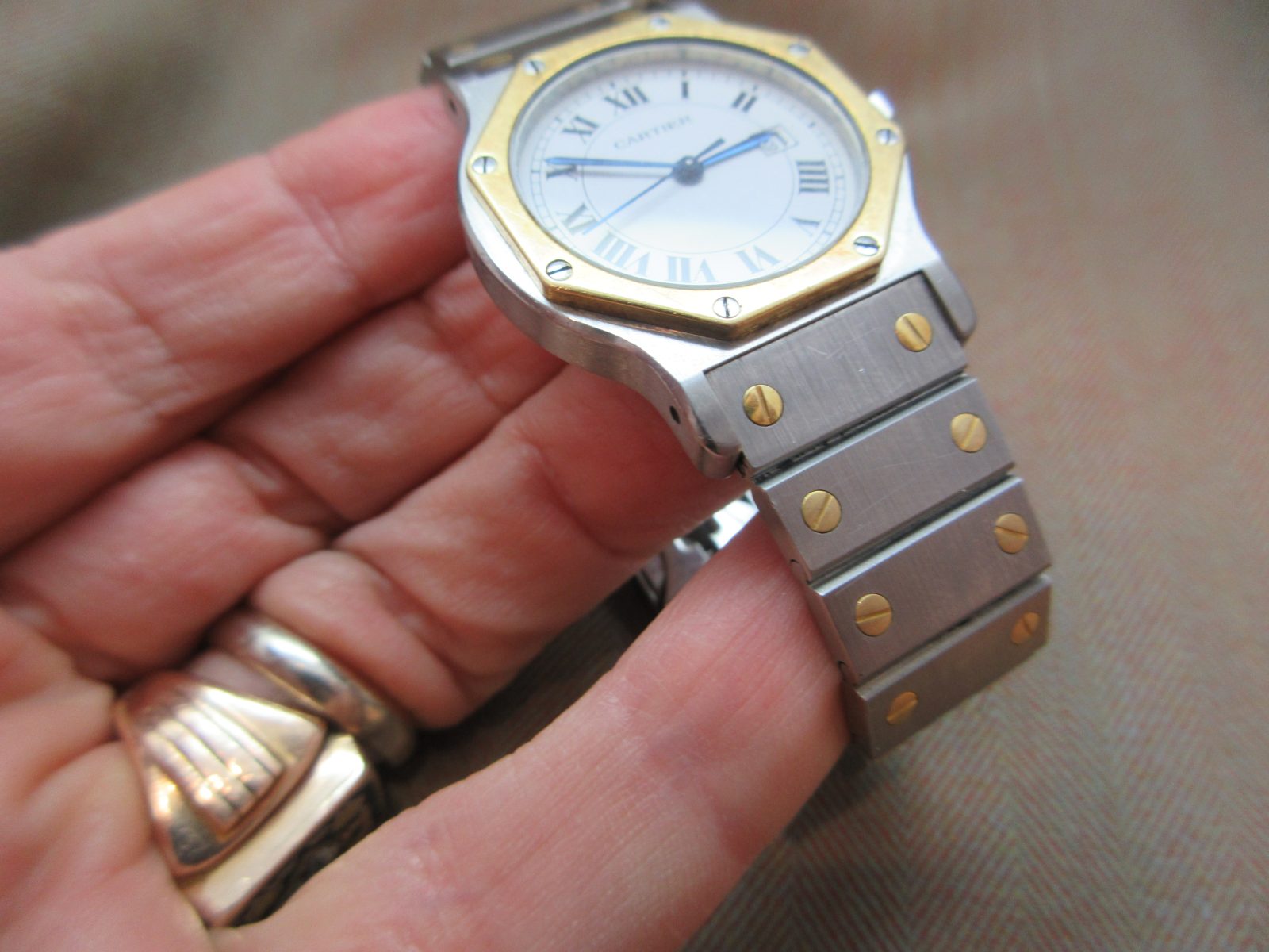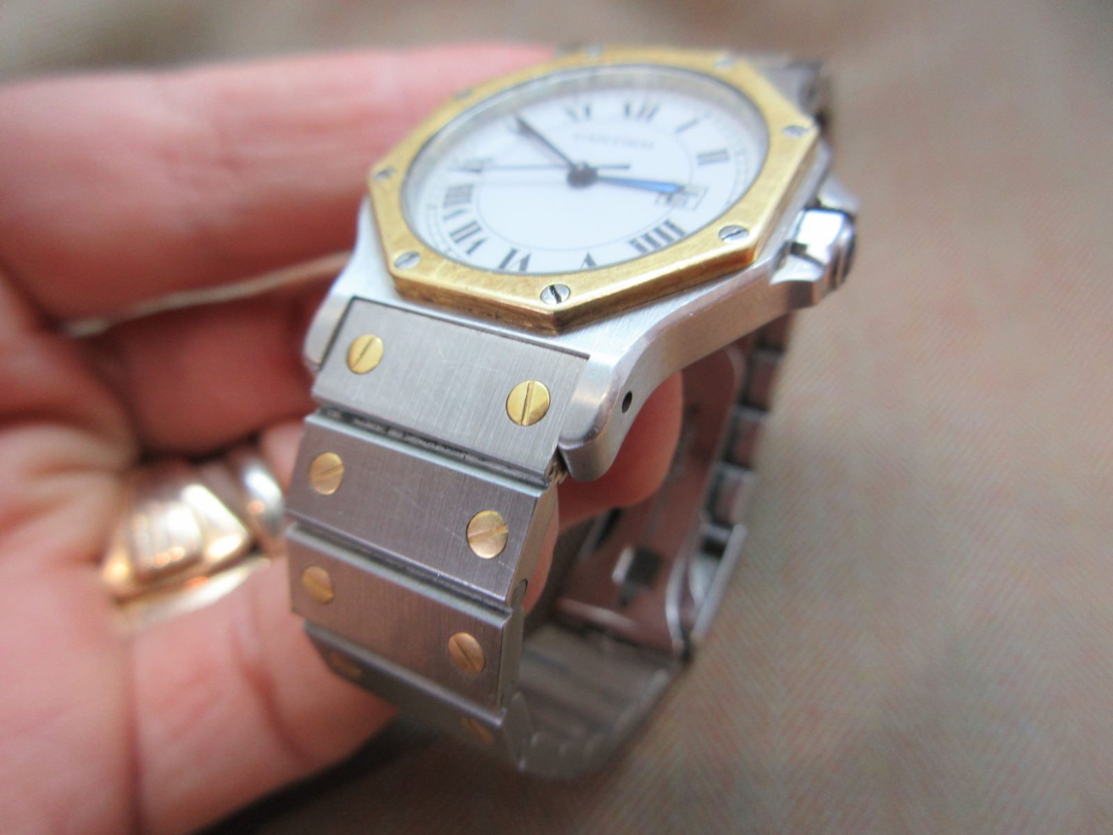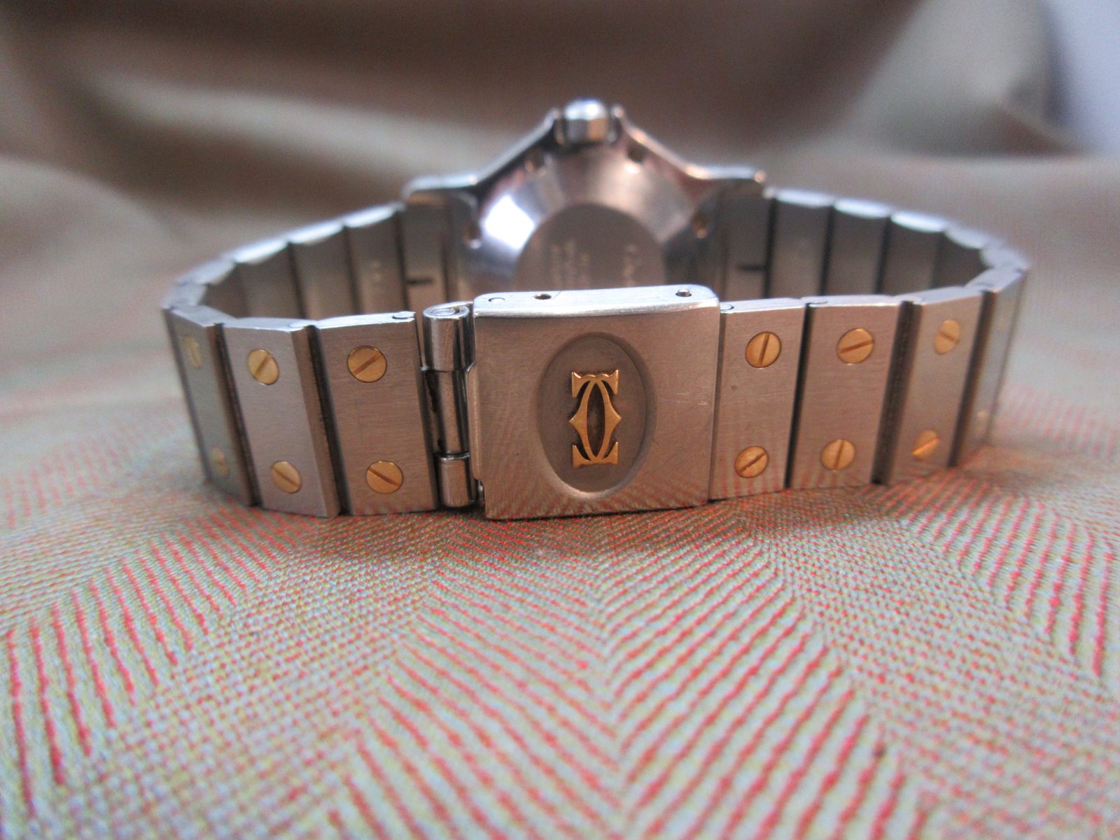On its original Santos bracelet secured by the original clasp, fitting approximately a size 6.
