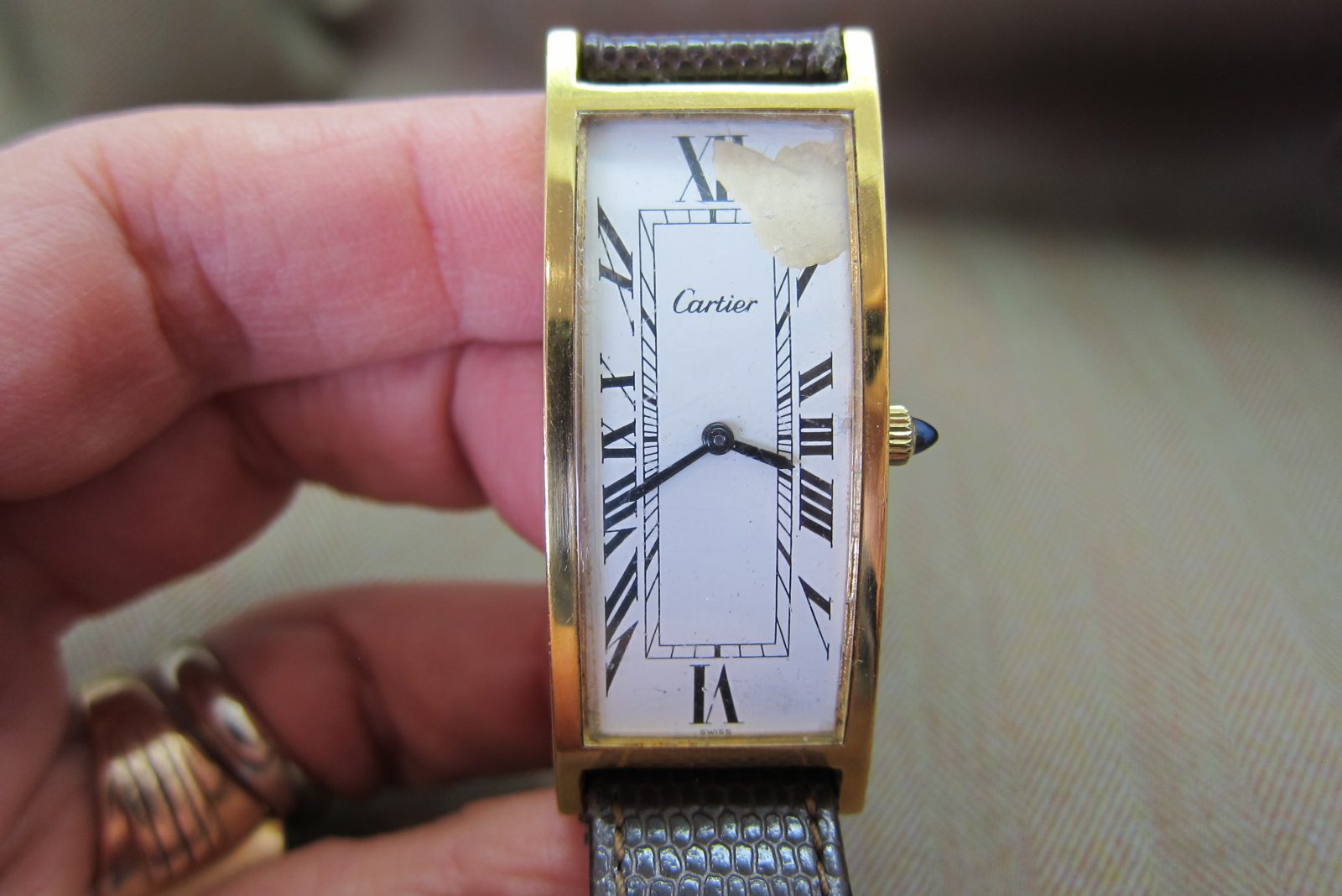 Here we have the extremely large Cartier Tank Cintree from the 70s, sold at the Cartier New York boutique only and also worn by Steve McQueen in the Thomas Crown Affair movie.