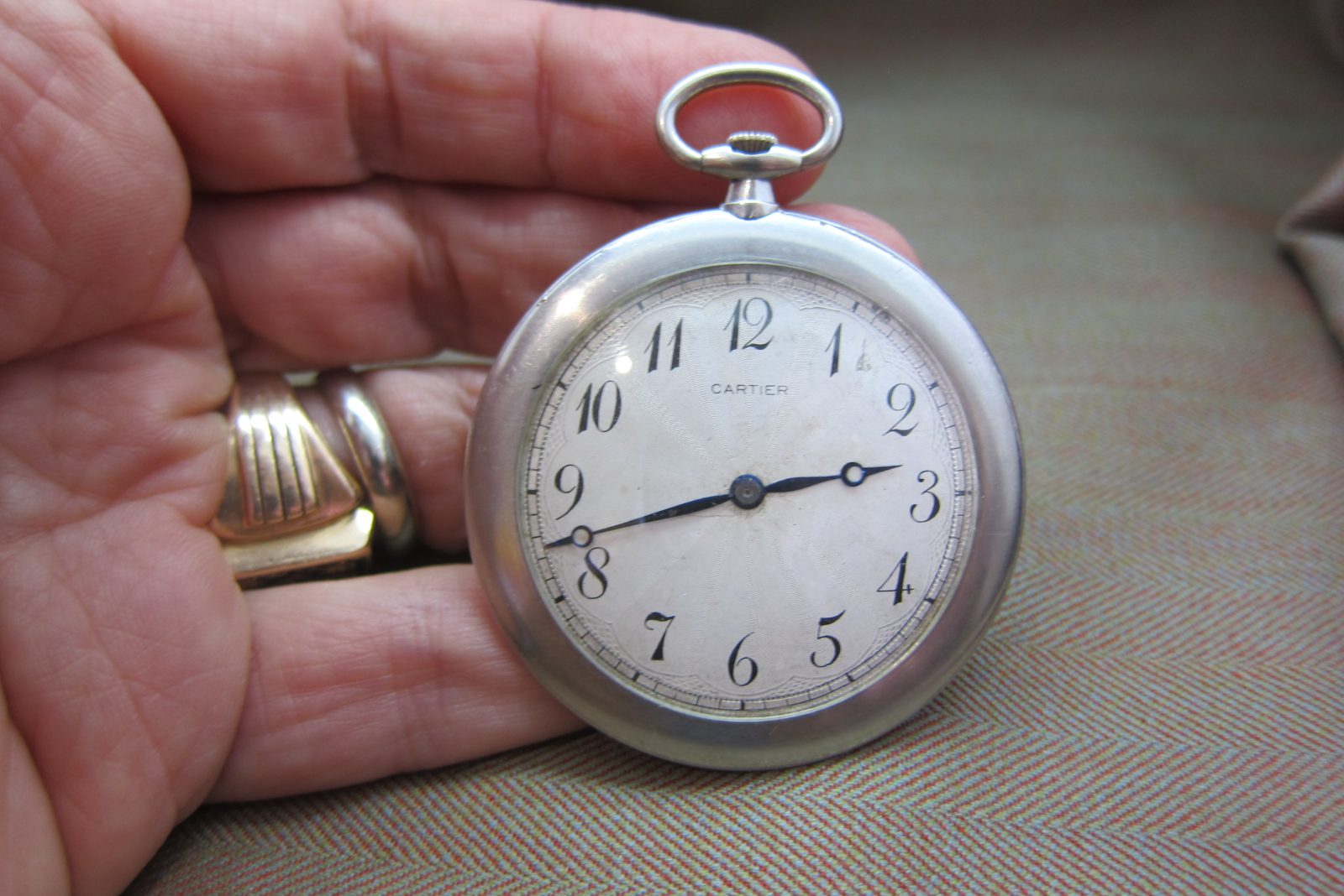 A Cartier platinum pocket watch from the 1940s is a timeless piece full of vintage charm and elegance.