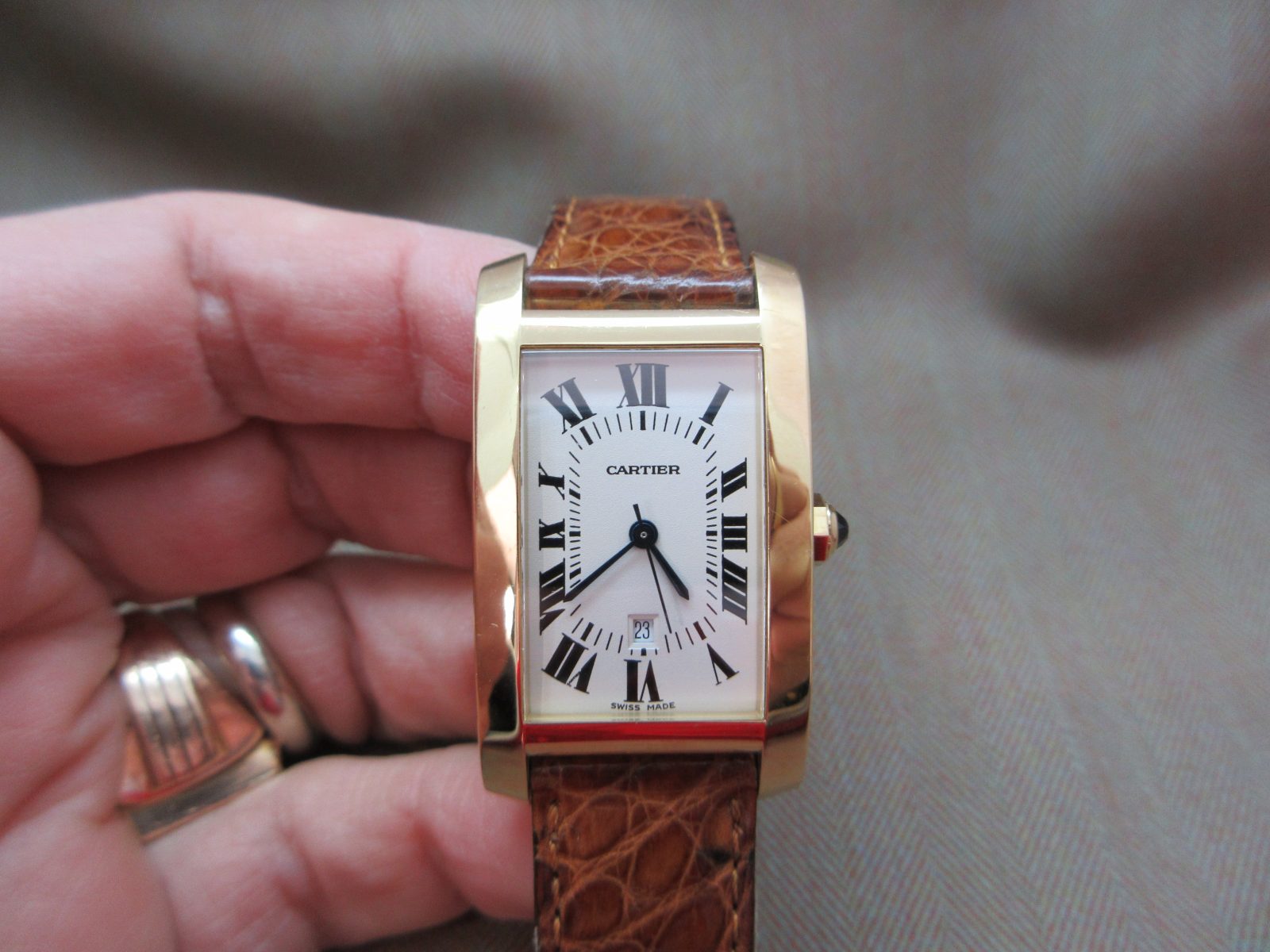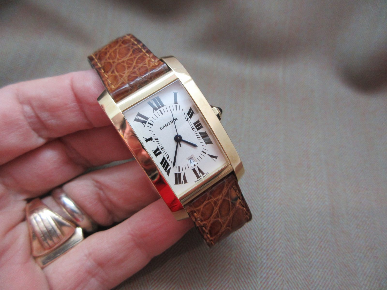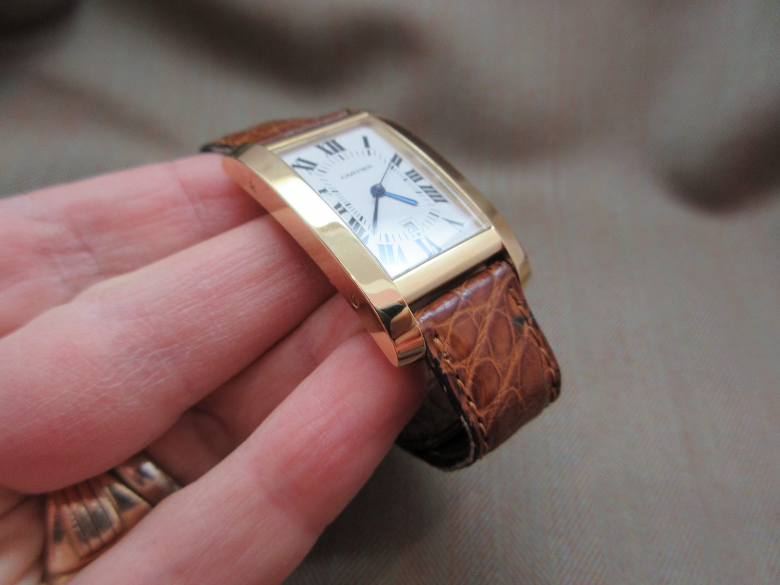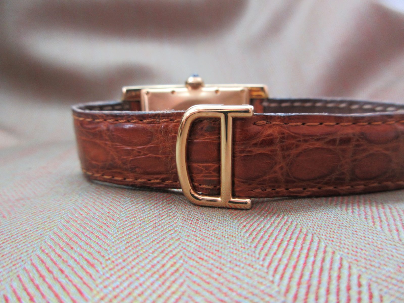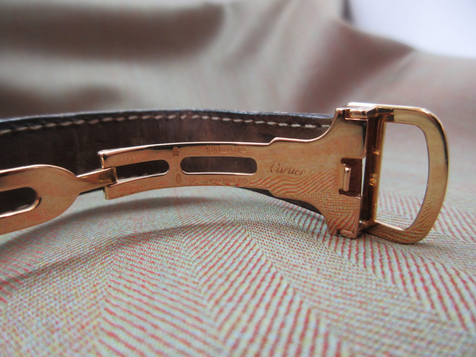 On its original Cartier crocodile skin secured by the original Cartier deployment buckle, it fits a size 7.