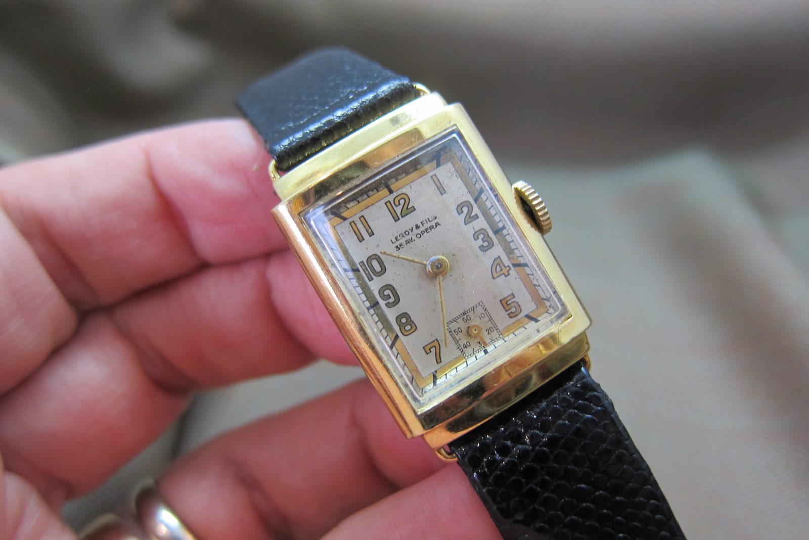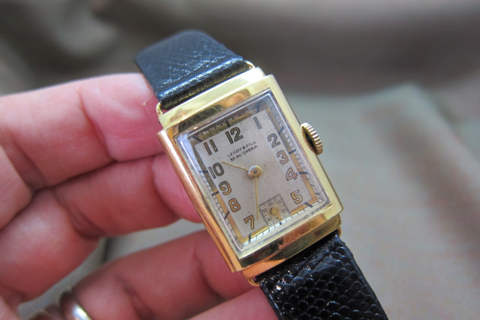 The 18k case measures 21 x 33 mm and features a hallmark on the side.