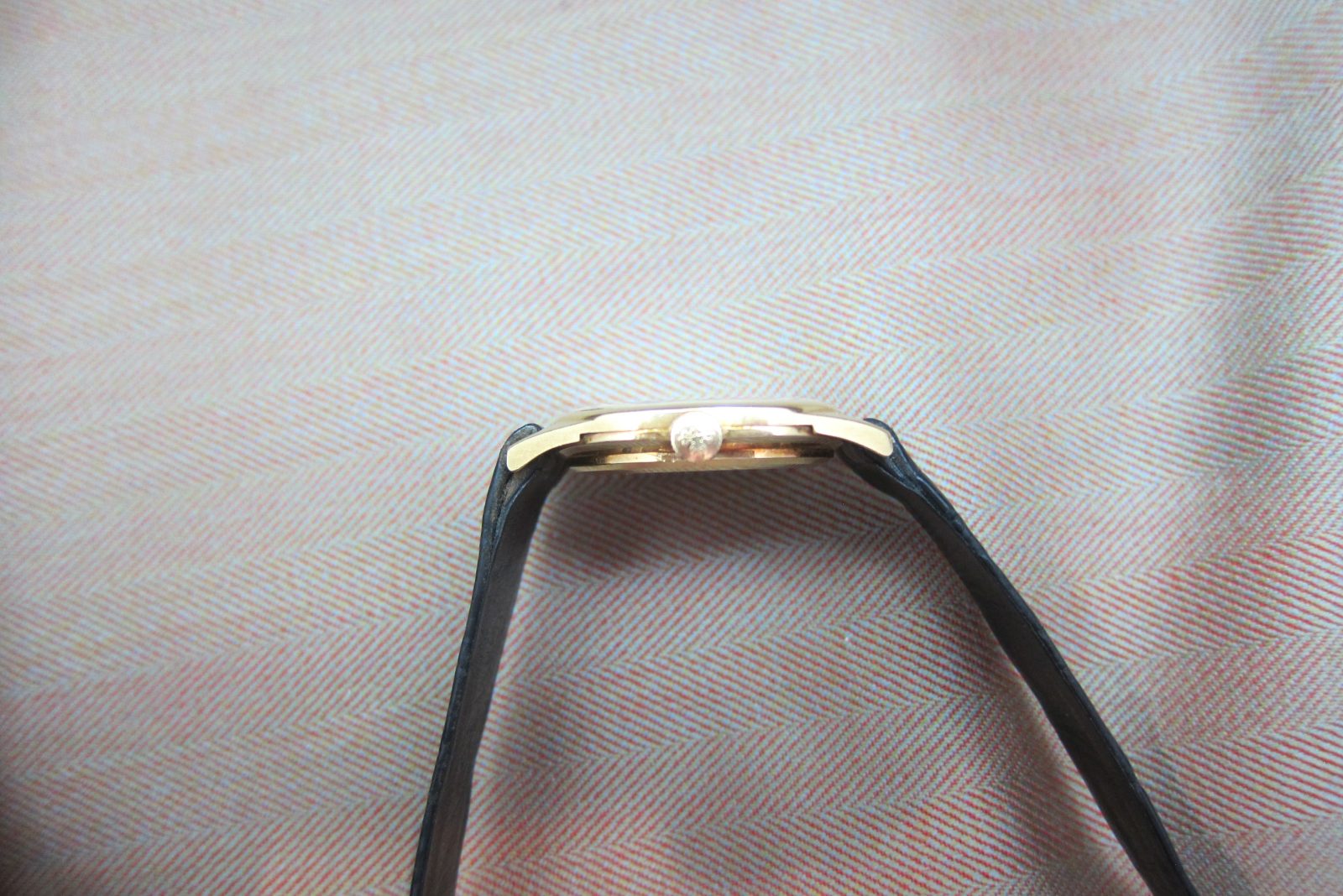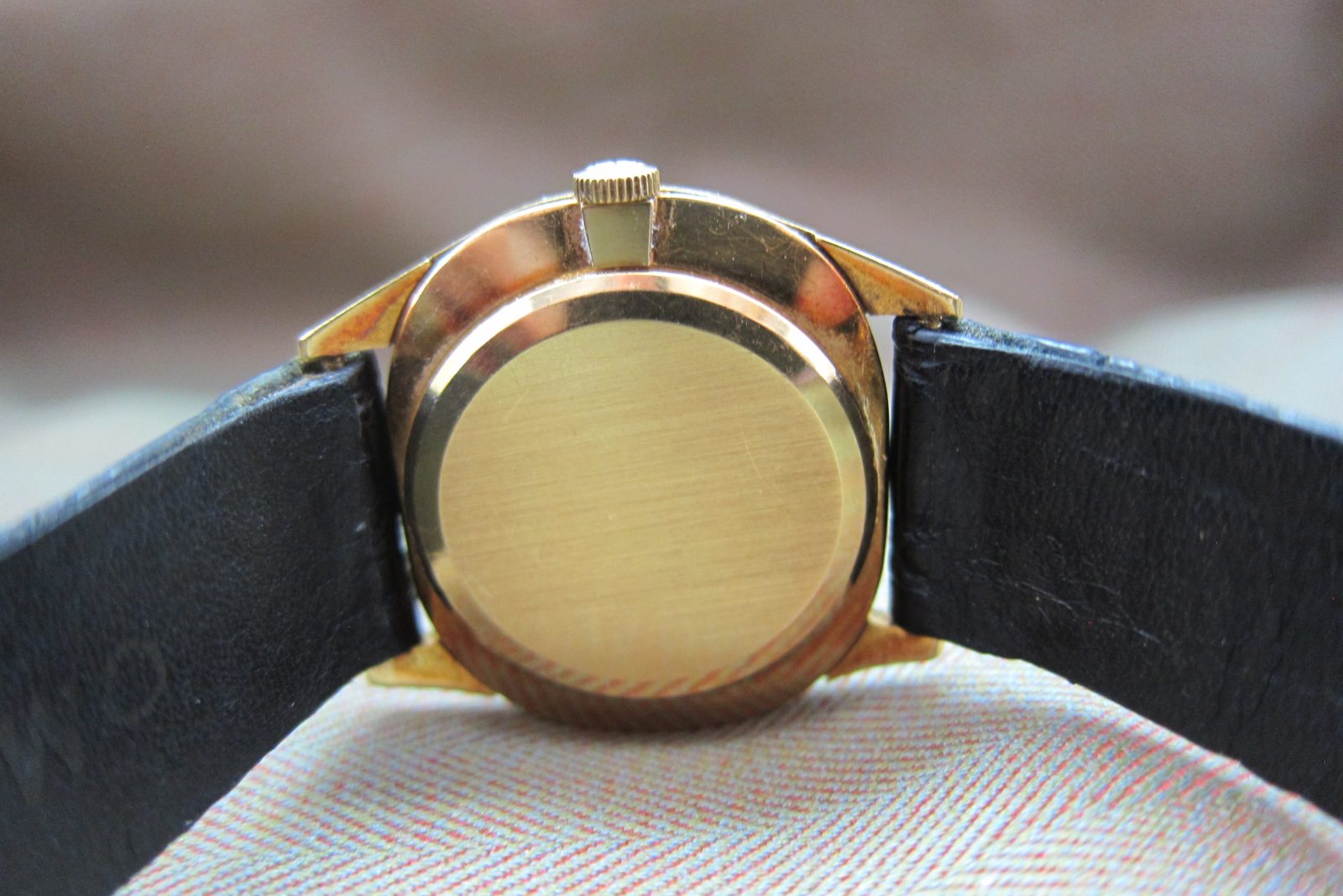 The 18k case measures 33 x 38 mm, including the lugs, and is in nice condition with a hallmark on the caseback and some light oxidation