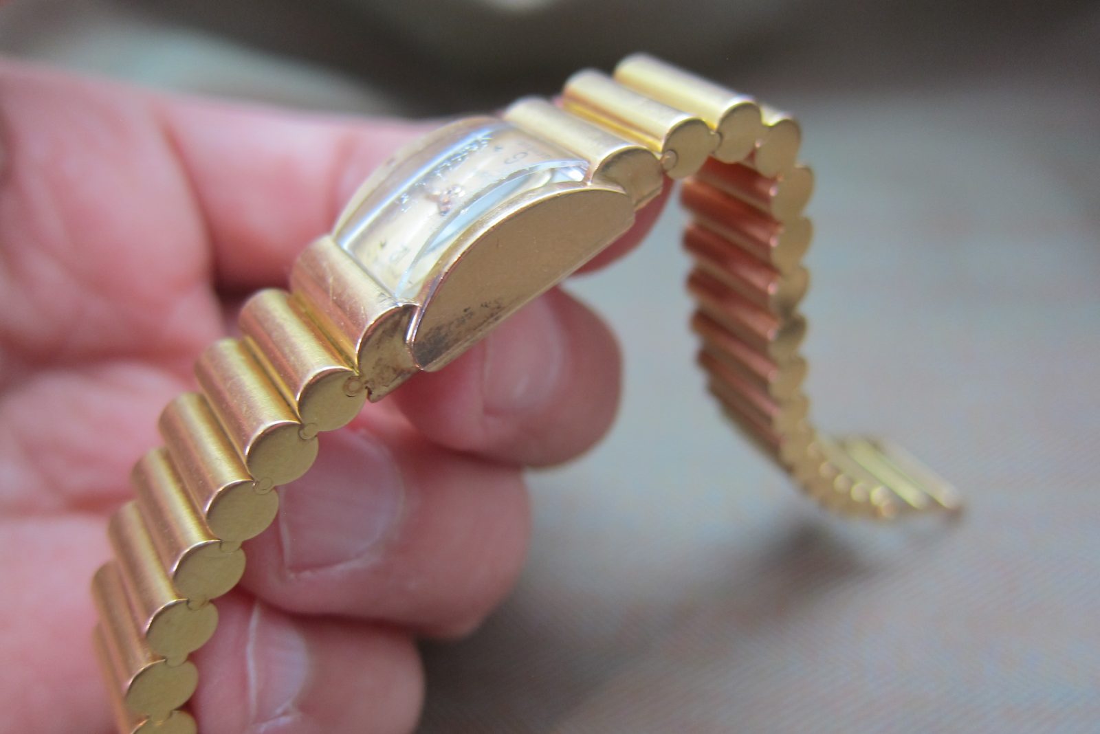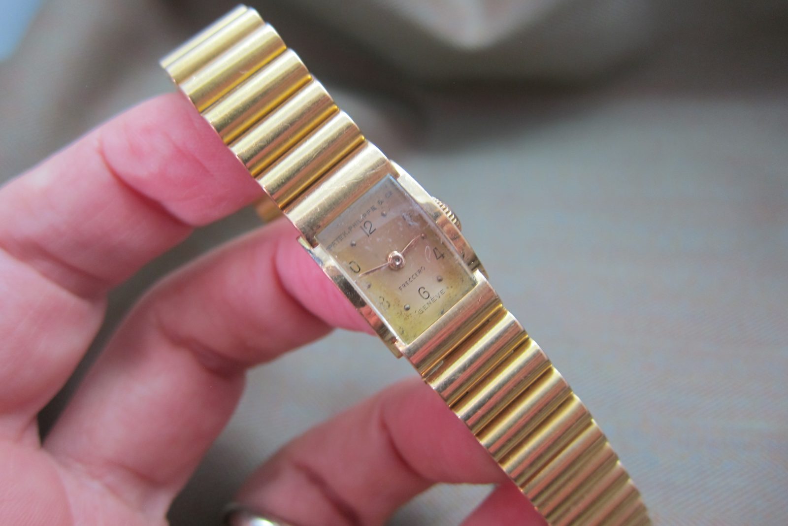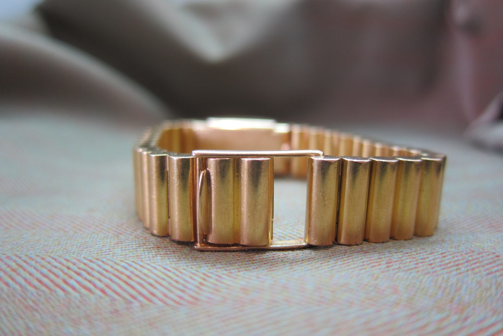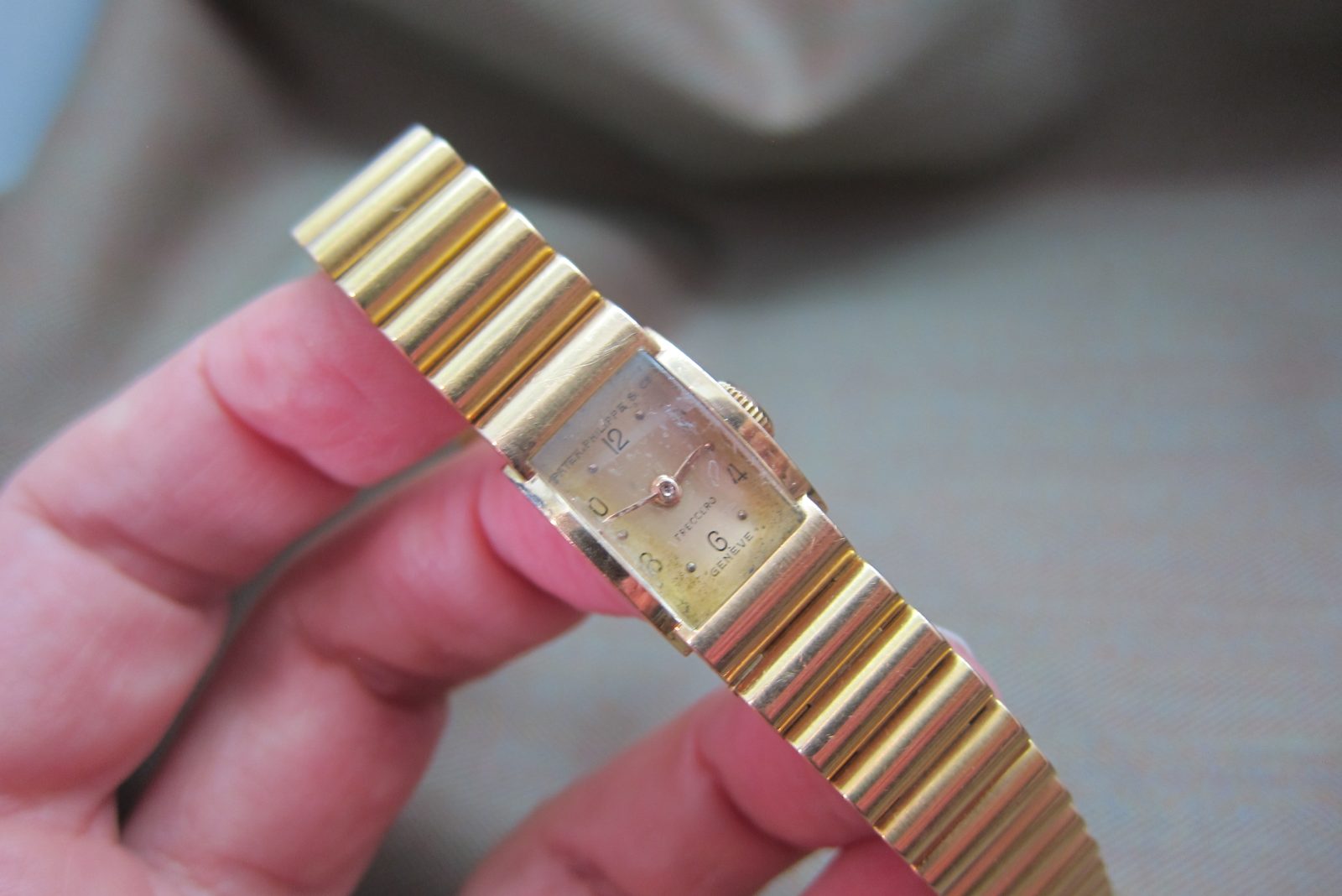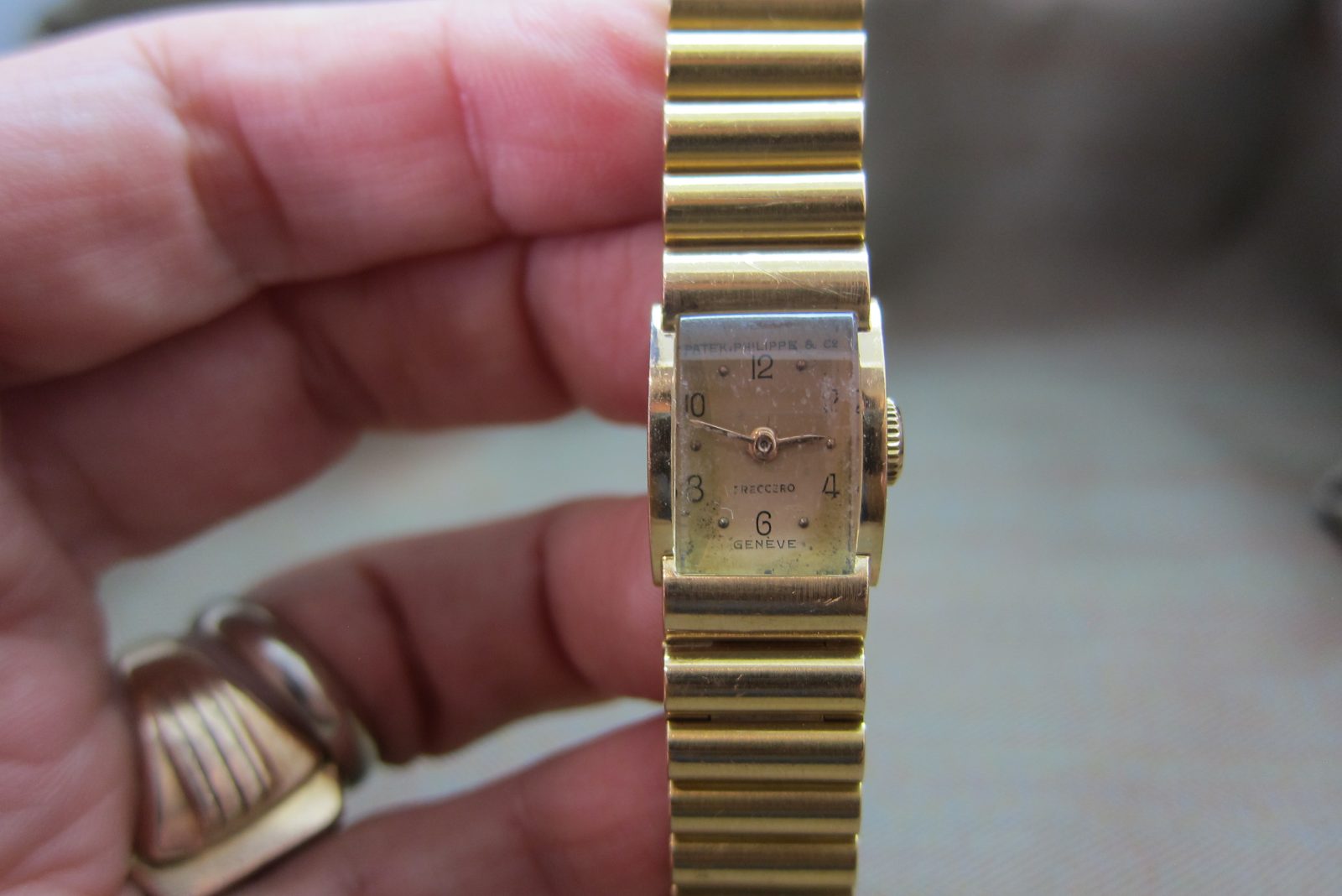 On its original 18k Rose gold ribbed bracelet with the original 18k Patek buckle.
