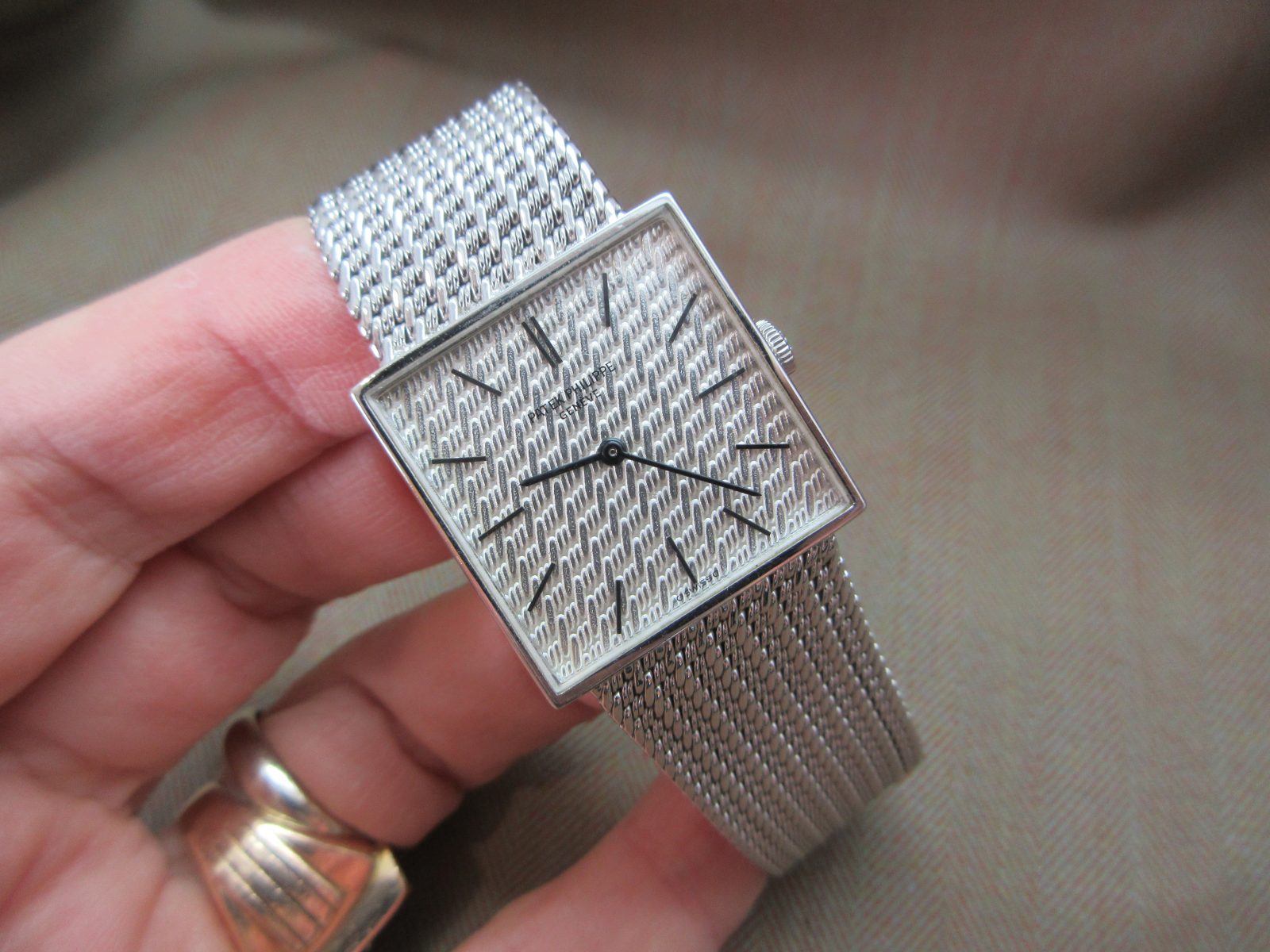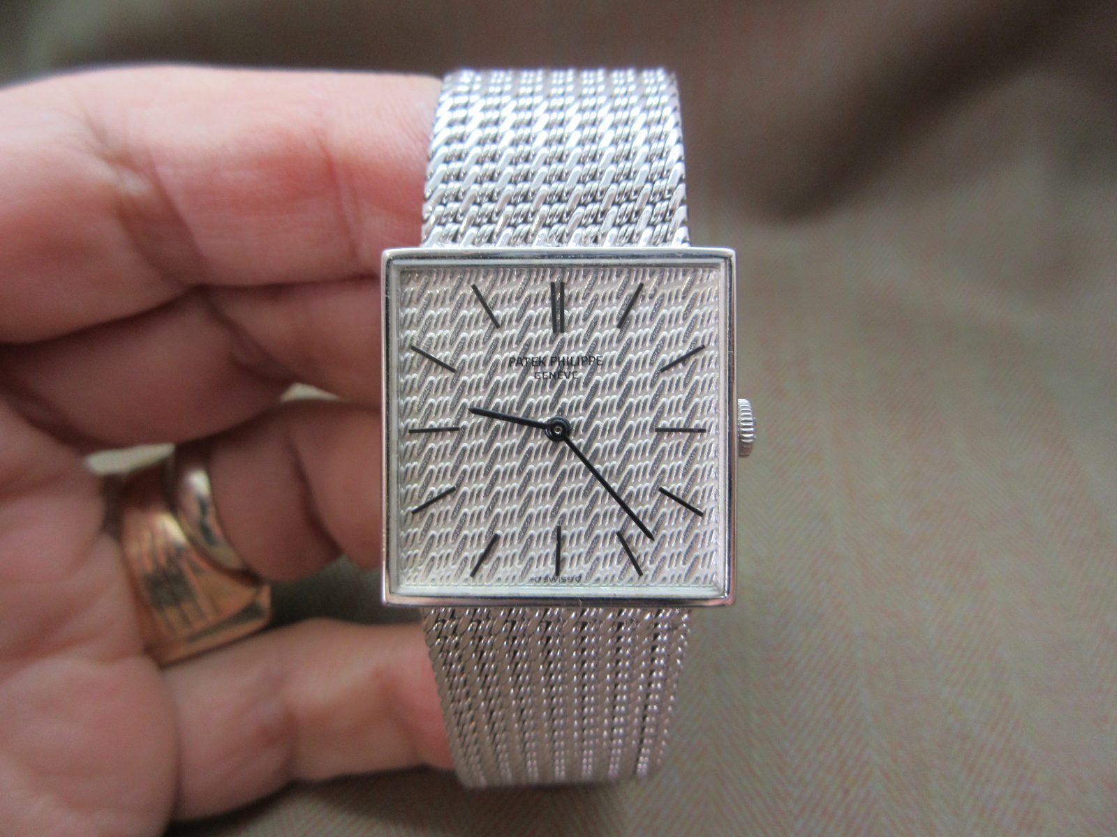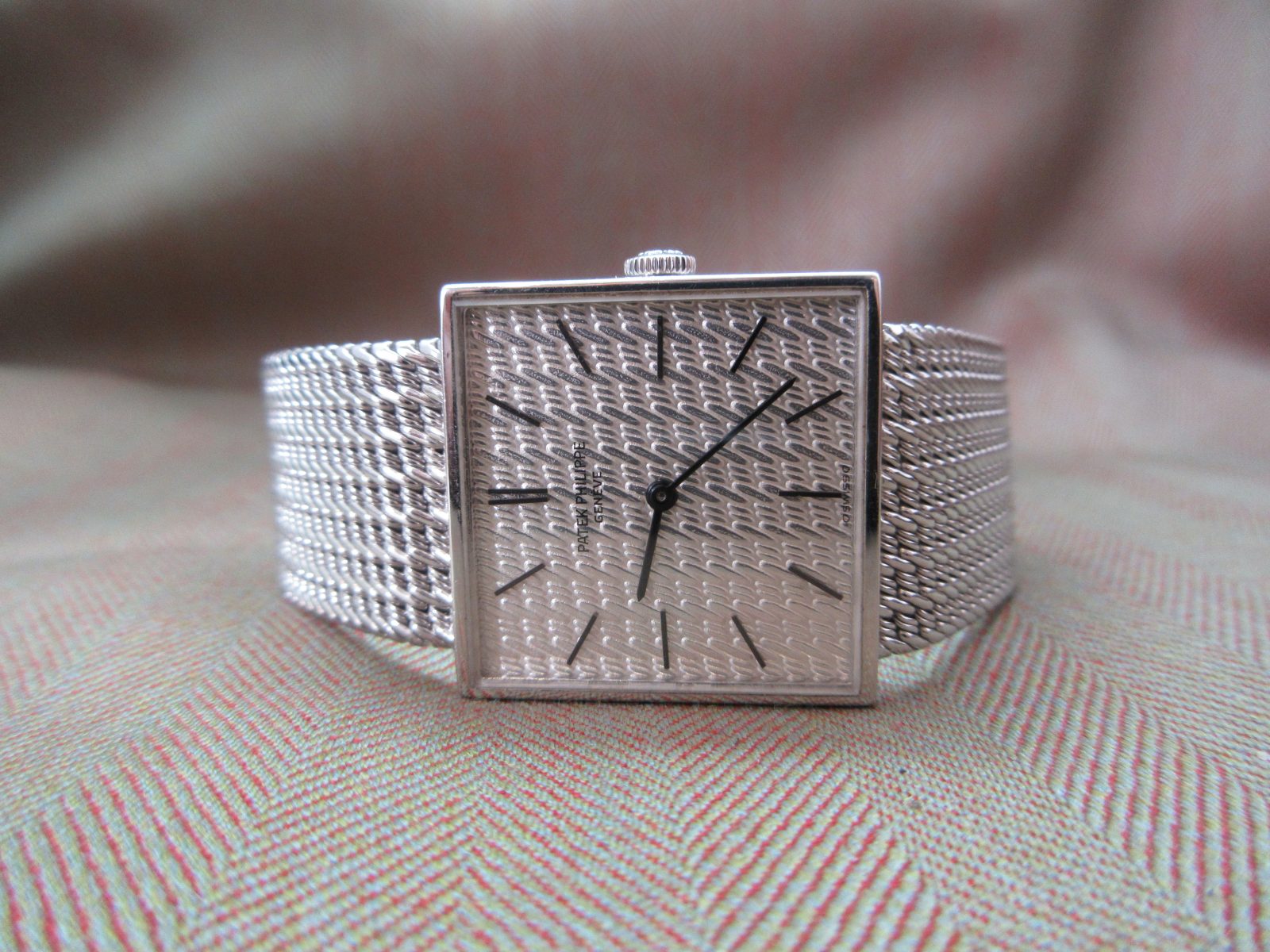 A beautiful Patek Philippe Gondolo crafted in 18k white gold, featuring a stunning zig-zag-engraved finish carried throughout both the dial and bracelet. A refined and distinctive piece that perfectly showcases the craftsmanship of the era.