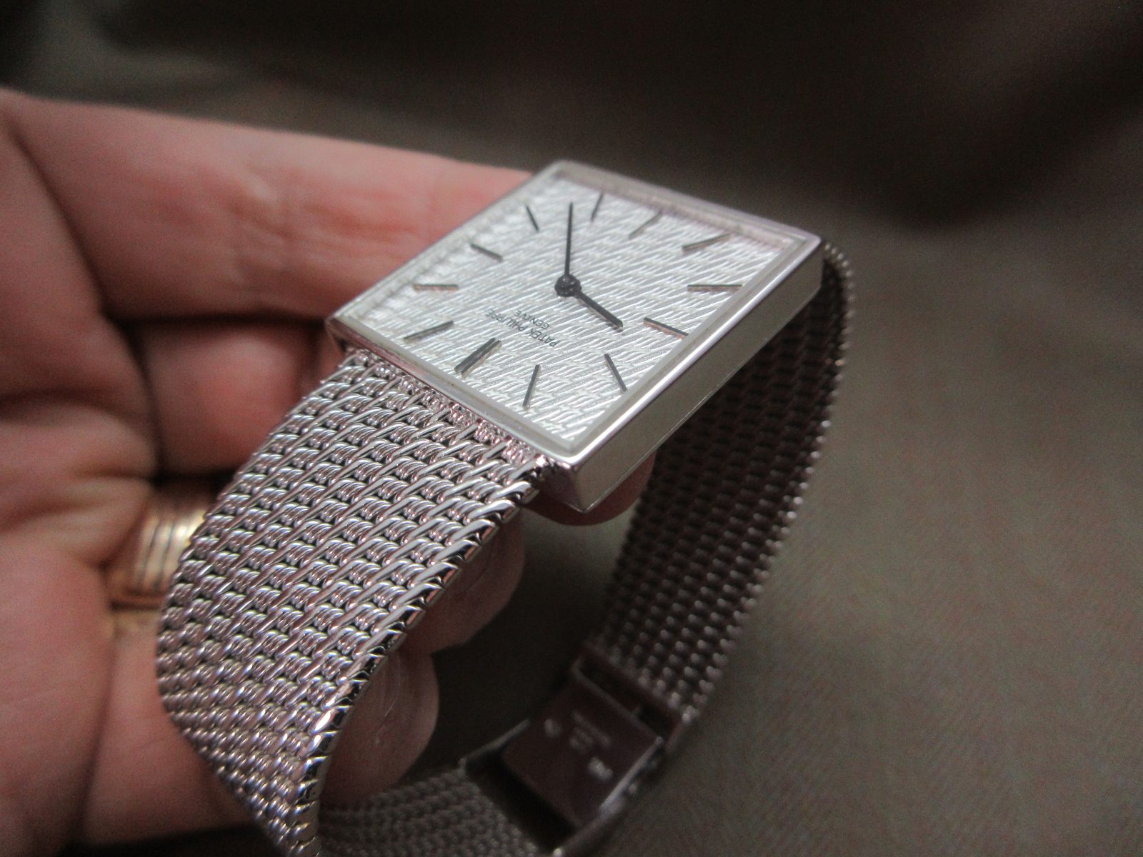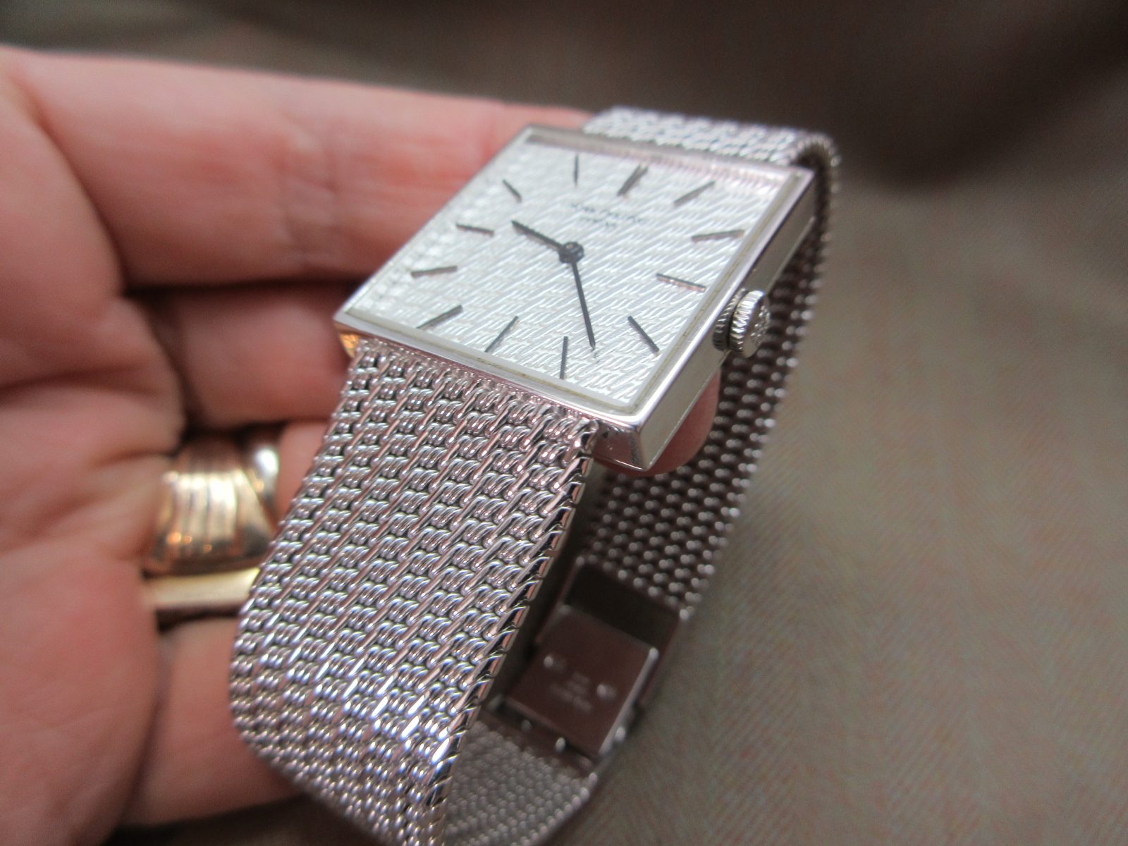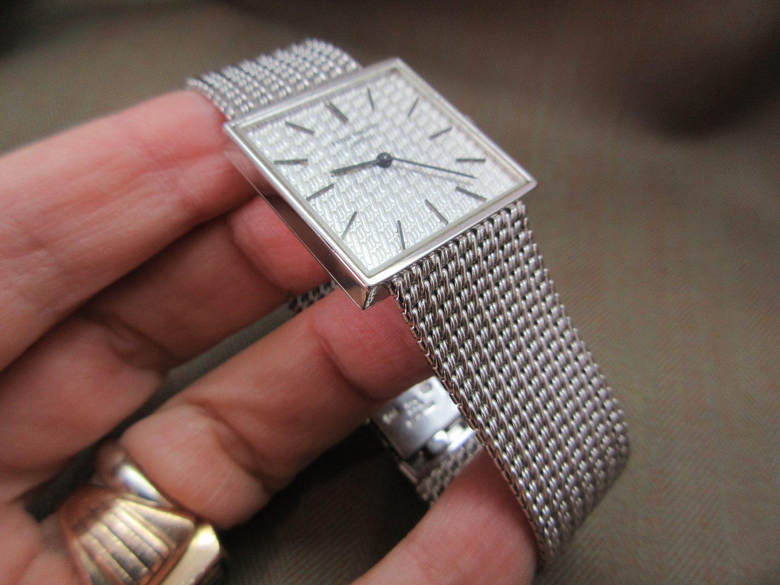 A beautiful Patek Philippe Gondolo crafted in 18k white gold, featuring a stunning zig-zag-engraved finish carried throughout both the dial and bracelet. A refined and distinctive piece that perfectly showcases the craftsmanship of the era.