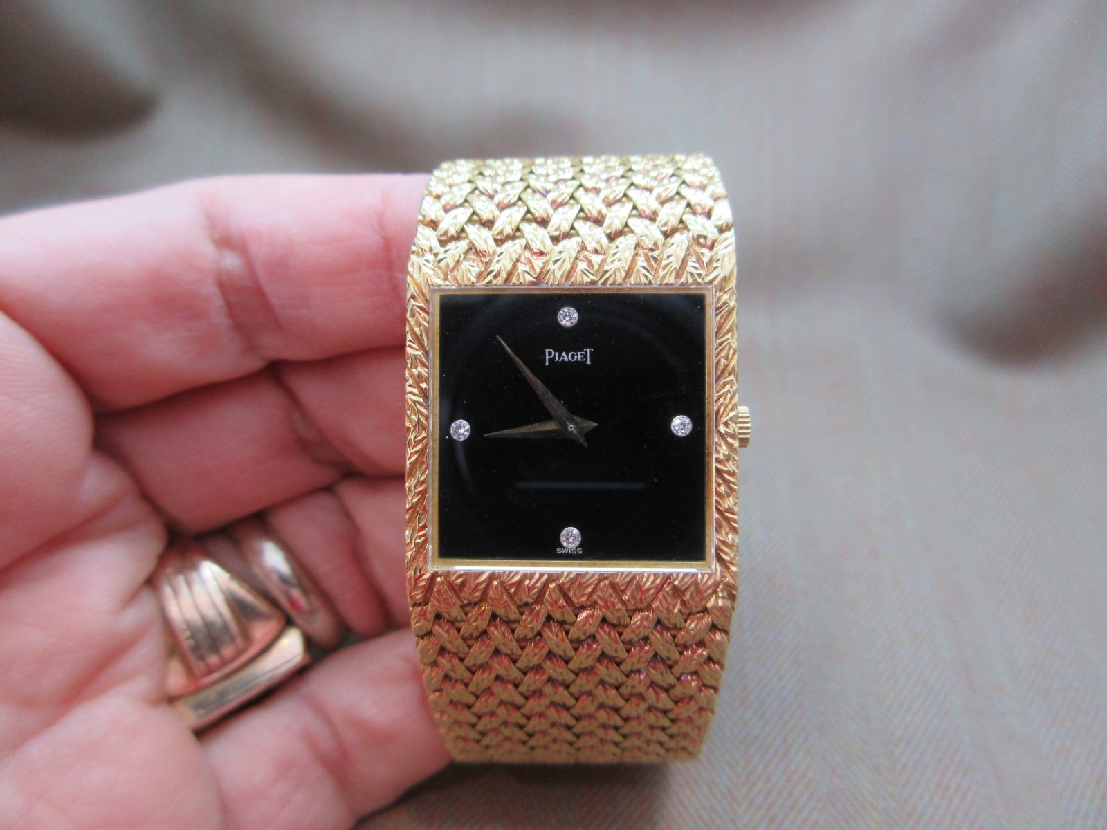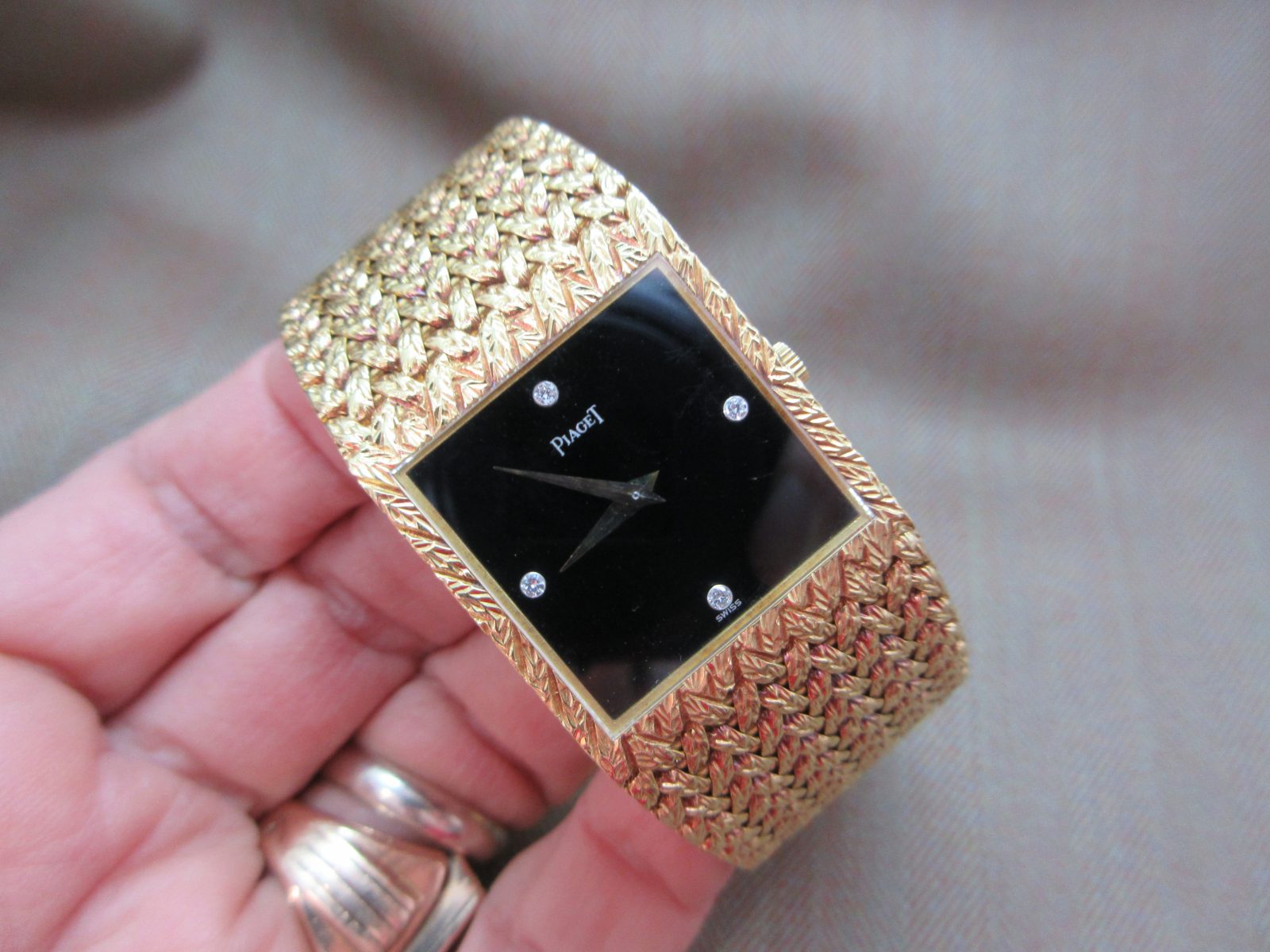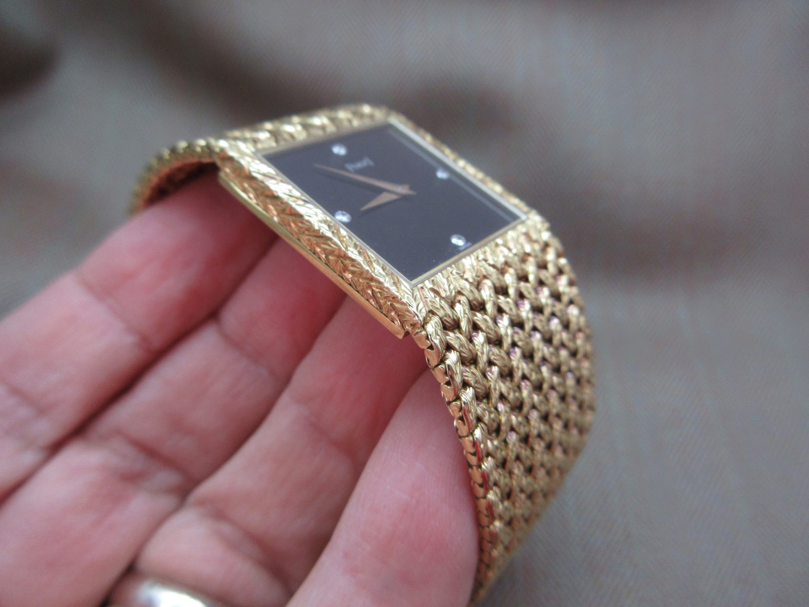 Piaget Vintage 18k Braided Bracelet Watch with Onyx & Diamond Dial