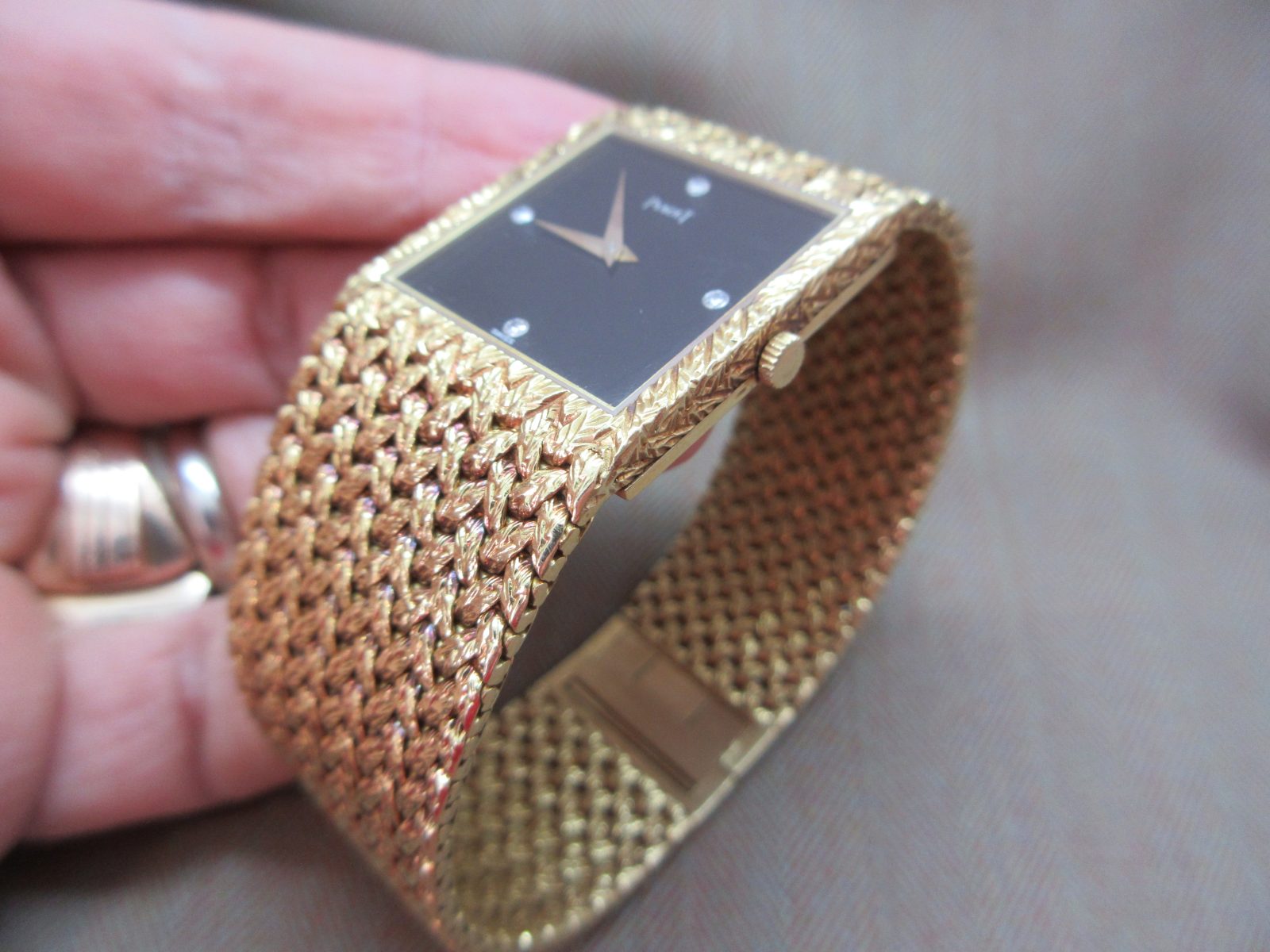 A beautiful Piaget cuff bracelet with a fantastic braided finish and stone dial—it doesn’t get more Piaget than this.