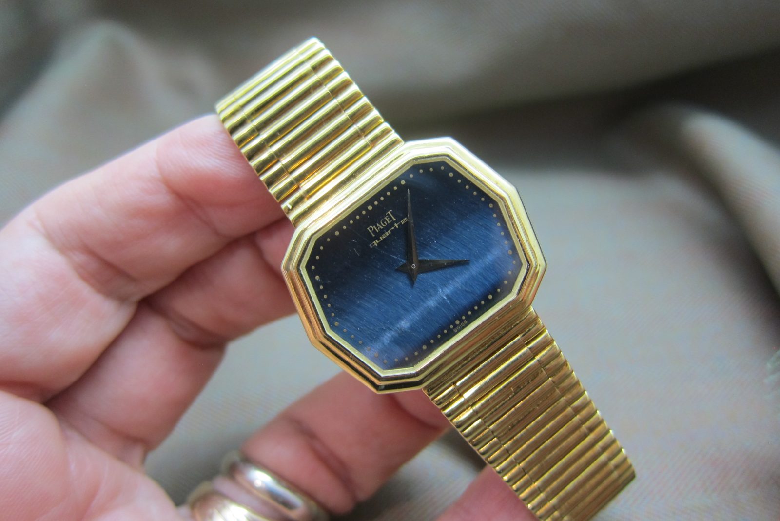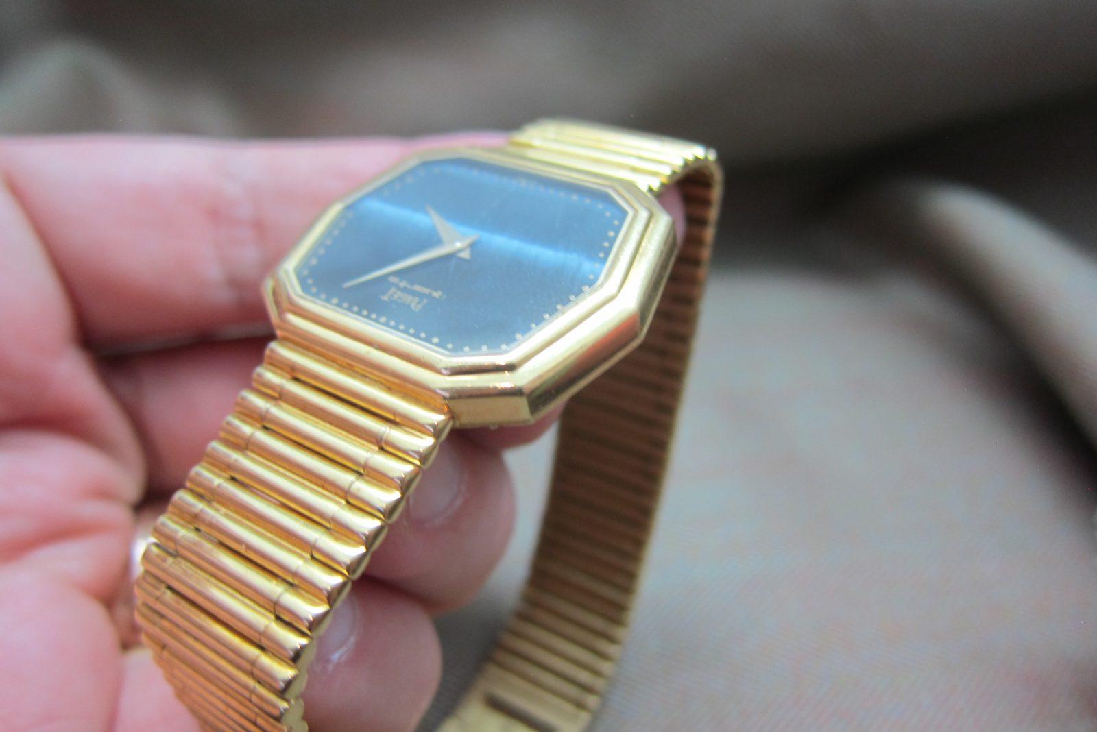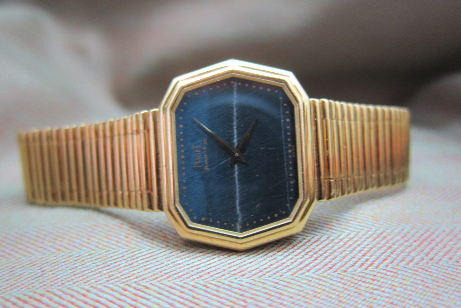 Piaget doing what they do best—stone-dial watches crafted in precious metal. This piece is a fun one, featuring a distinctive hexagonal case.