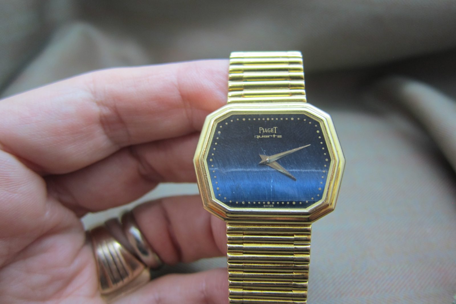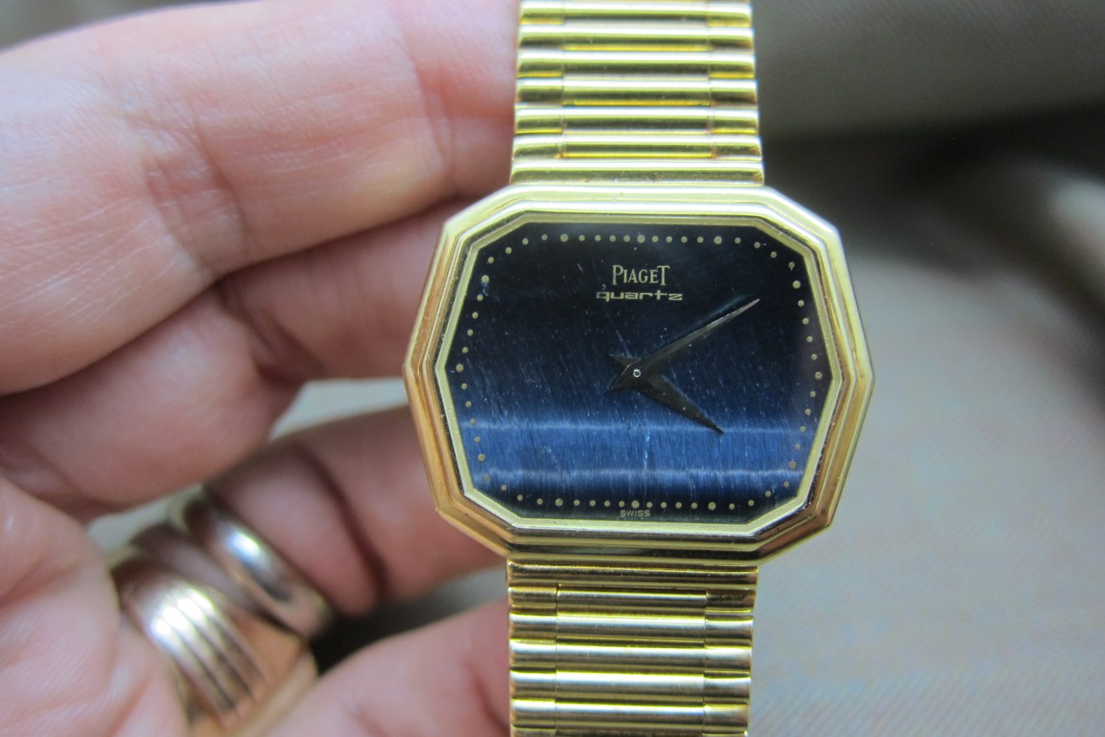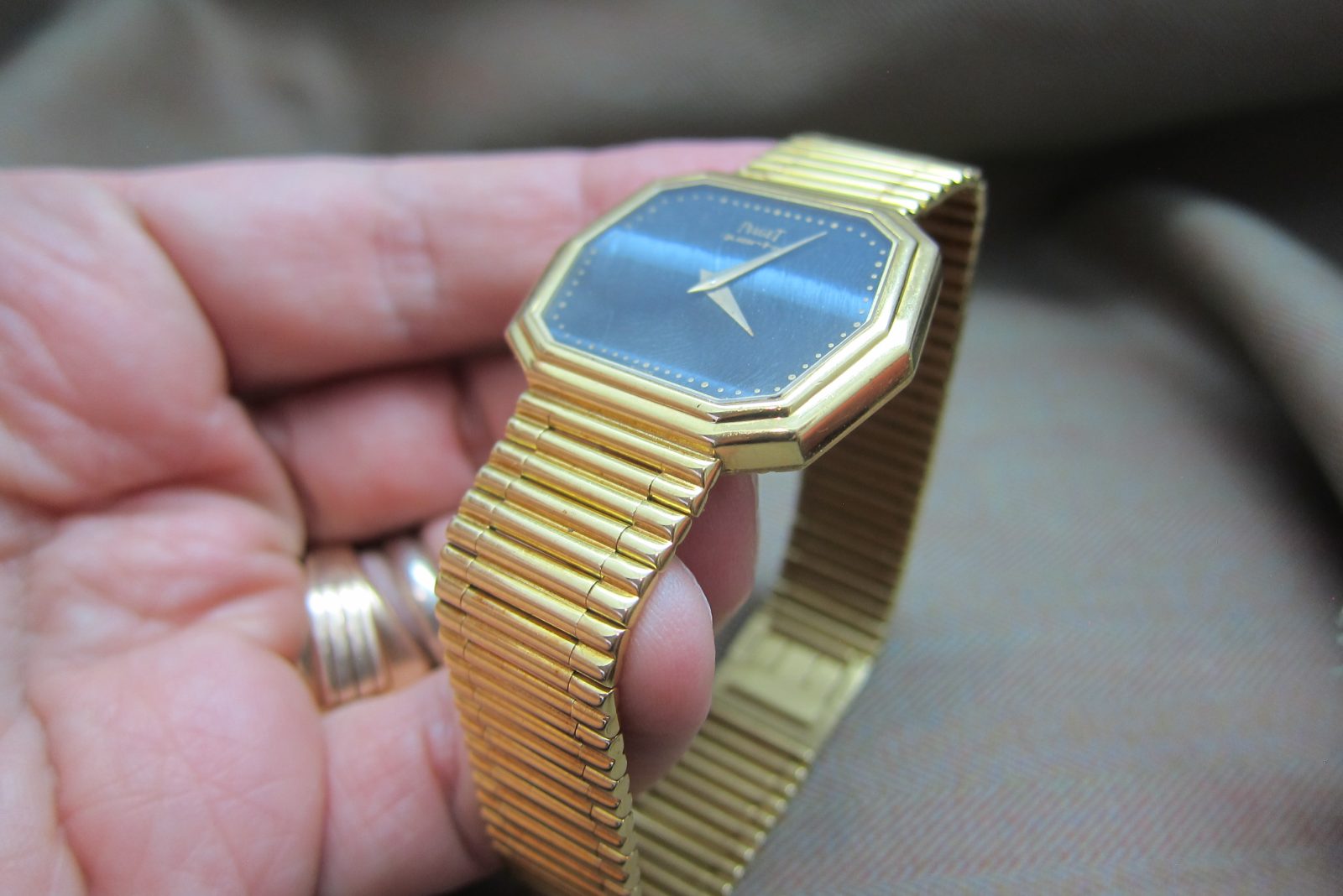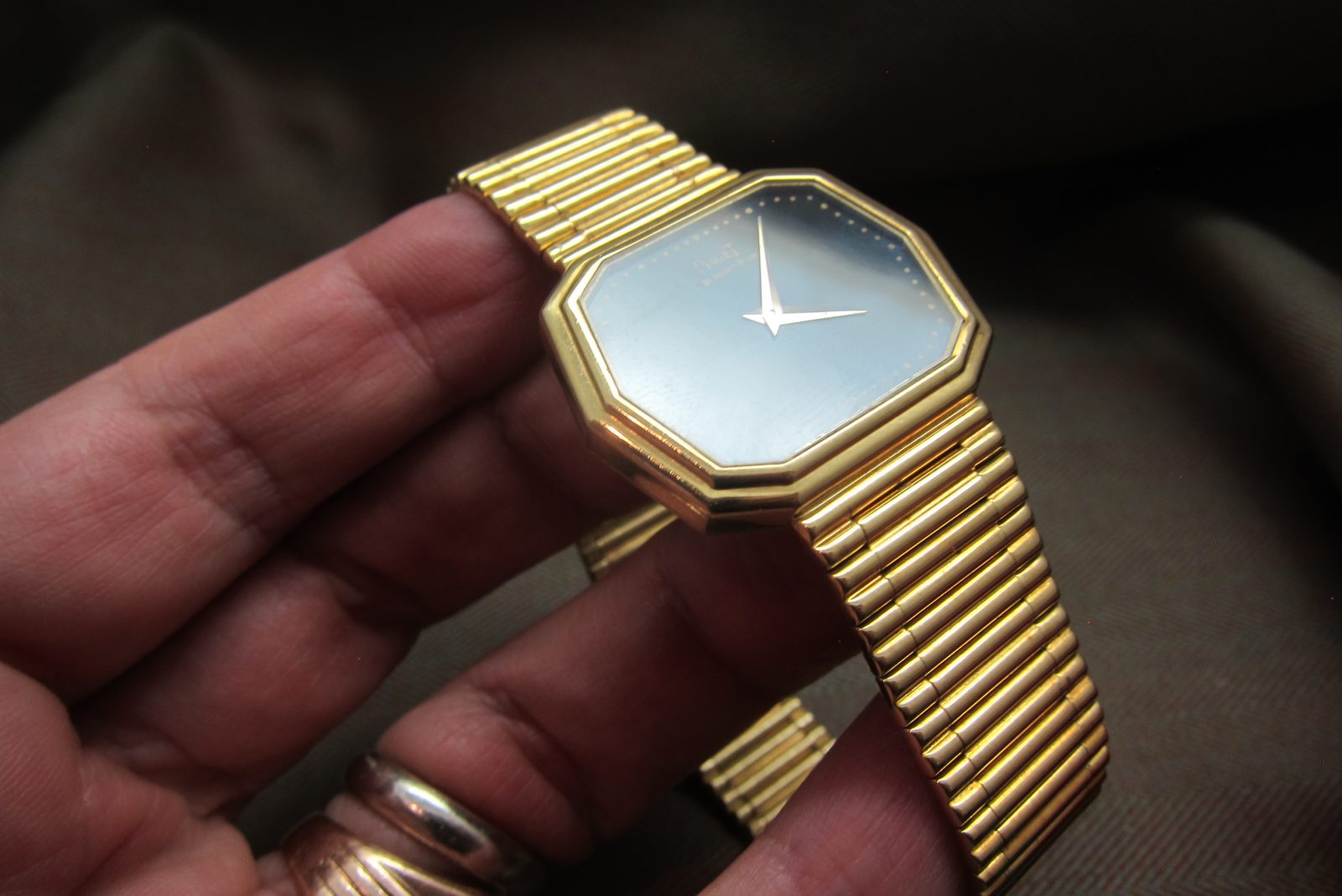 Piaget doing what they do best—stone-dial watches crafted in precious metal. This piece is a fun one, featuring a distinctive hexagonal case.