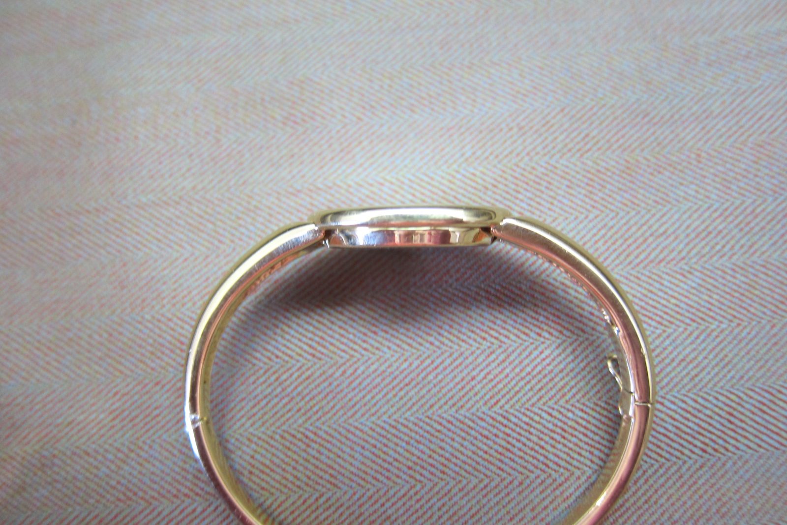 On its original 18k oval cuff bracelet, it fits a size 7 wrist.