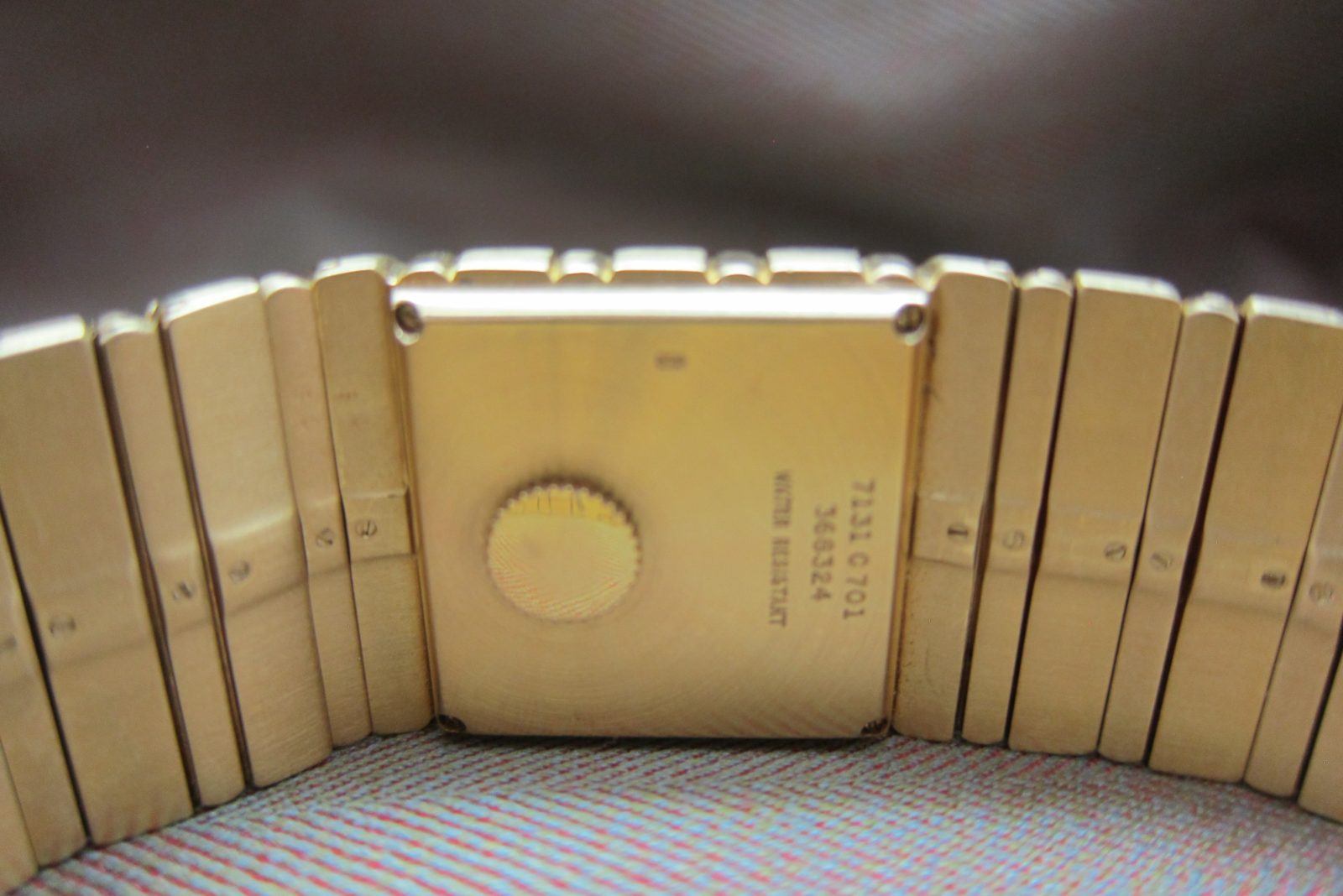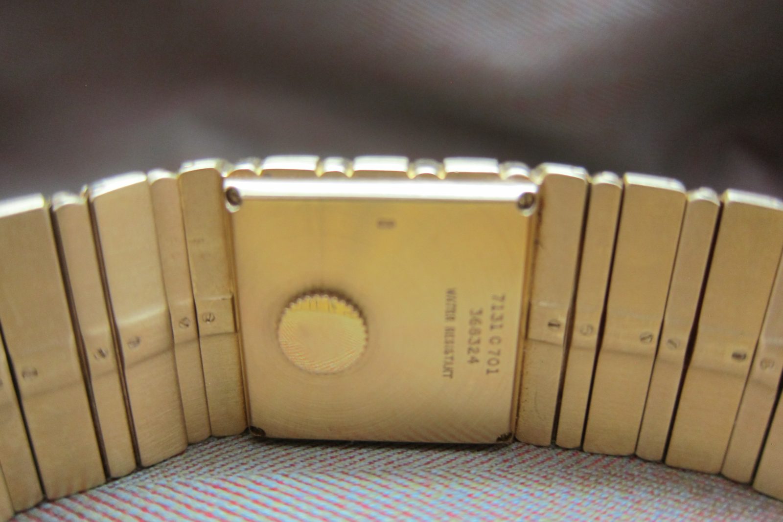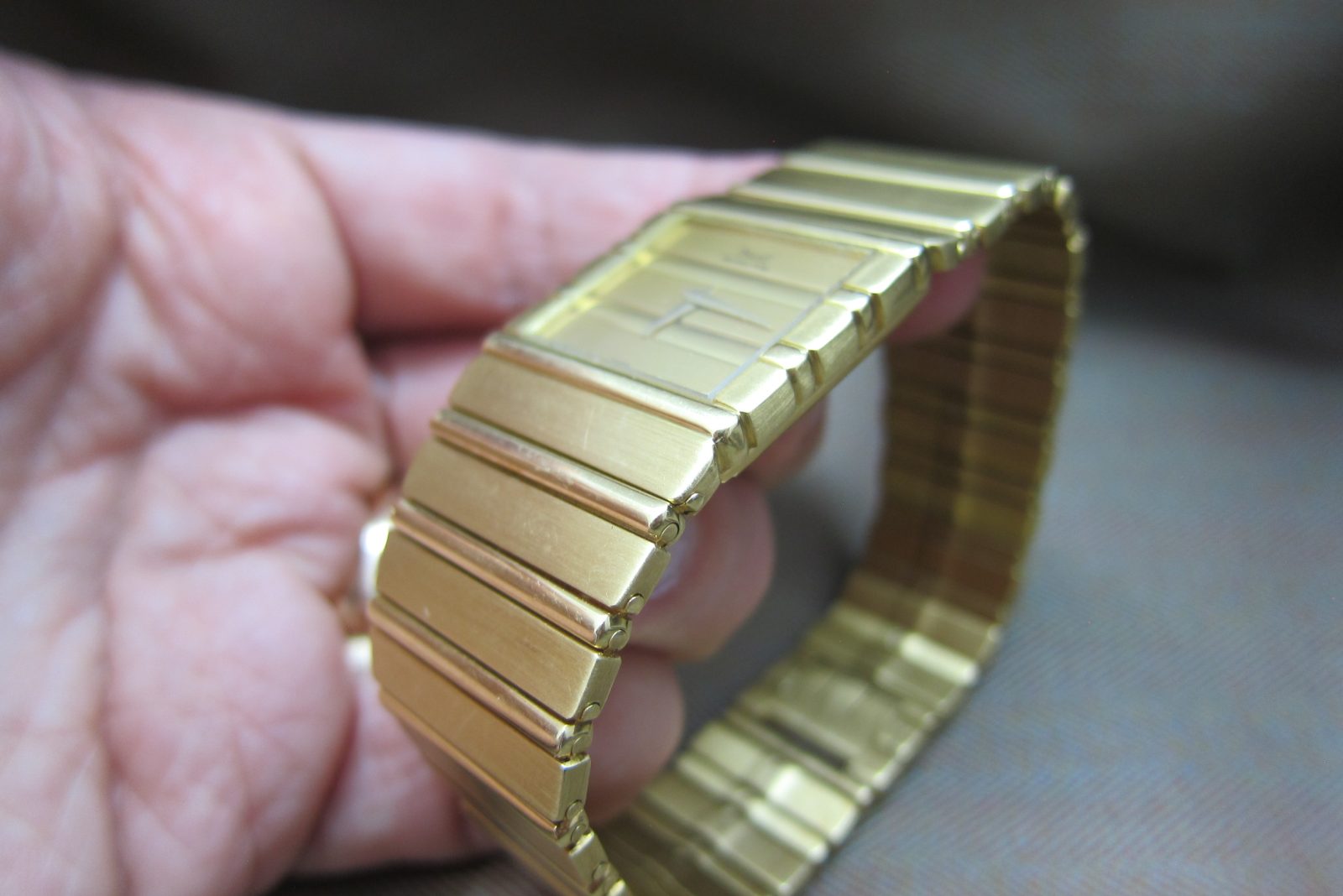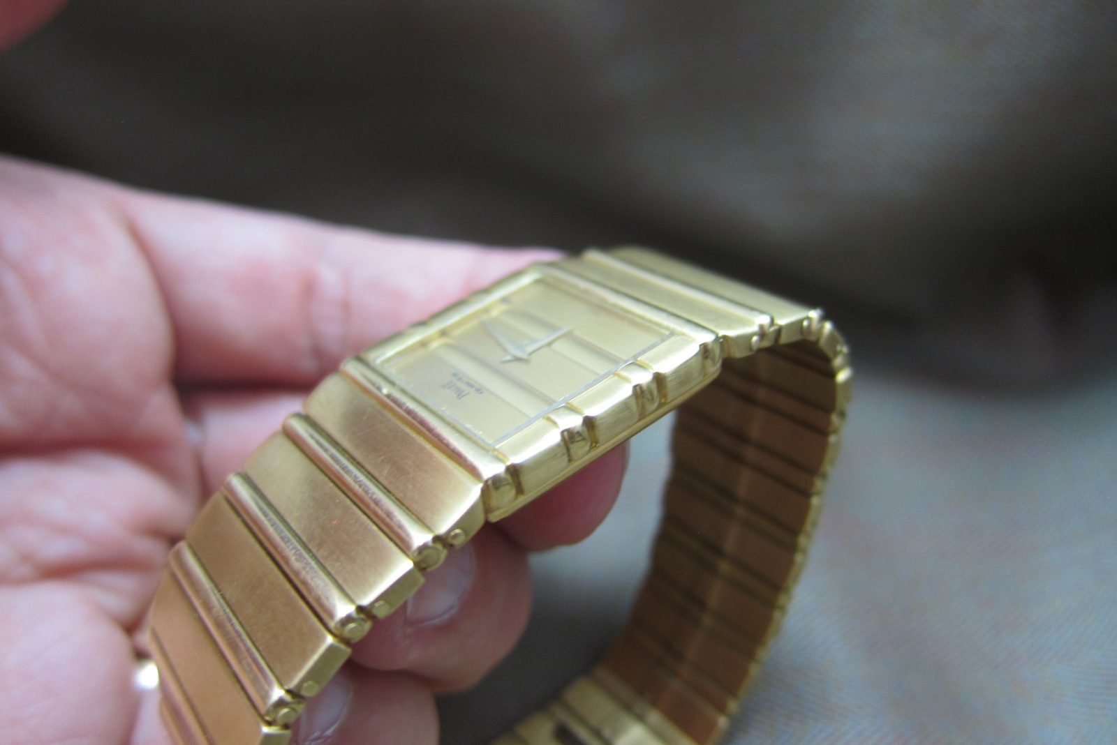 The 18k case measures 25 mm and is in great condition with defined edges and an engraved hallmark on the back, complete with a crisp engraved serial number and logo on the back.