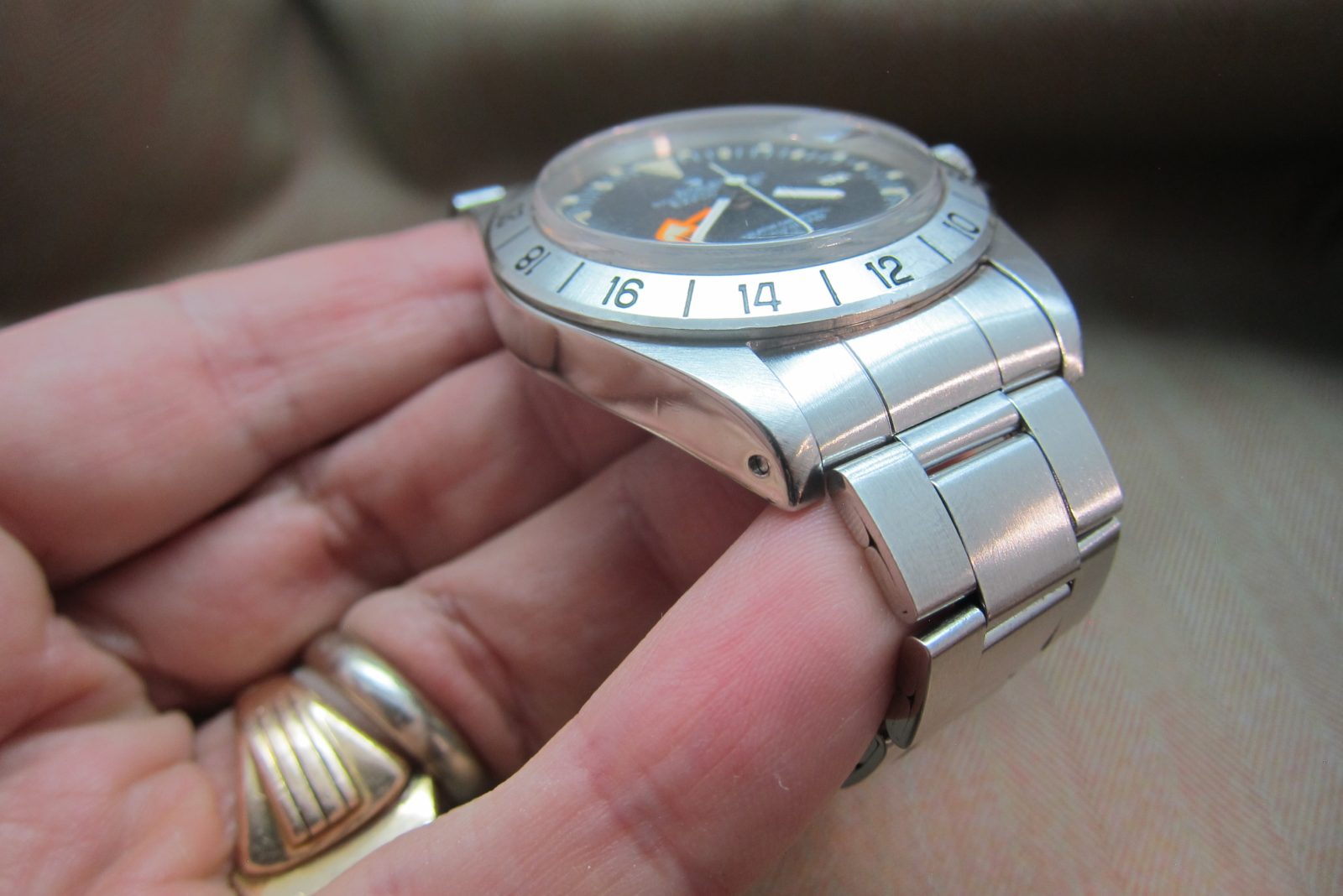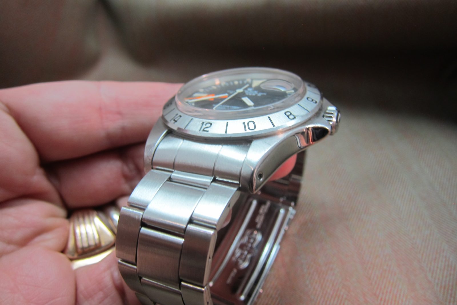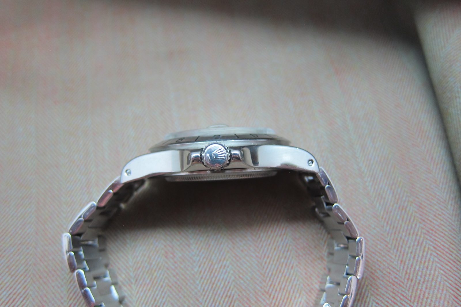 On its original folded link steel bracelet secured by the original Rolex clasp, fits a size 7