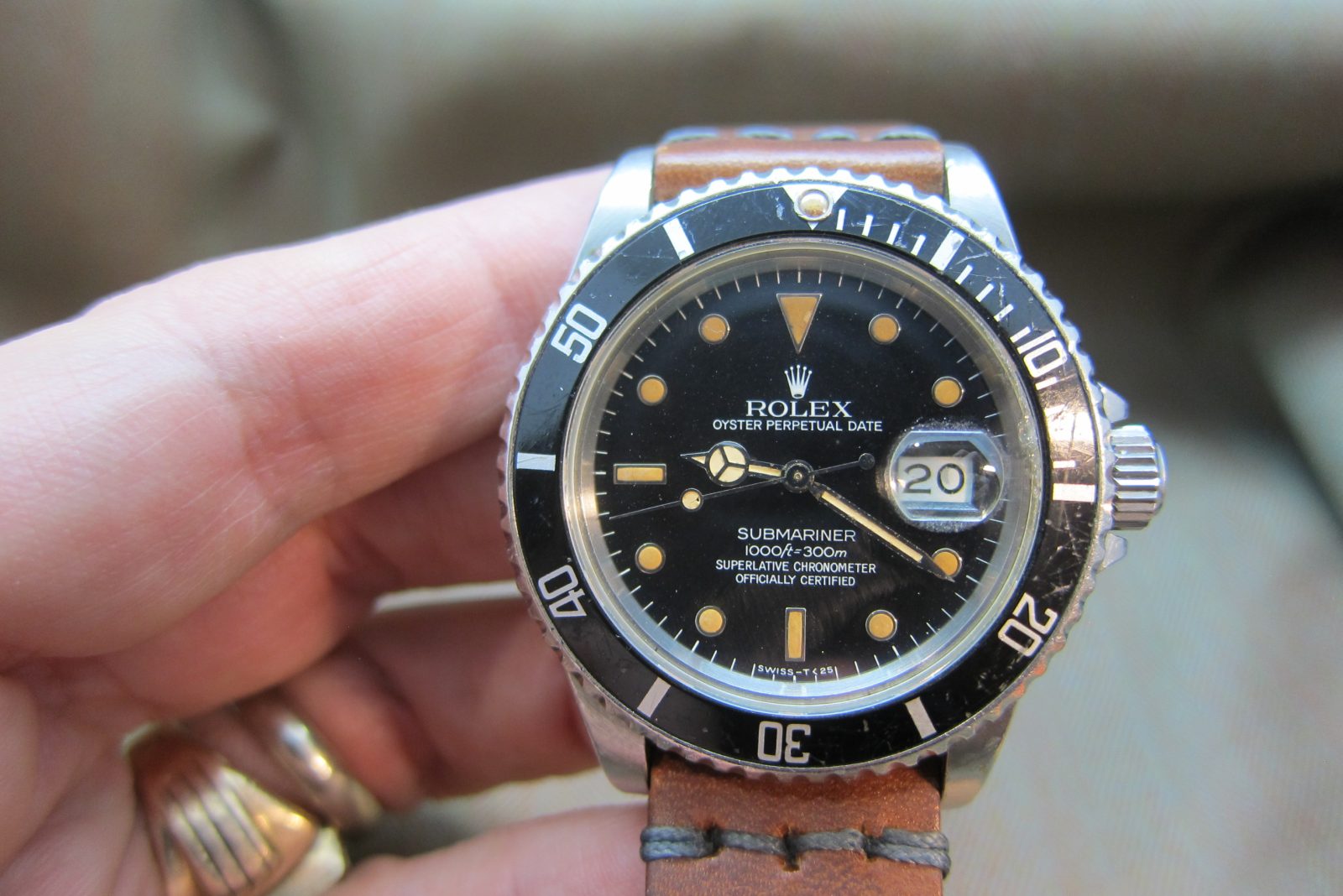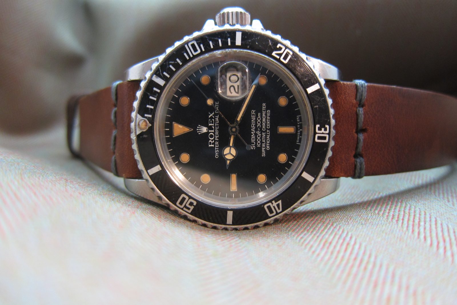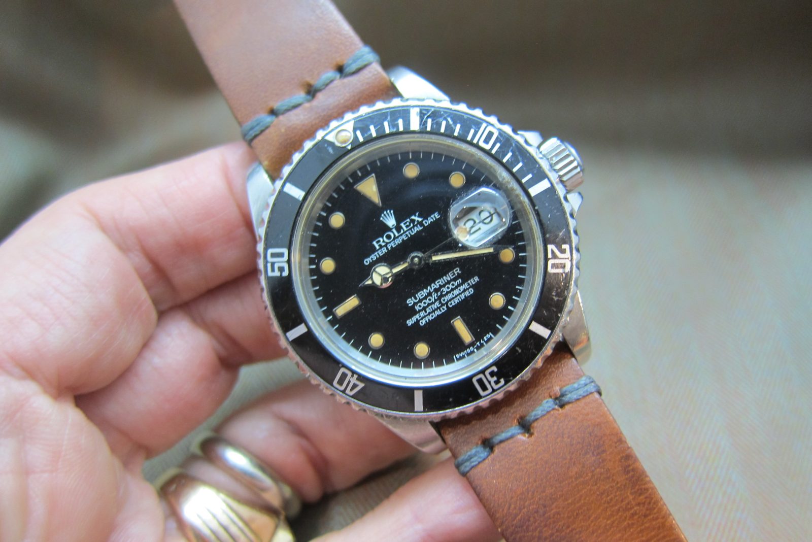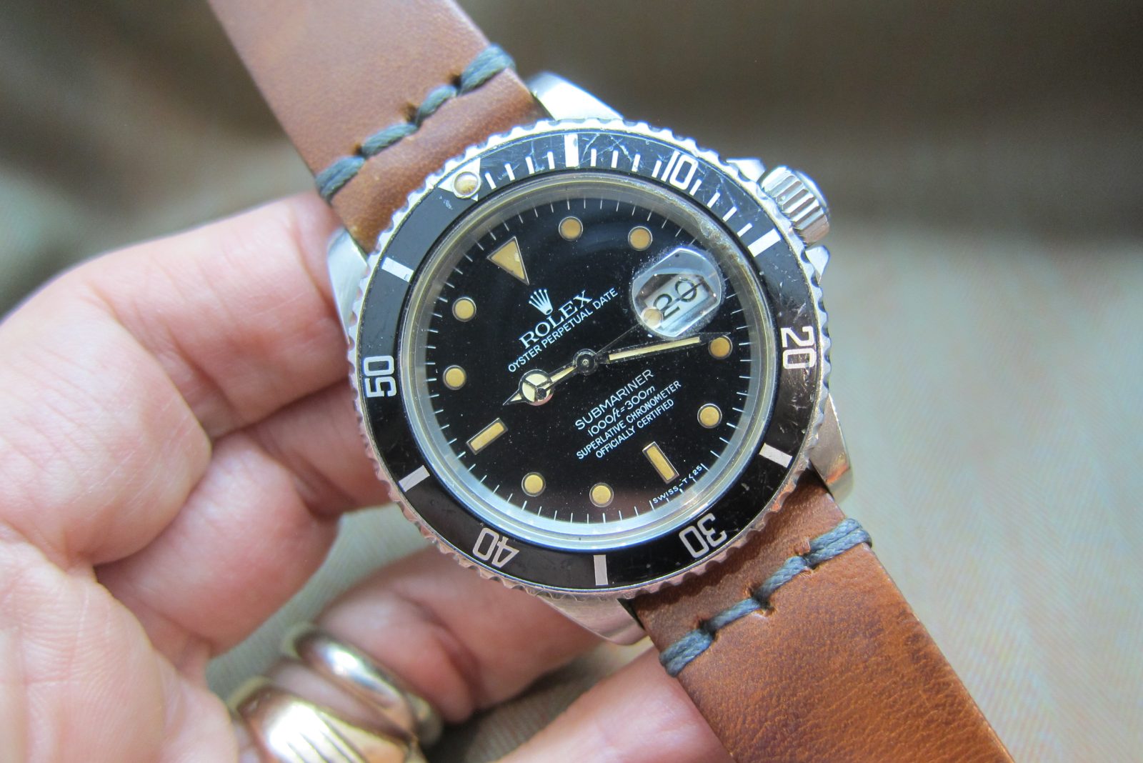 Rolex Submariner 16800, 8 million serial, an early ’80s transitional model featuring a very strong, beautiful patina across the dial and hands.