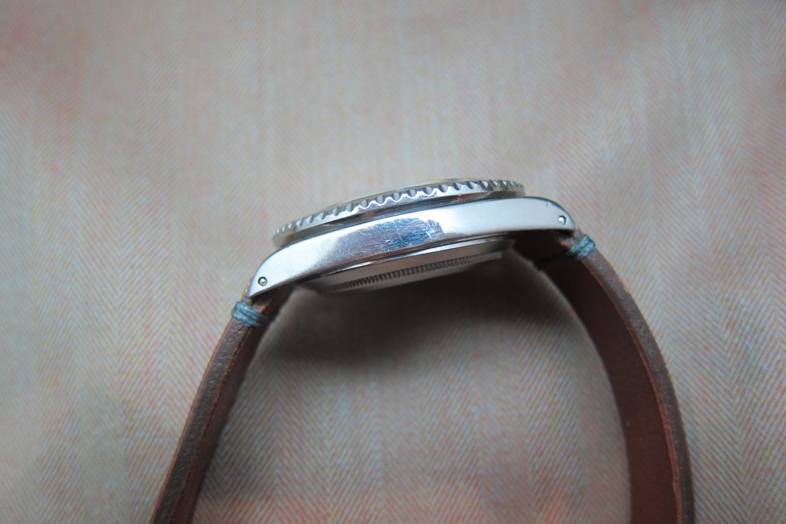 The steel case is in great condition, featuring original beveled edges with wear on the bezel.