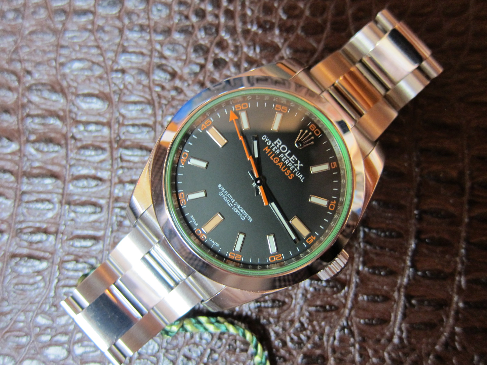 Wow! The Green Sapphire Milgauss has been a favorite among the hip and stylish crowd. Classic yet funky, the orange lightning bolt hand makes a real statement.
