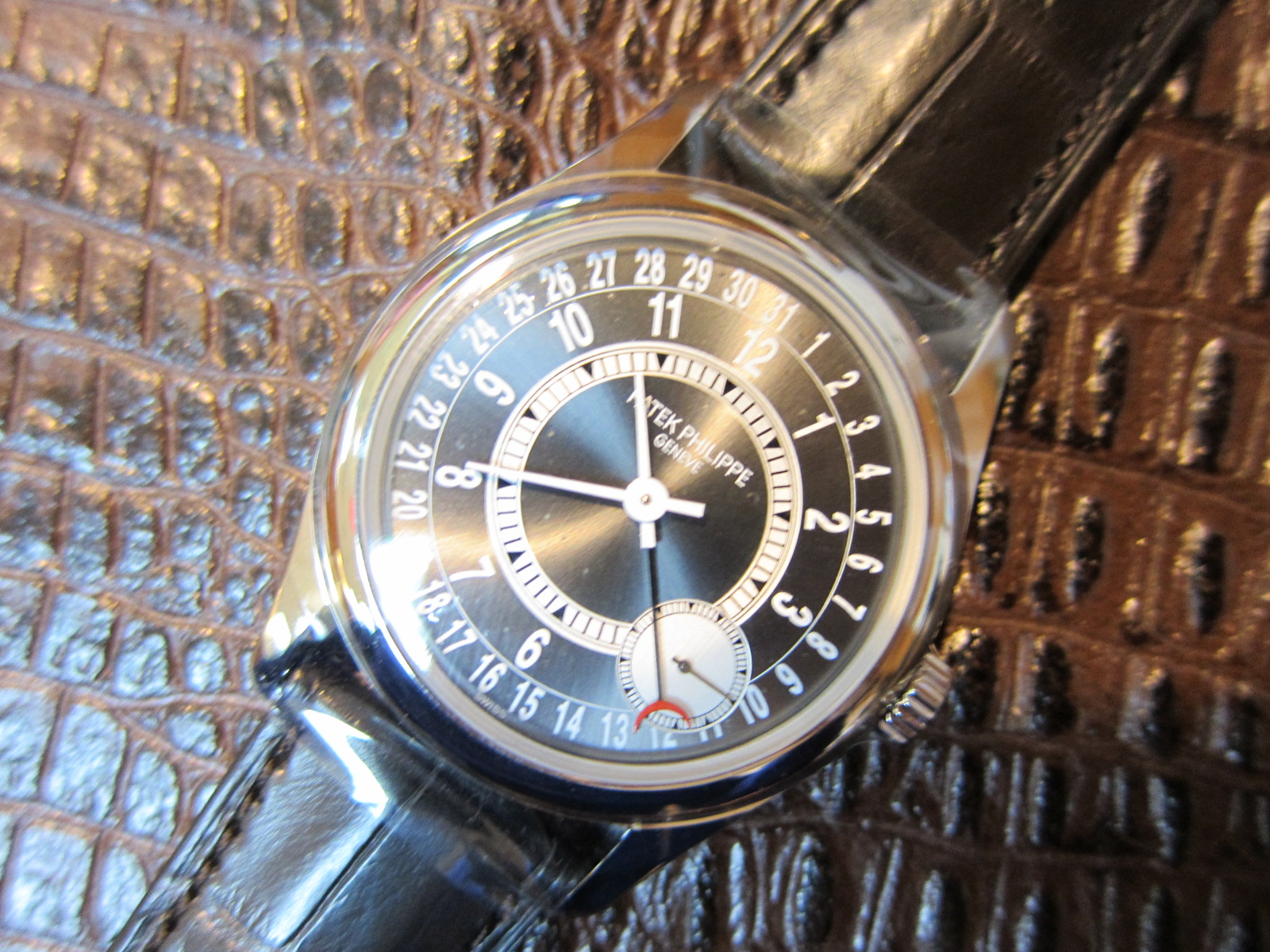 On brown Patek alligator strap and Patek gold buckle.
