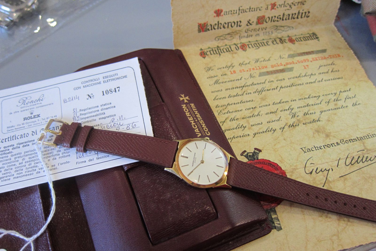 A razor-sharp 1960s Vacheron Constantin with bold batwing lugs—ultra-thin, ultra-refined, and complete with its box, papers, and receipt.