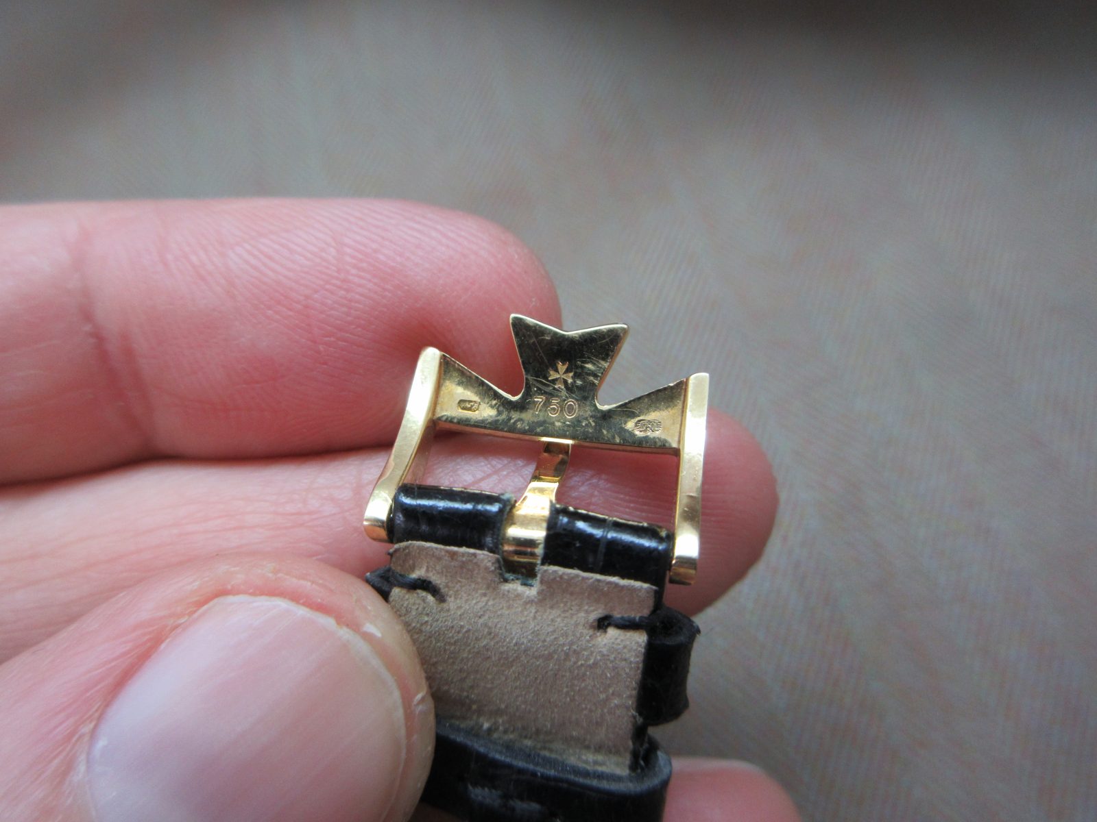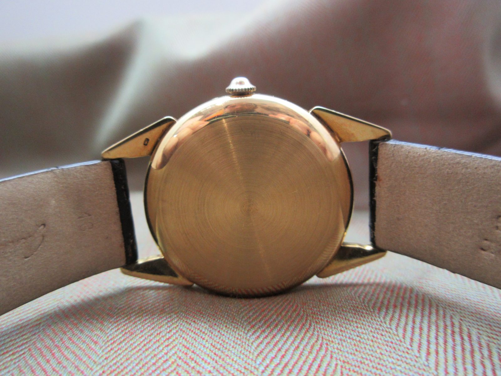 The 18k case measures 34 x 40 mm, including the lugs, and is in great overall condition, complete with a hallmark on the caseback of the lug.