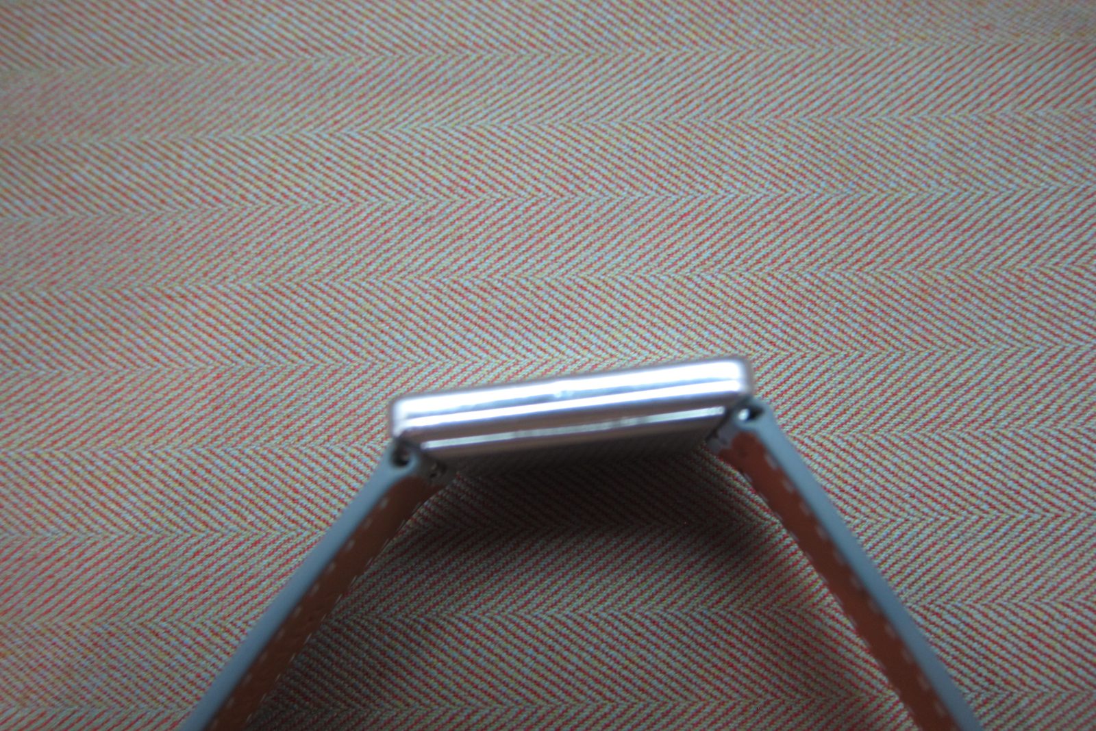 On a generic baby blue lizard skin strap, secured by a generic buckle.