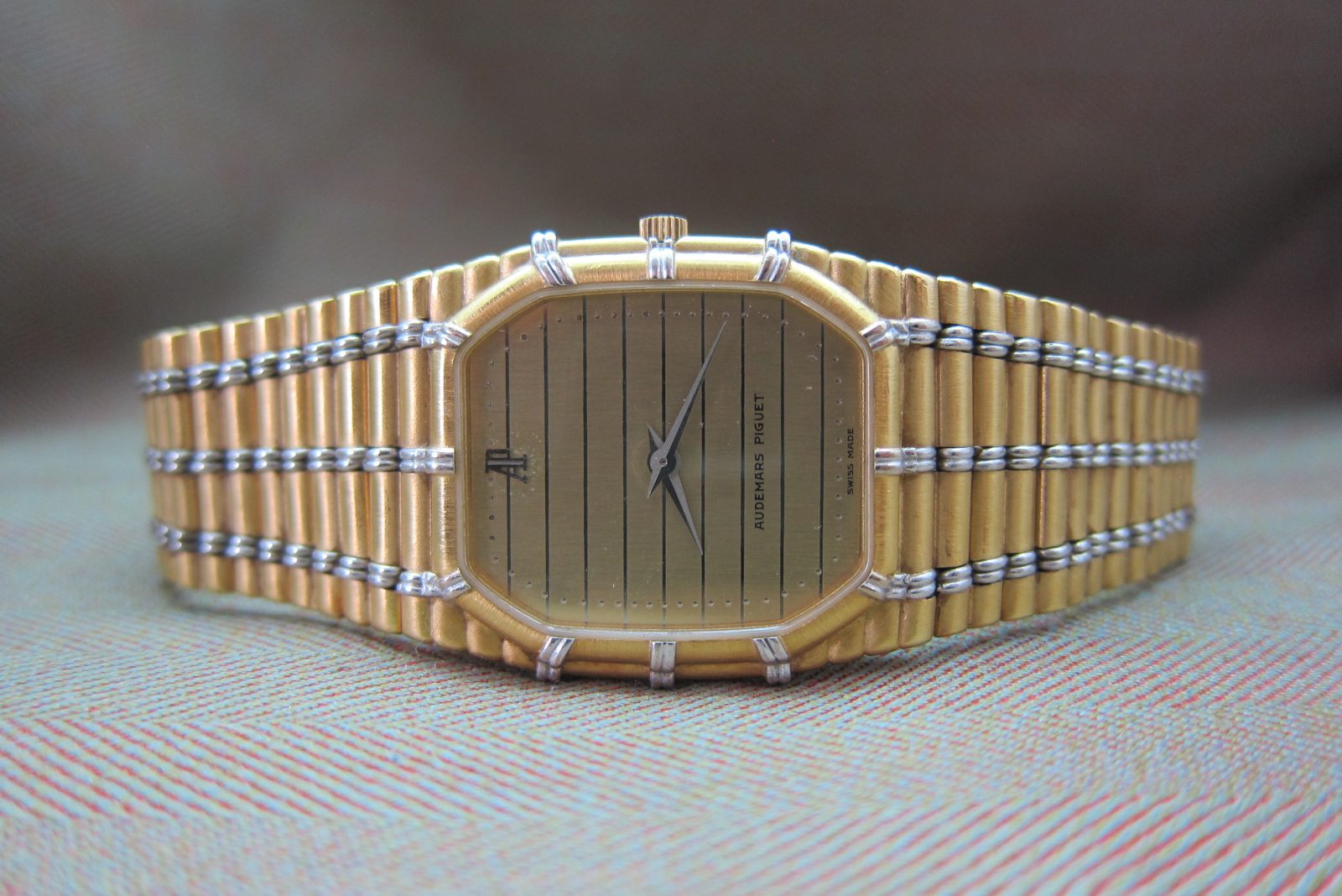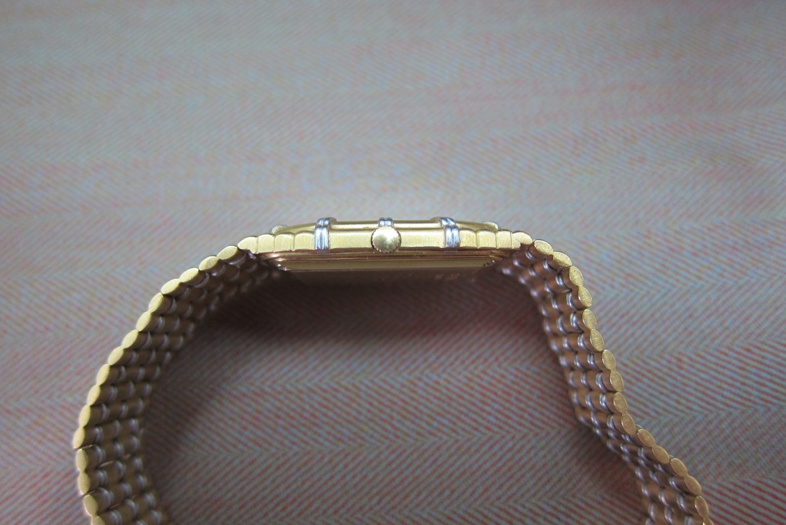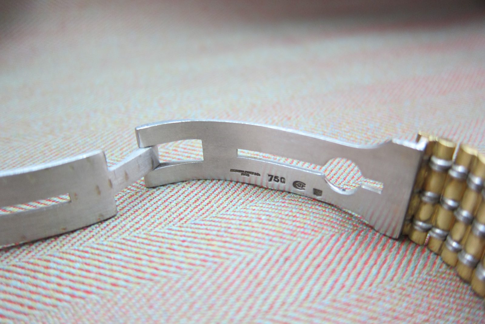 The 18k case measures 28 mm and is in great condition. It features defined edges, a crisp hallmark, and a caseback number on the back.