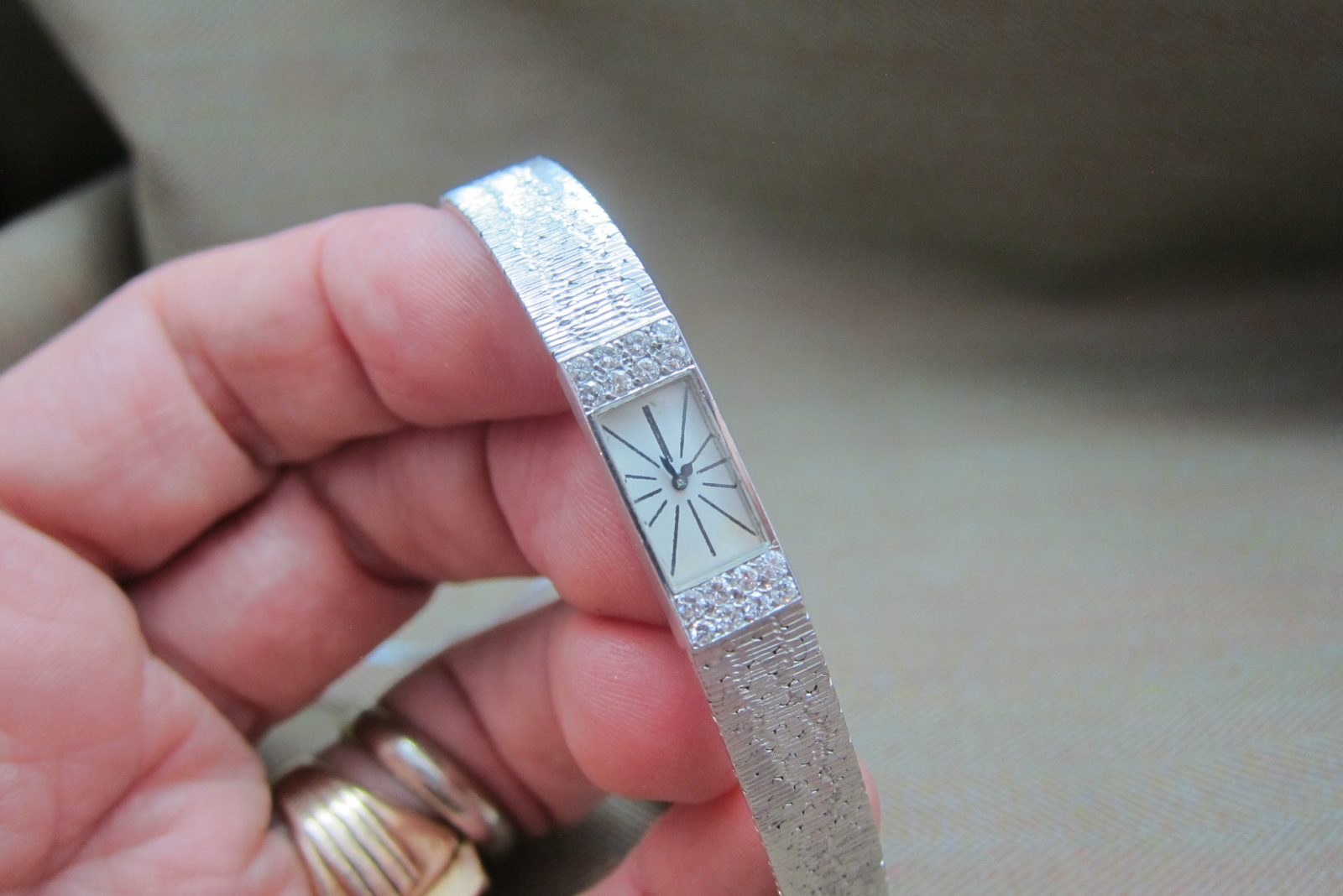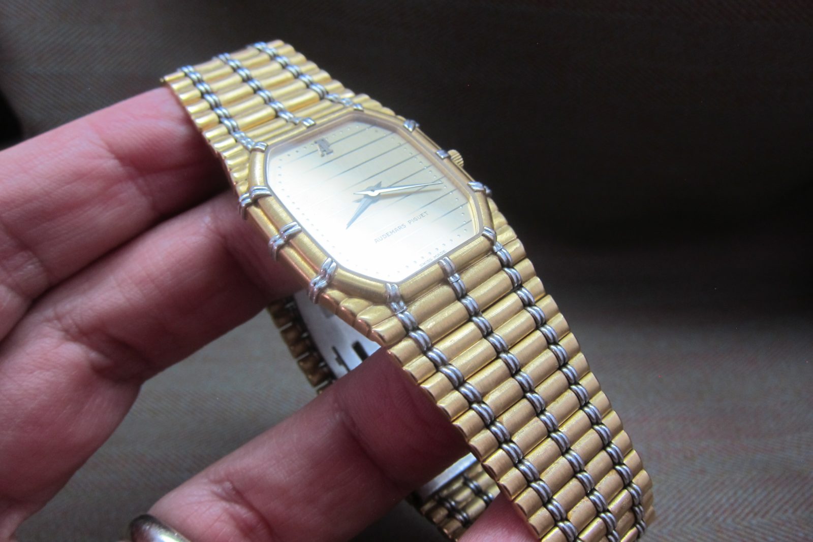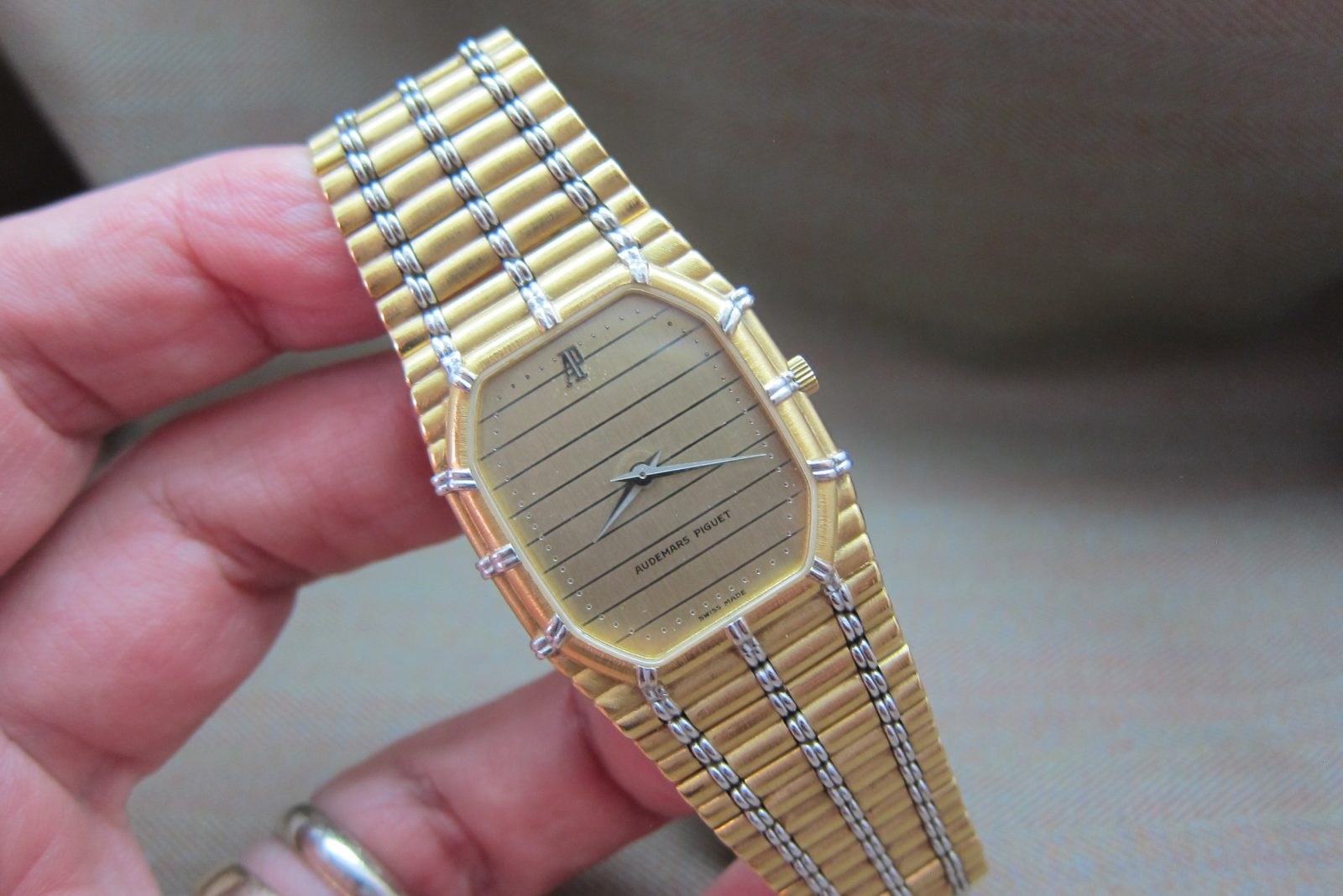 The 18k case measures 28 mm and is in great condition. It features defined edges, a crisp hallmark, and a caseback number on the back.