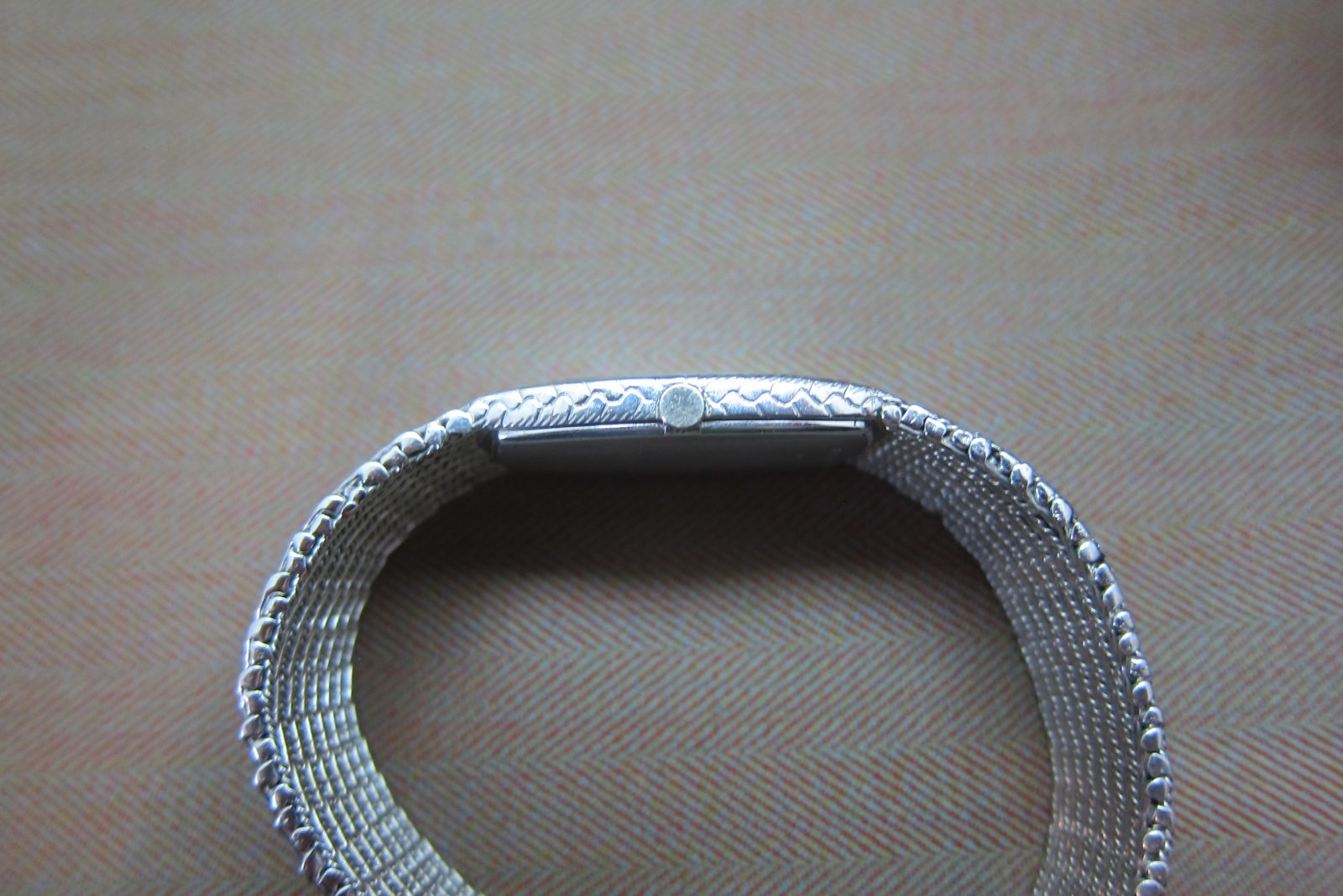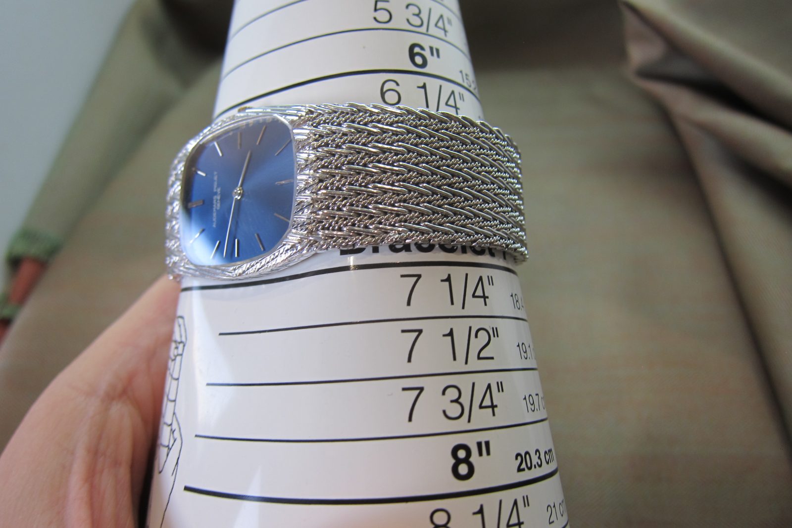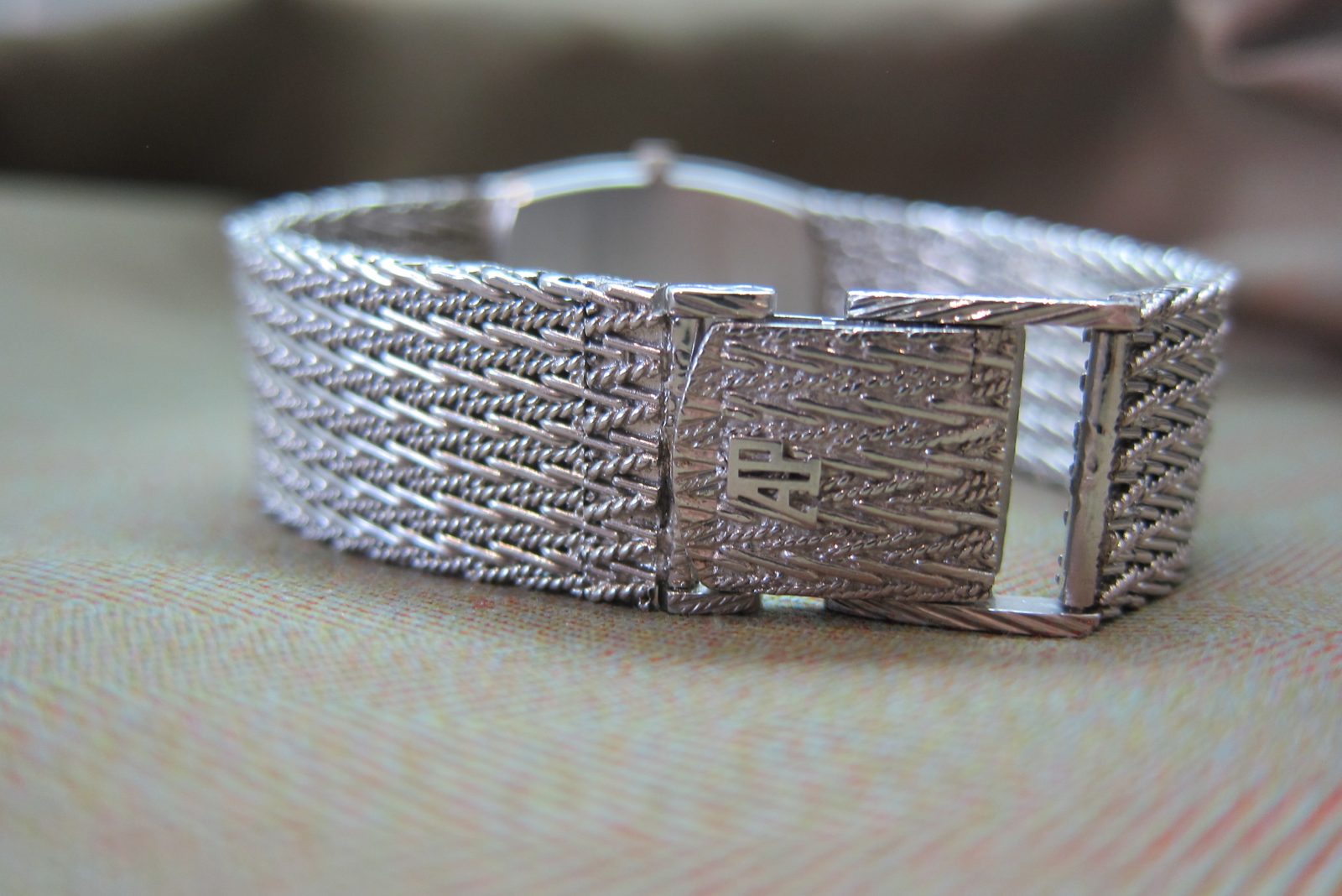 On its original woven 18k white gold bracelet, secured by the original 18k buckle, with a total length of 7.5 inches.