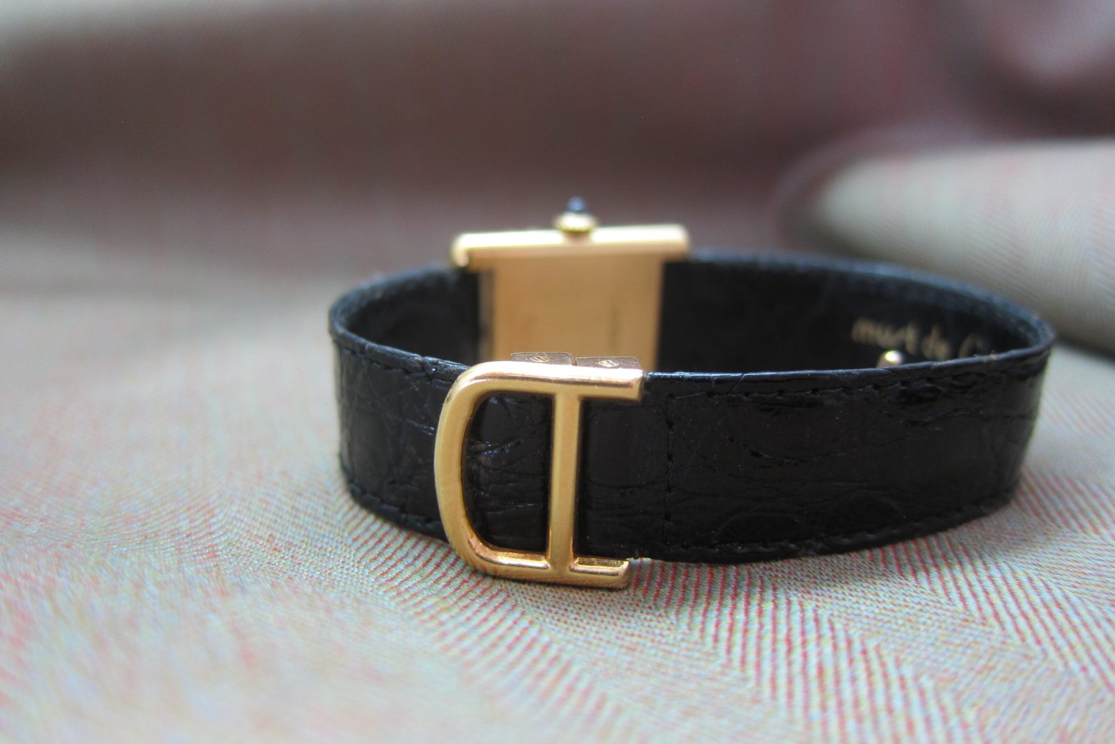 On its original strap secured by the original 18k Cartier deployant clasp. Fits a size 6.5.