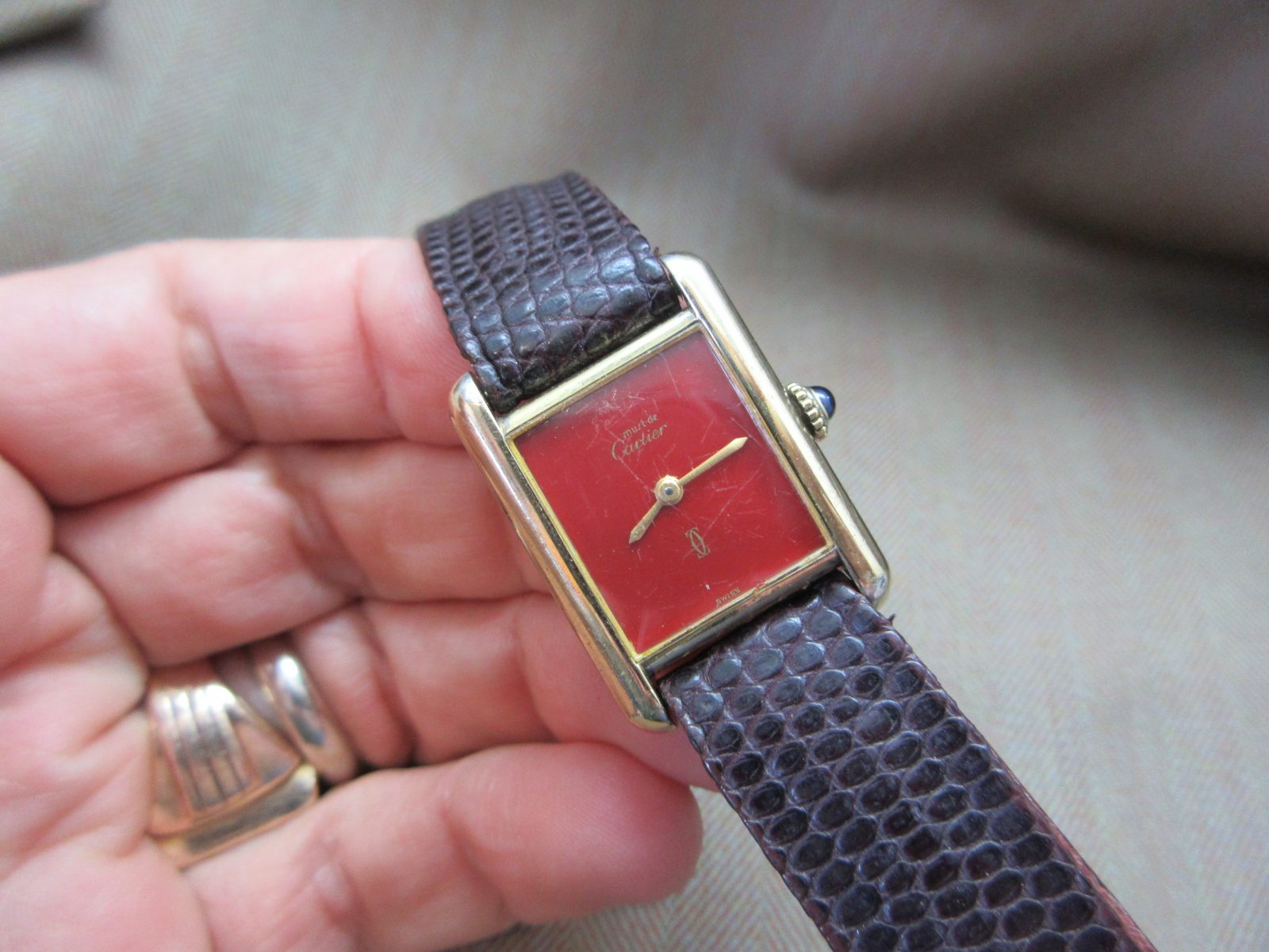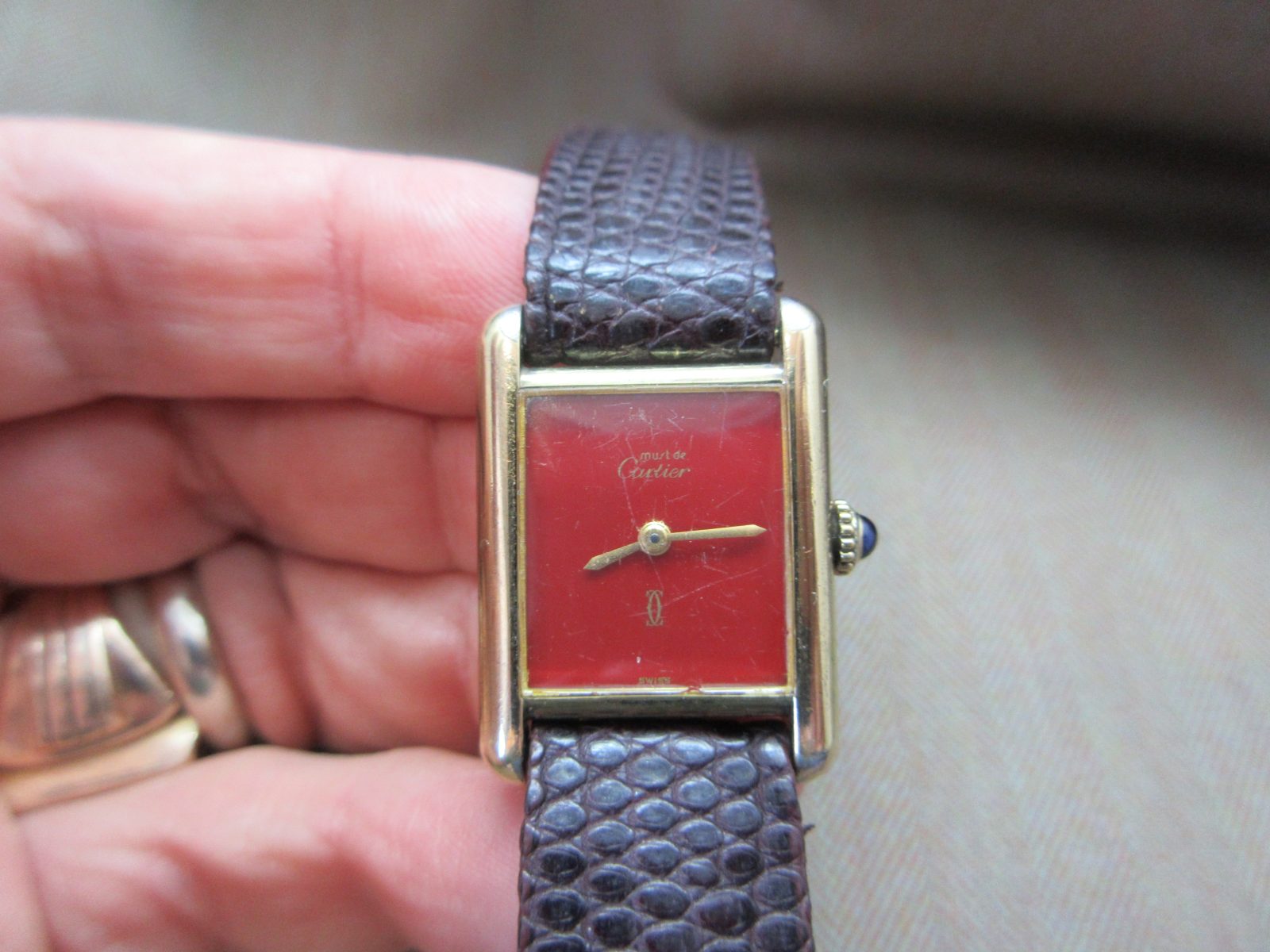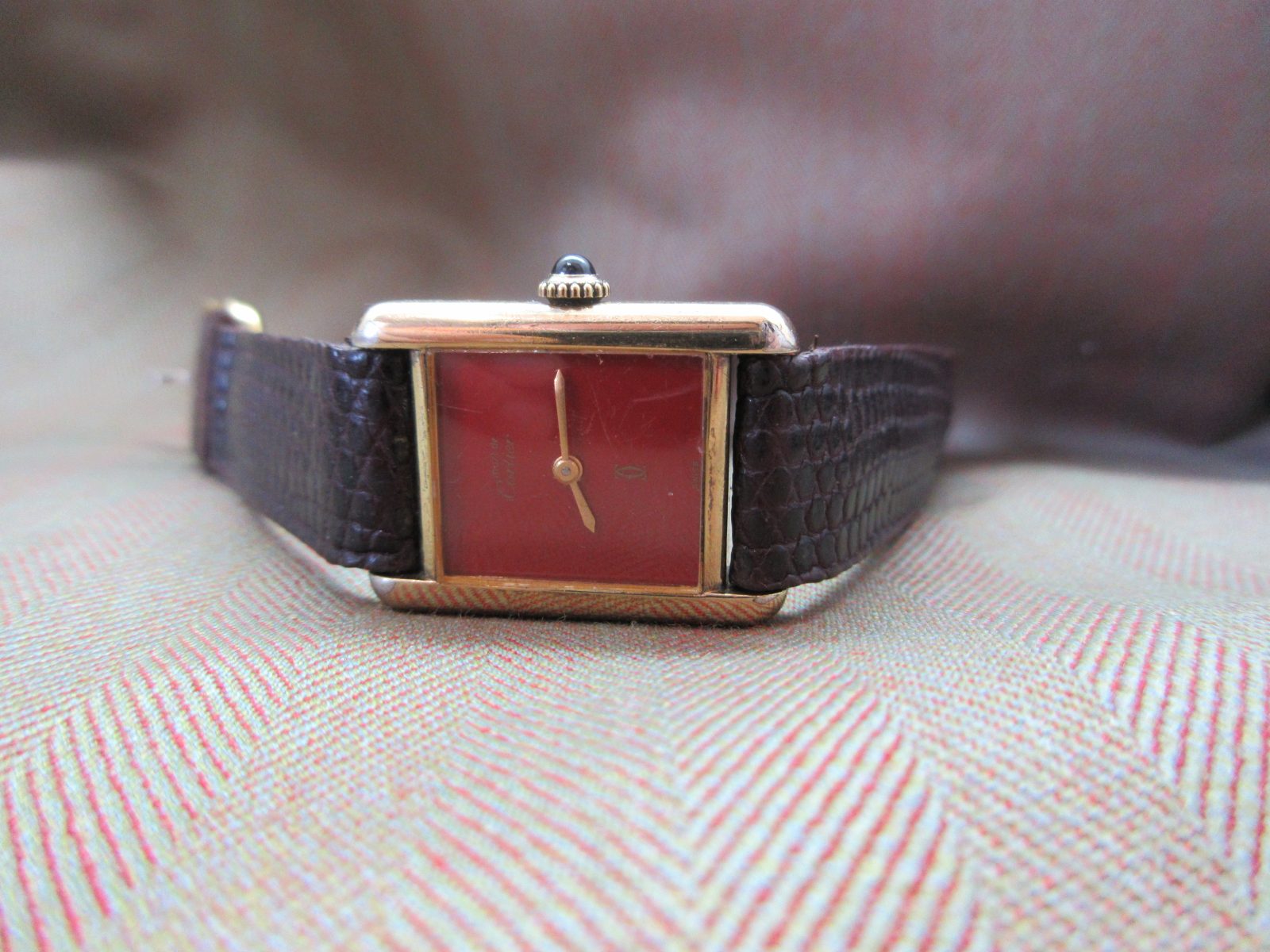 Cartier Vintage Tank Must Plaque Burgundy Junior Size