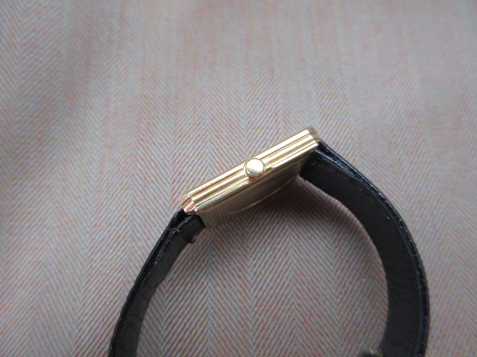 The 18k case measures 25 x 27 mm and is in excellent condition, featuring a sharp hallmark on the caseback along with an engraved reference number.