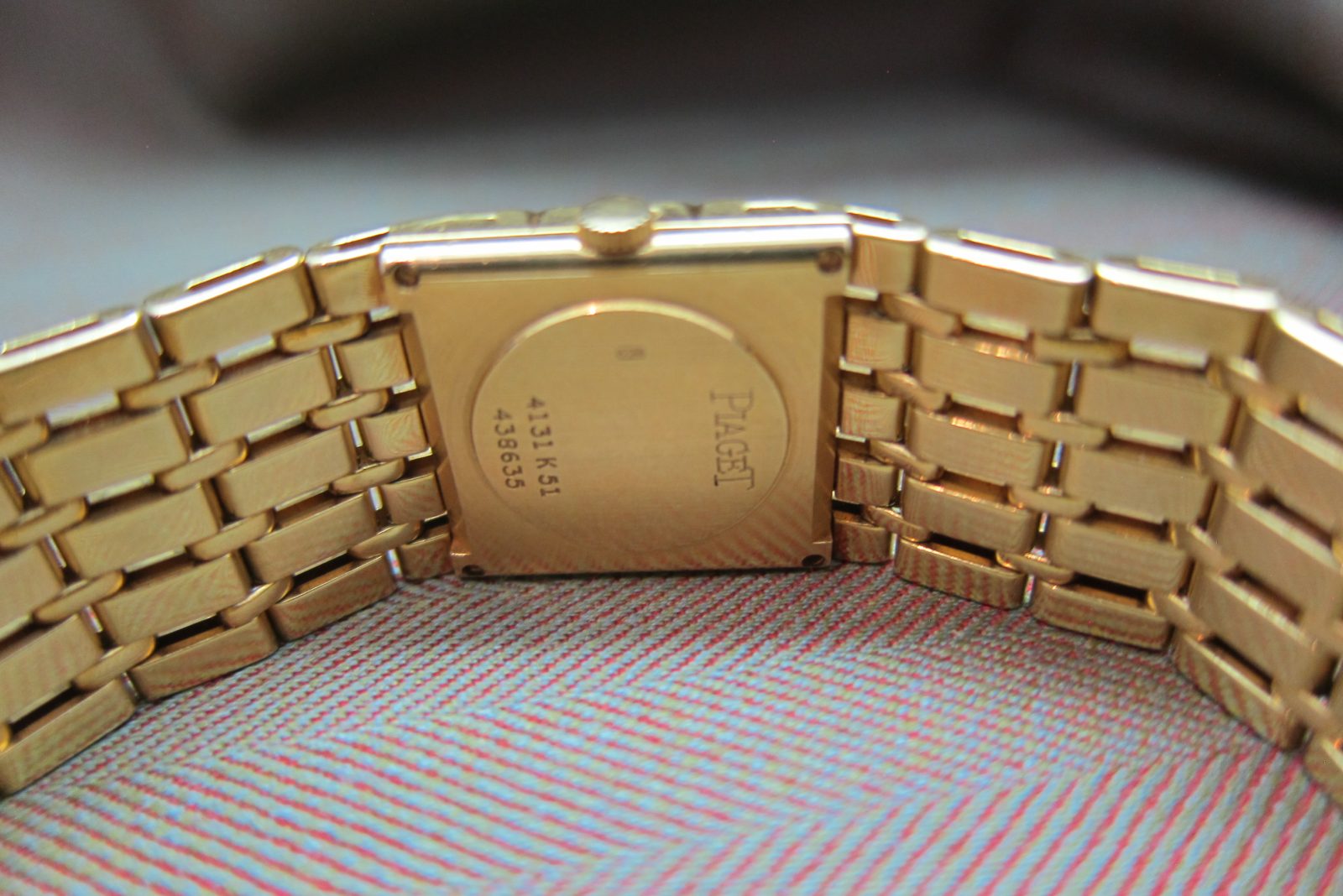 The 18k case measures 20mm and is in excellent condition, featuring defined edges completed with an engraved logo and serial number on the back.