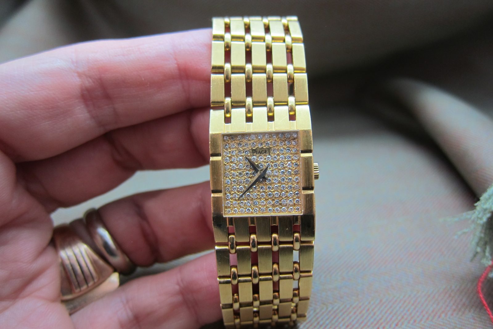 On its original 18k yellow gold bracelet, secured by the original matching 18k buckle, with a total length of 6.75 inches.