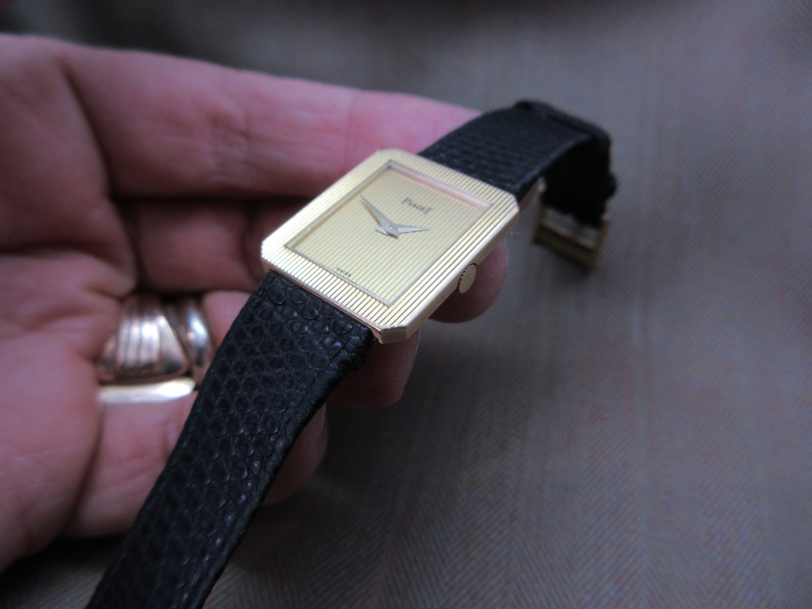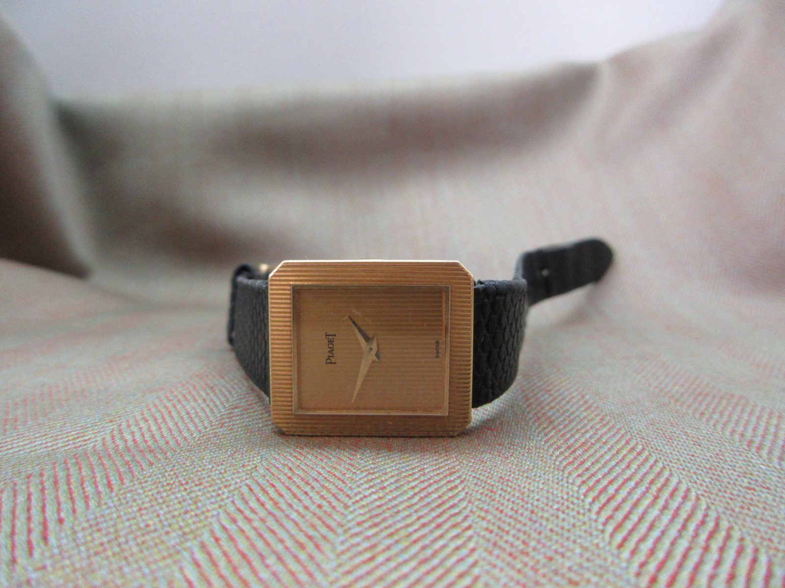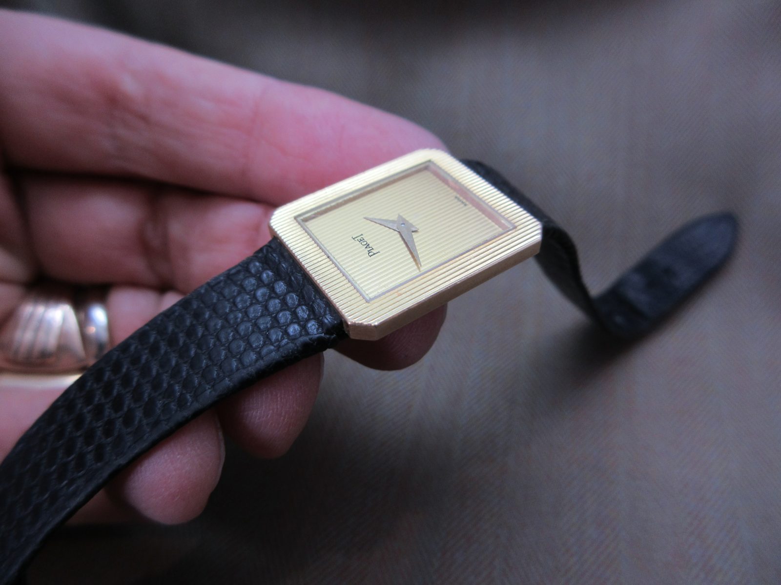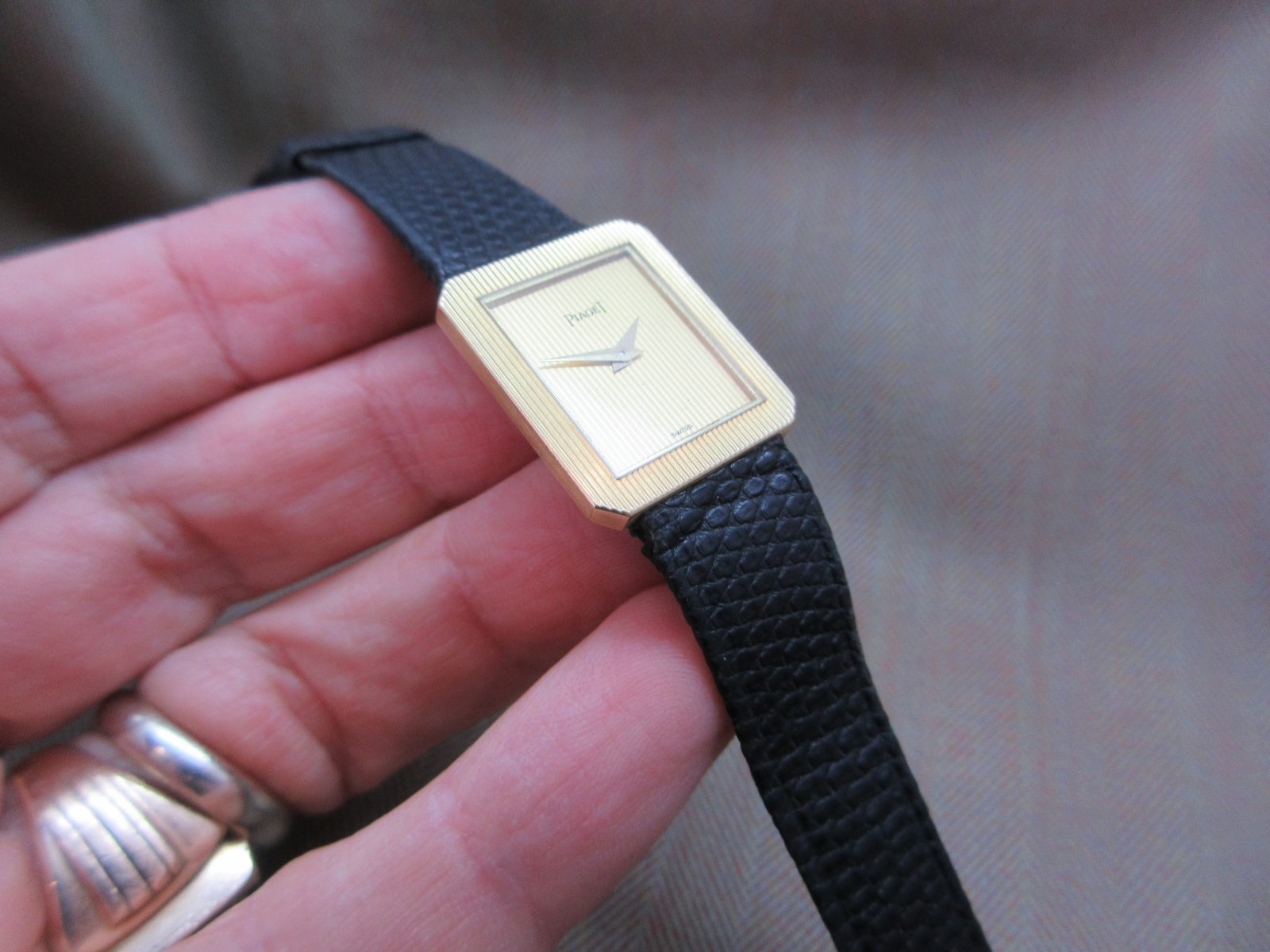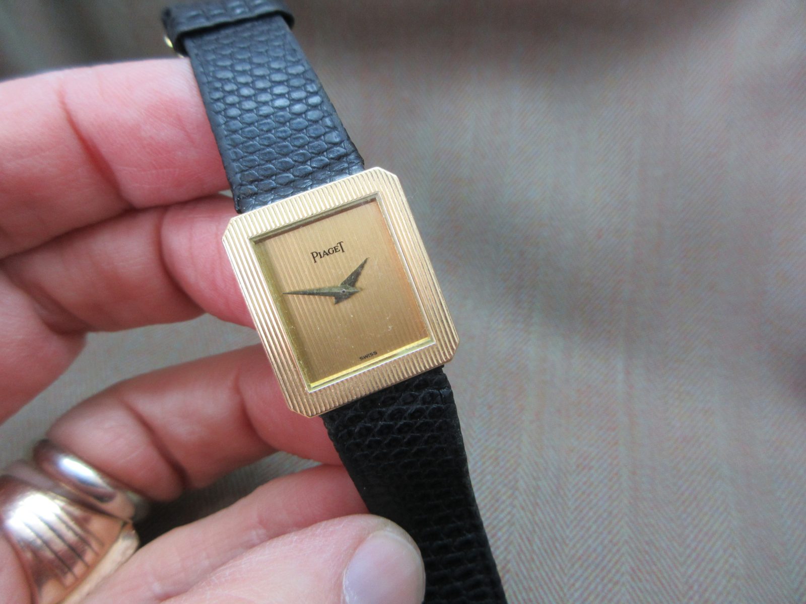 Presented on a generic lizard-skin strap, secured by its original 18k Piaget buckle.
