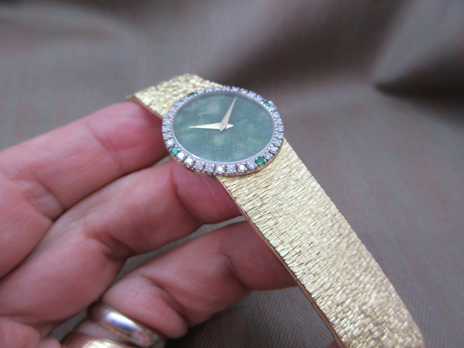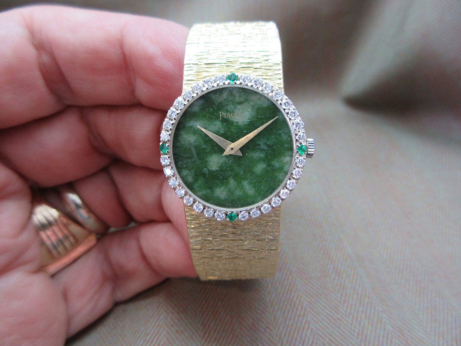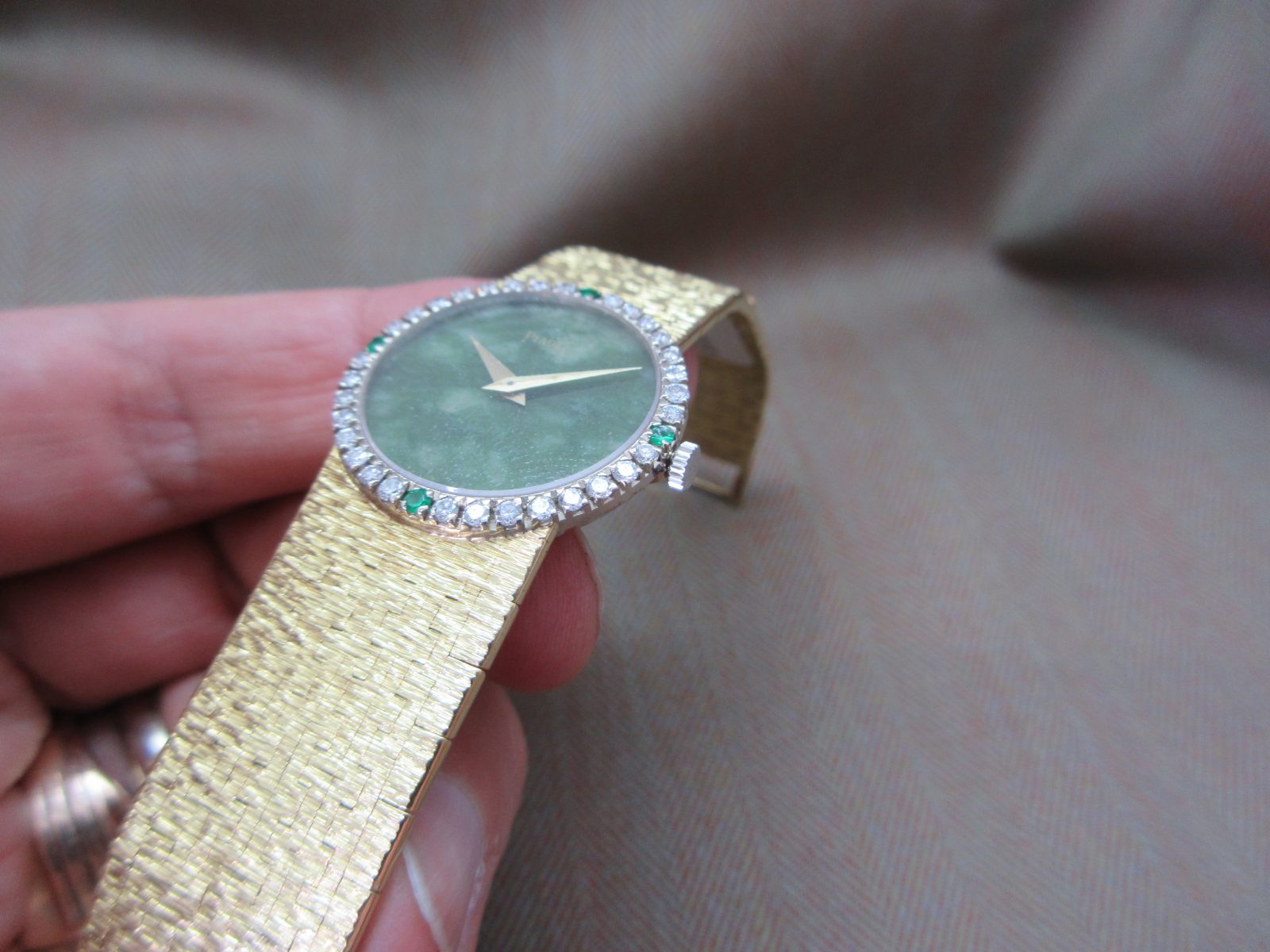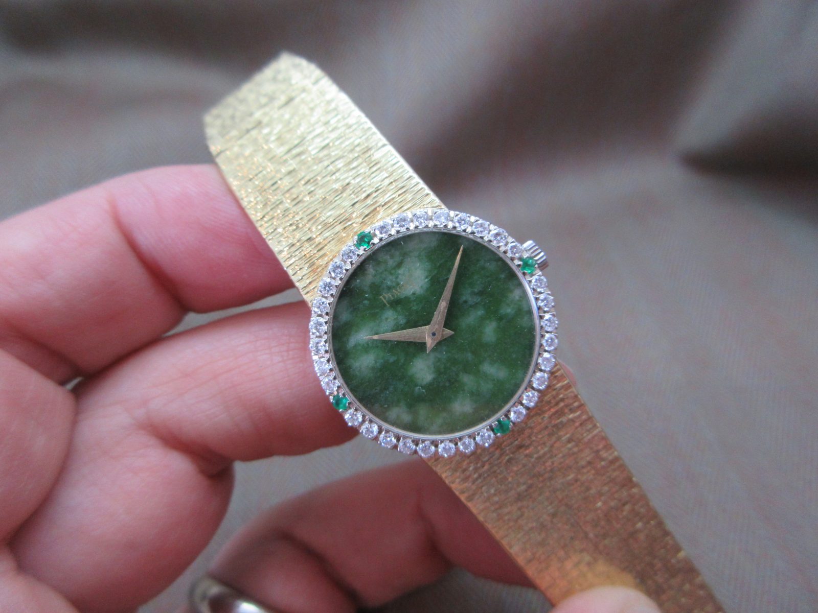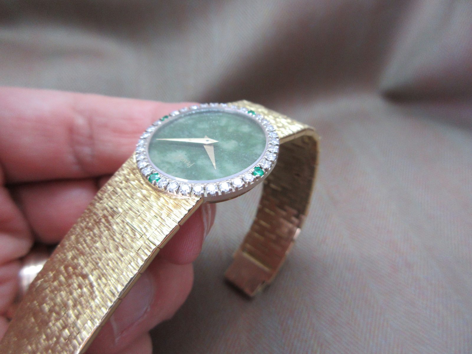Piaget Vintage 18k Jade Dial Diamond & Emerald Bezel Ladies Watch 9706