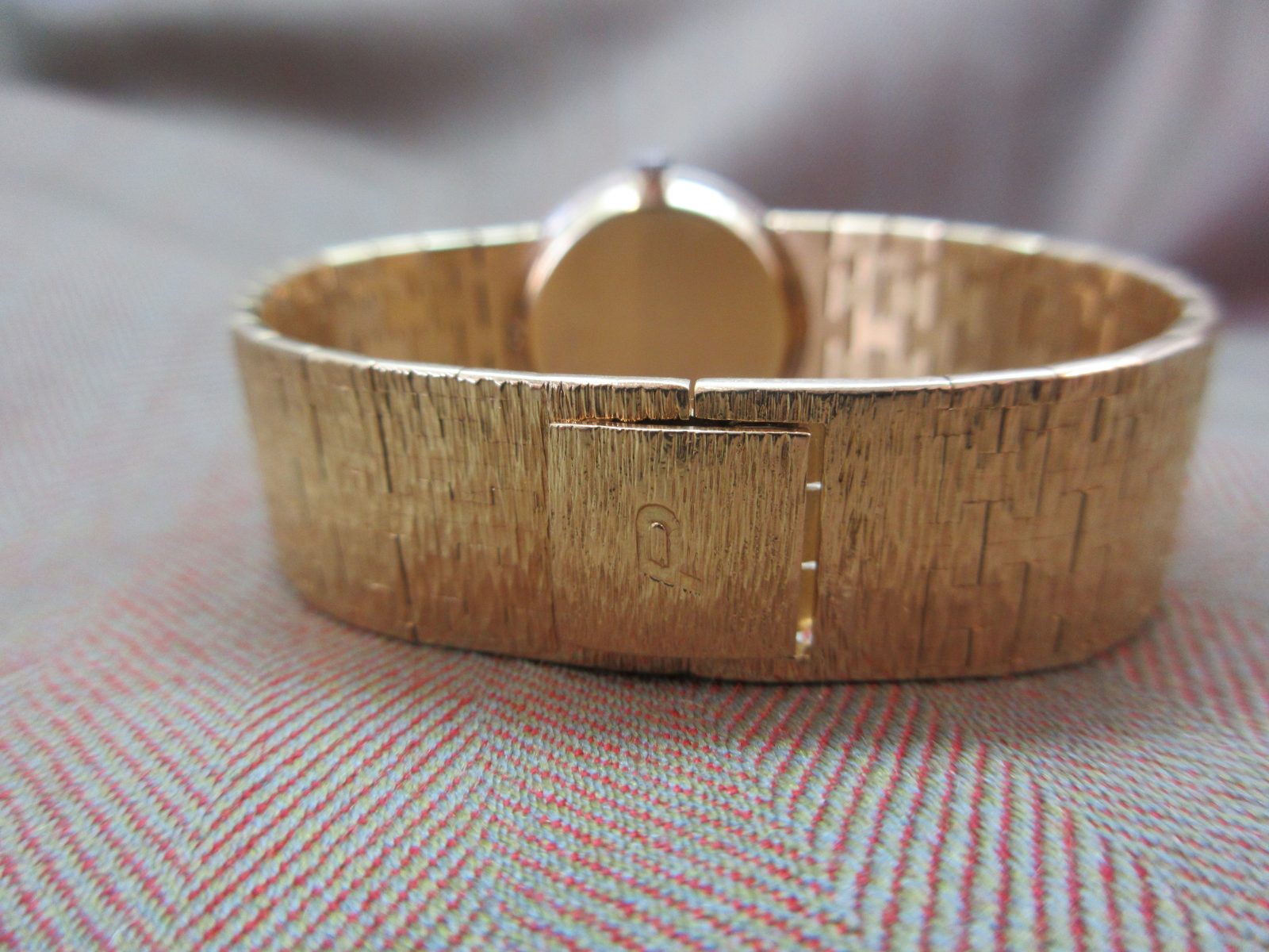 On its original 18k bracelet, secured by the original 18k buckle, fitting a size 5.5.