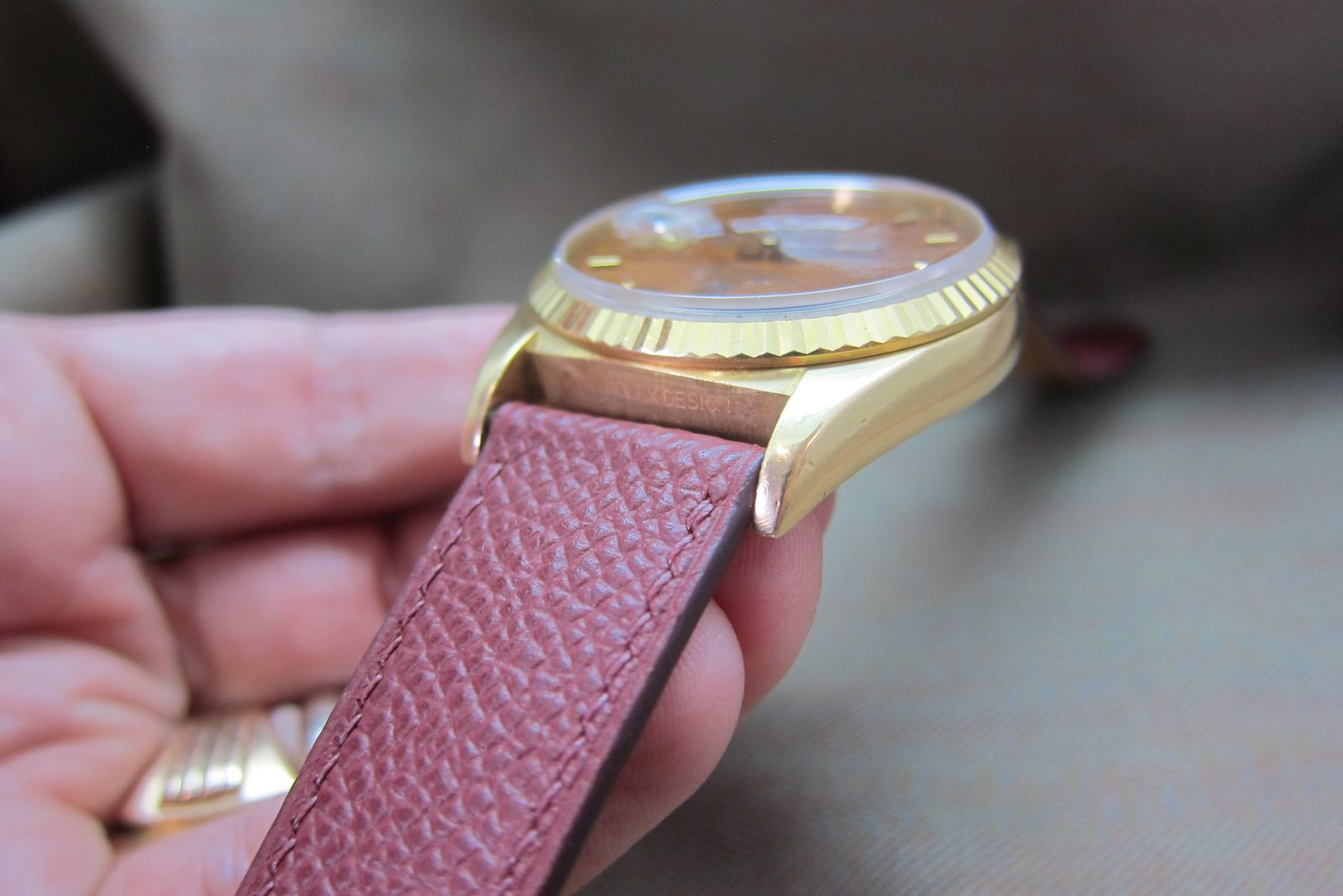 Vintage vibes, all gold, and a wood dial that stops you in your tracks—meet this 1996 T-serial Rolex Day-Date. 36mm of pure elegance, a mint dial, and automatic perfection on a burgundy lizard strap.