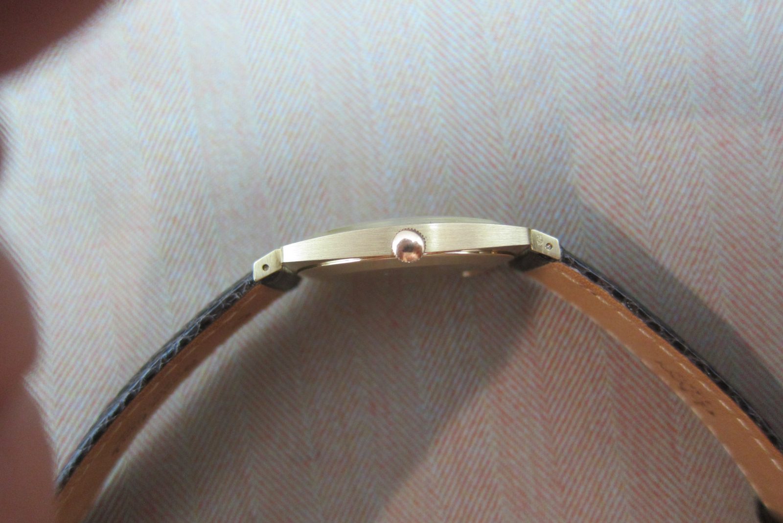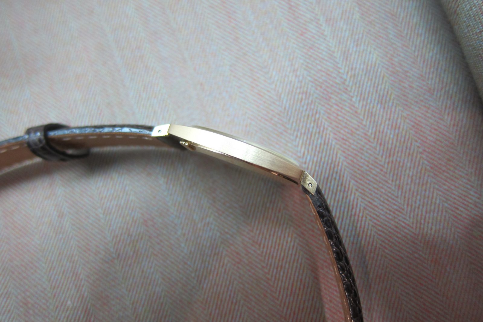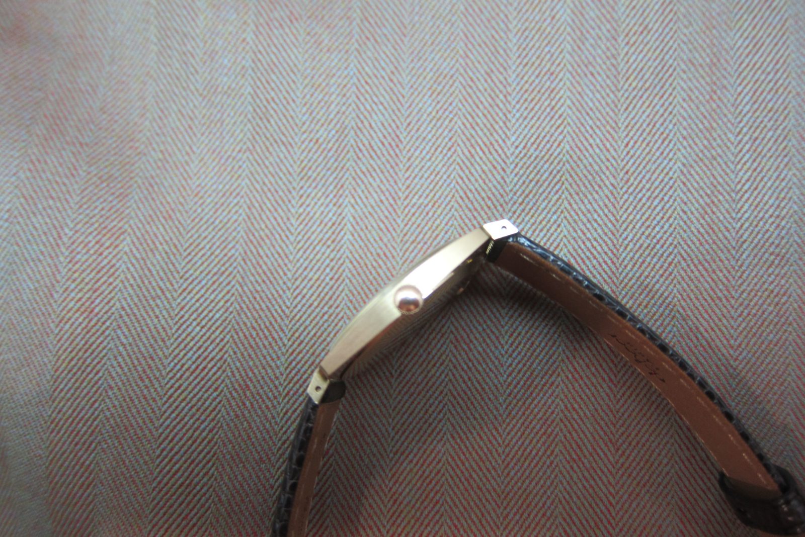 Fitted on a generic lizard skin strap secured by a generic buckle.
