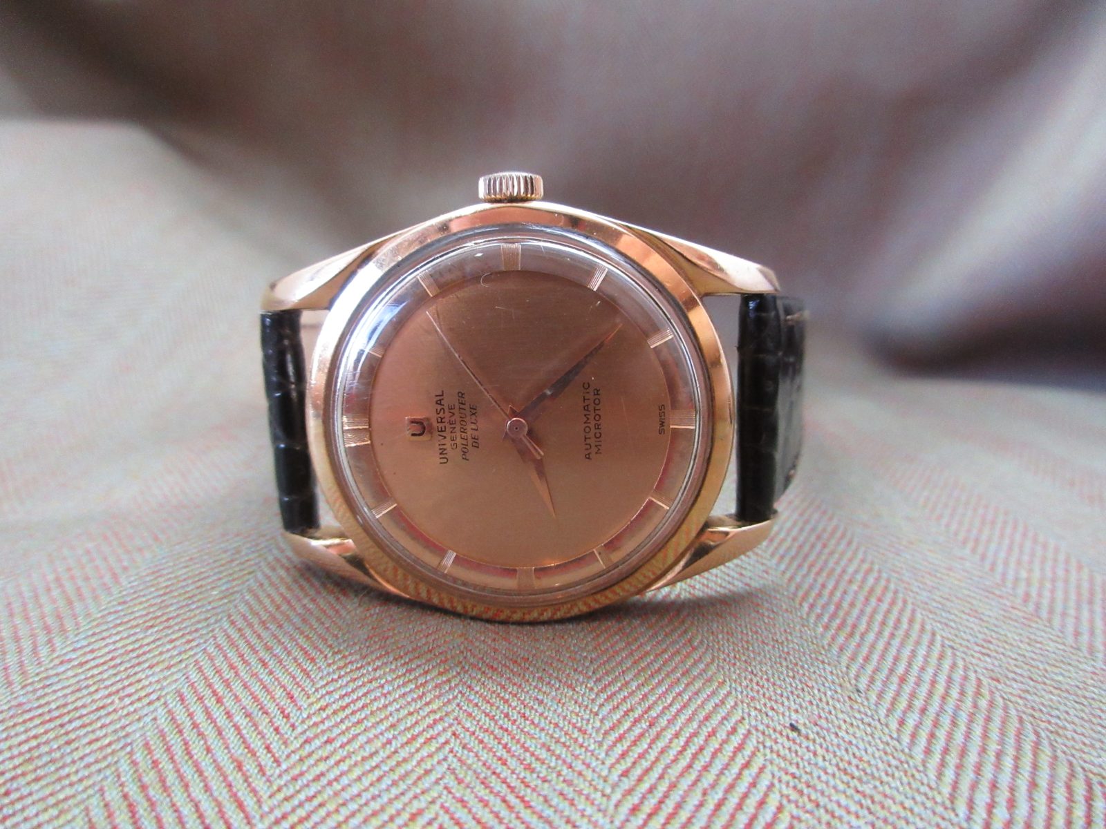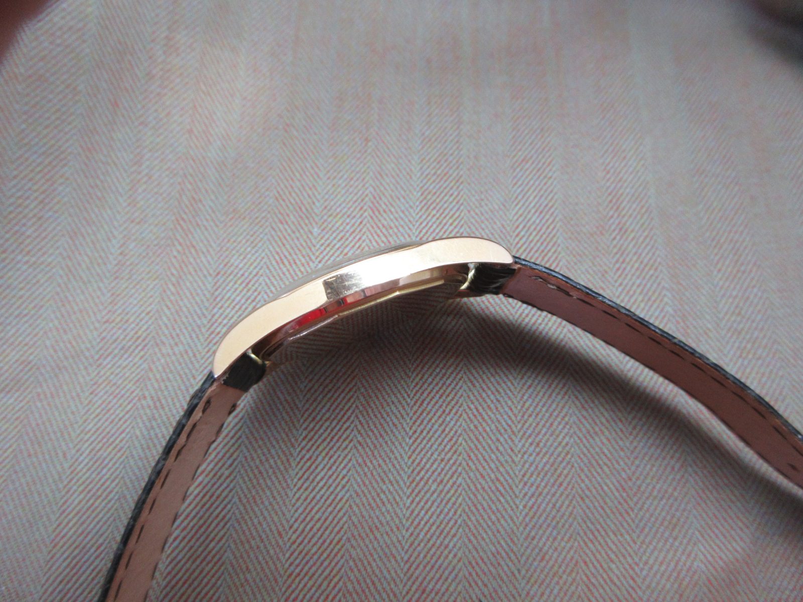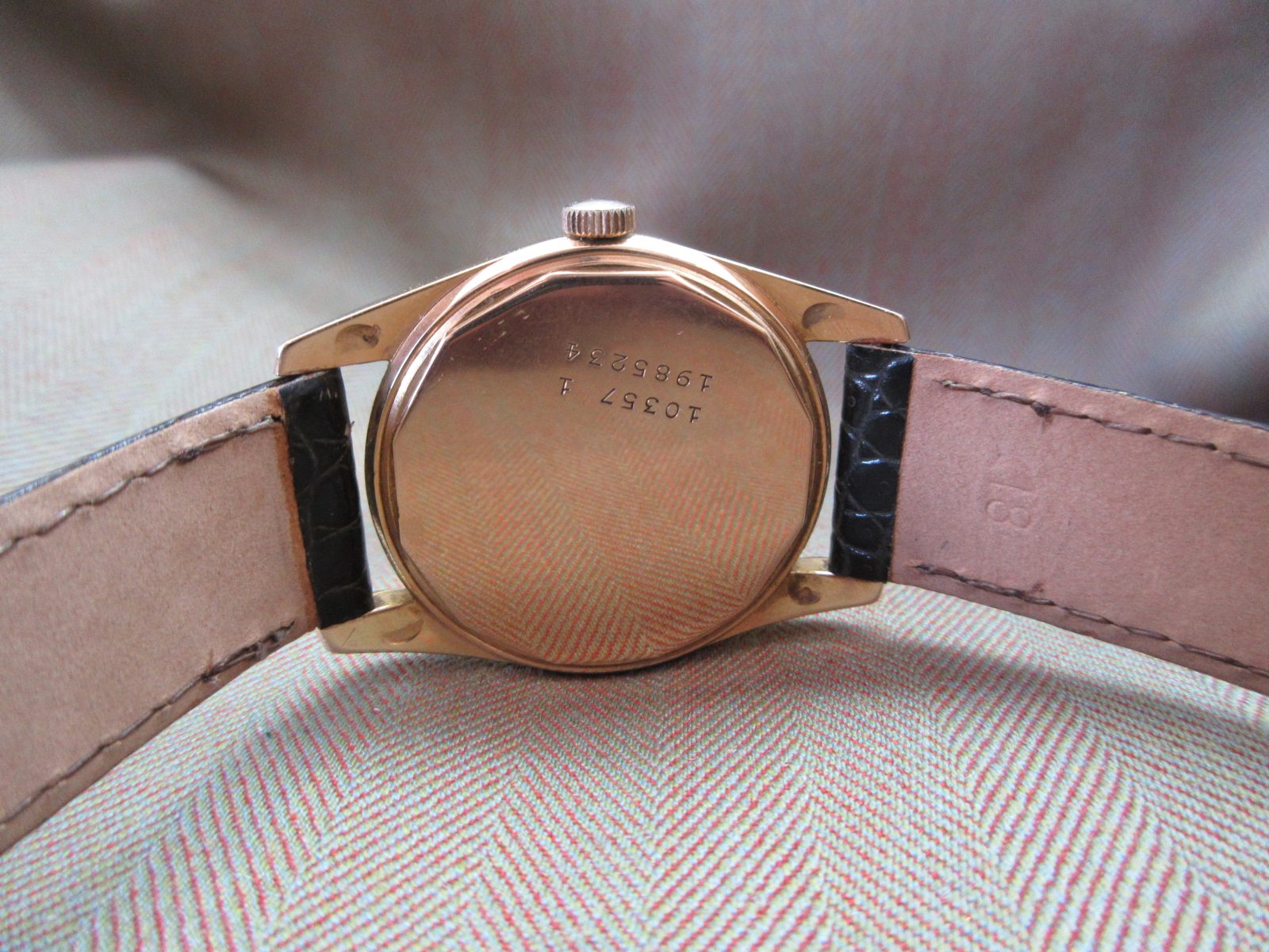 The 18k rose gold case measures 31 x 42mm and is in great, sharp condition, featuring a hallmark on one of the lugs.